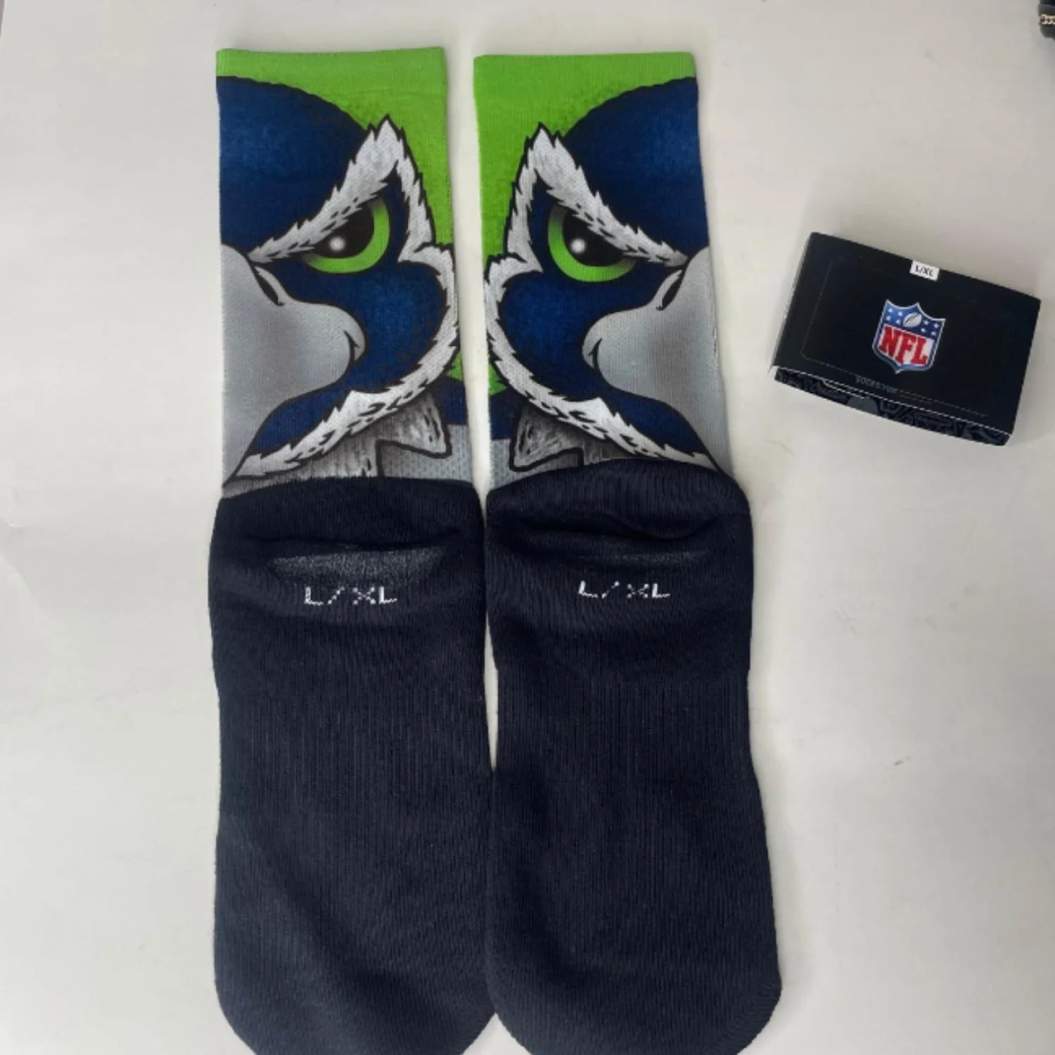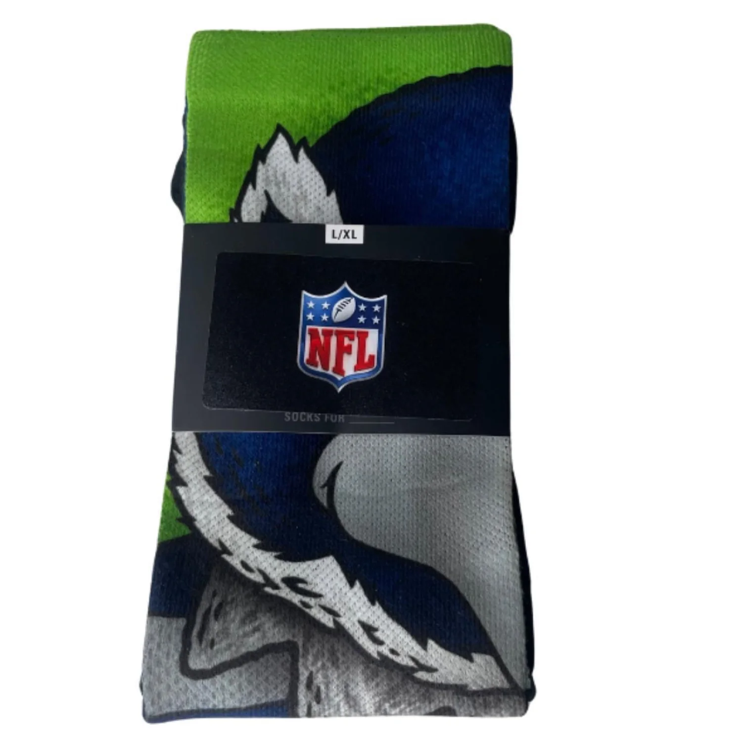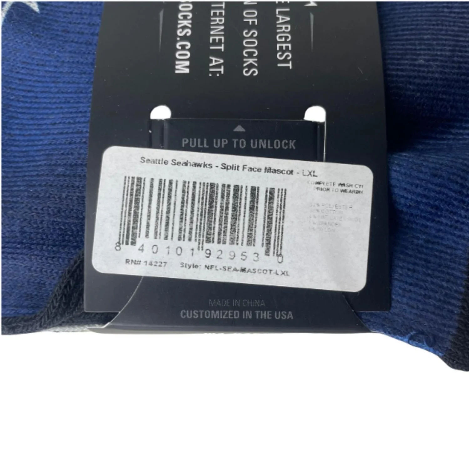 NFL Seattle Seahawks Rock' Em Socks Men's L/XL Split Face Mascot Crew Socks