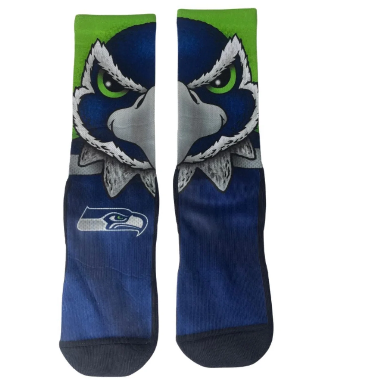 NFL Seattle Seahawks Rock' Em Socks Men's L/XL Split Face Mascot Crew Socks