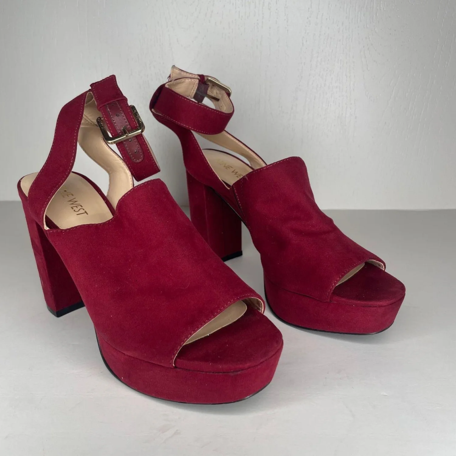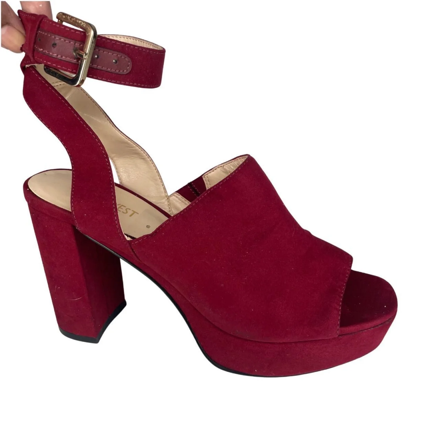 Nine West Burgundy Platform Strappy Peep Toe Sandal Heel