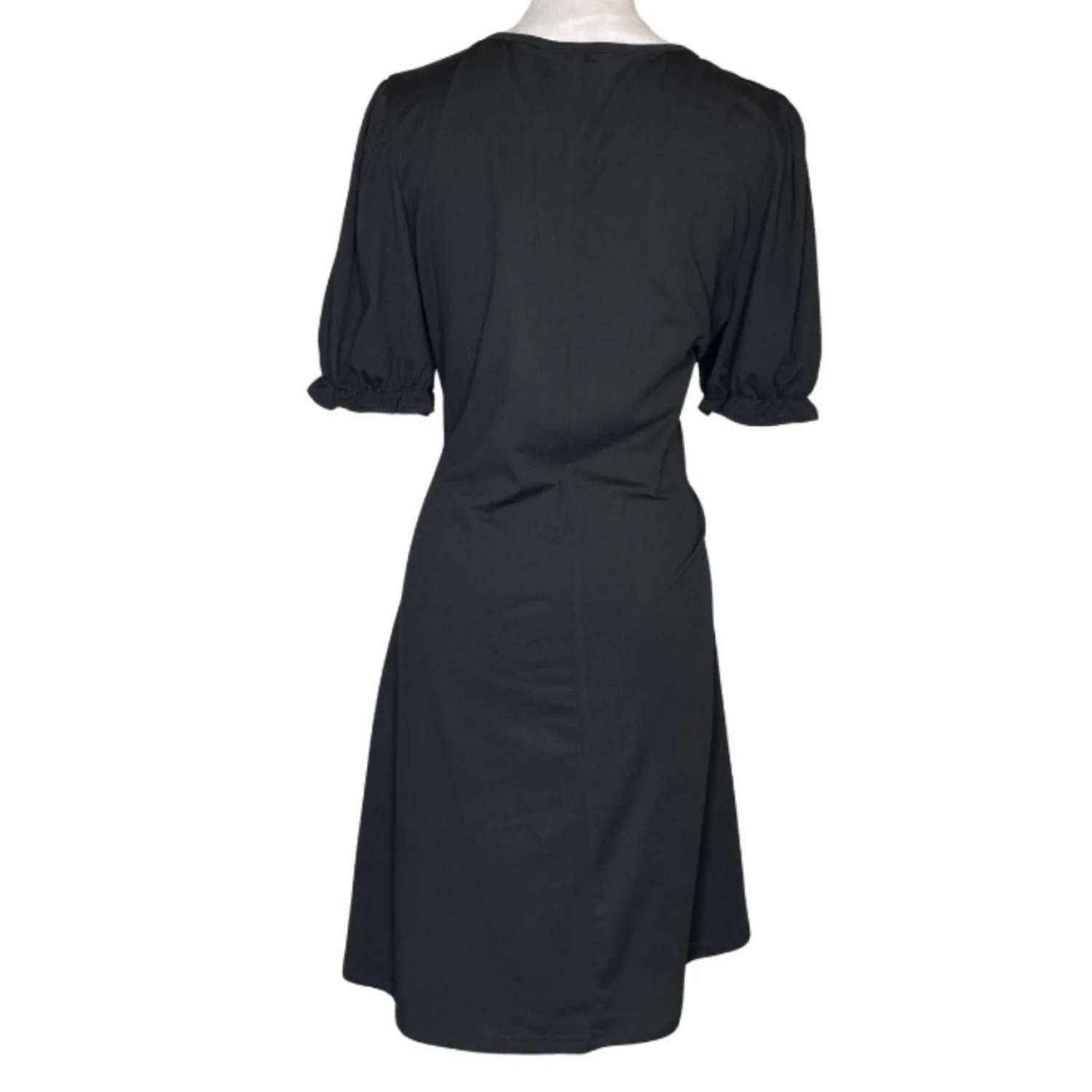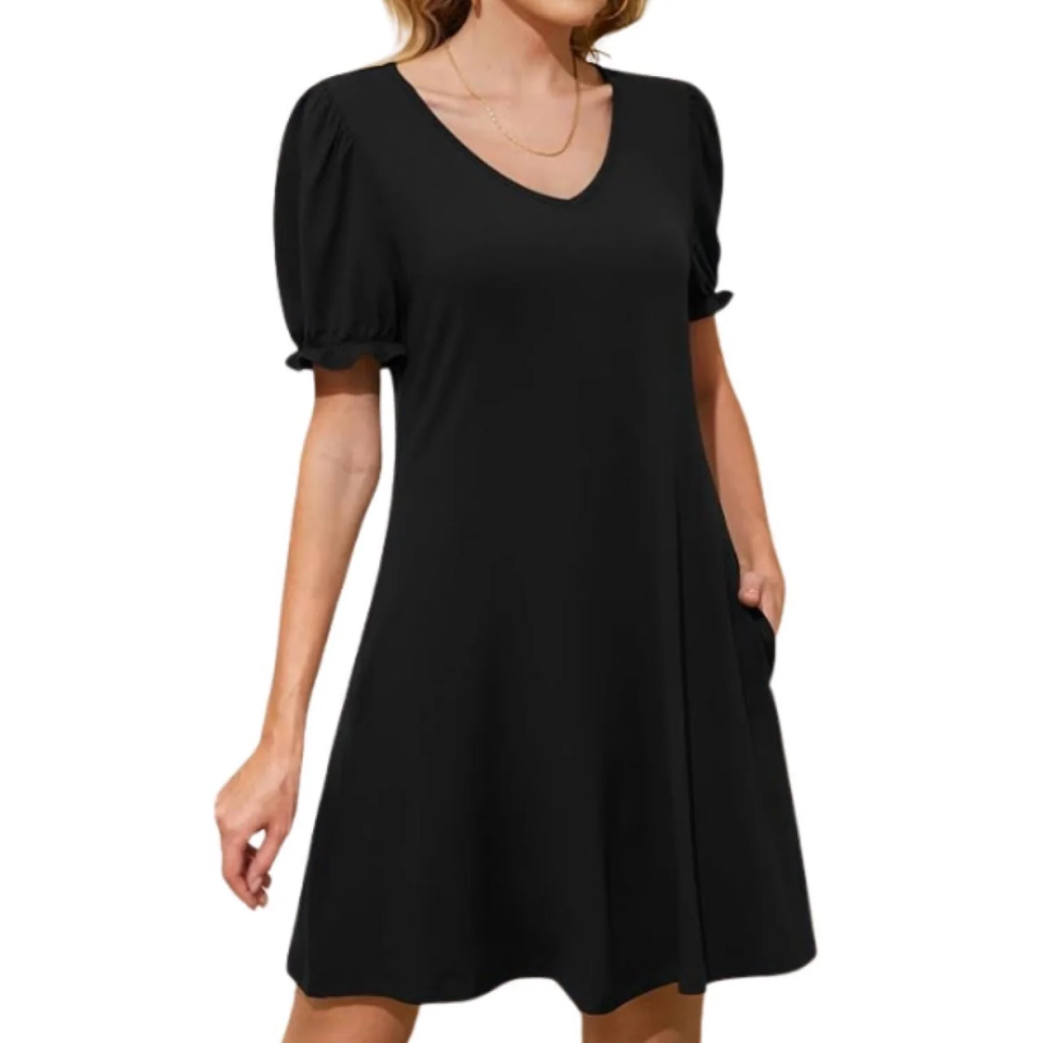 Nivyee Black V-Neck Puff Sleeve Midi Dress with Pockets Size XL Soft Stretch