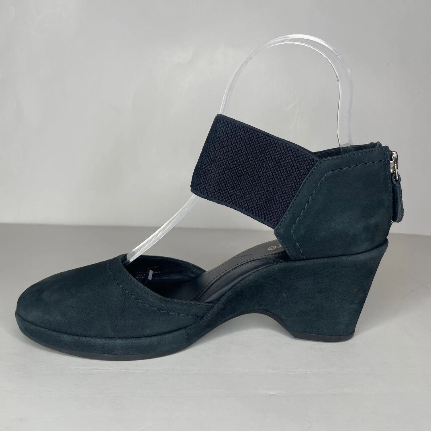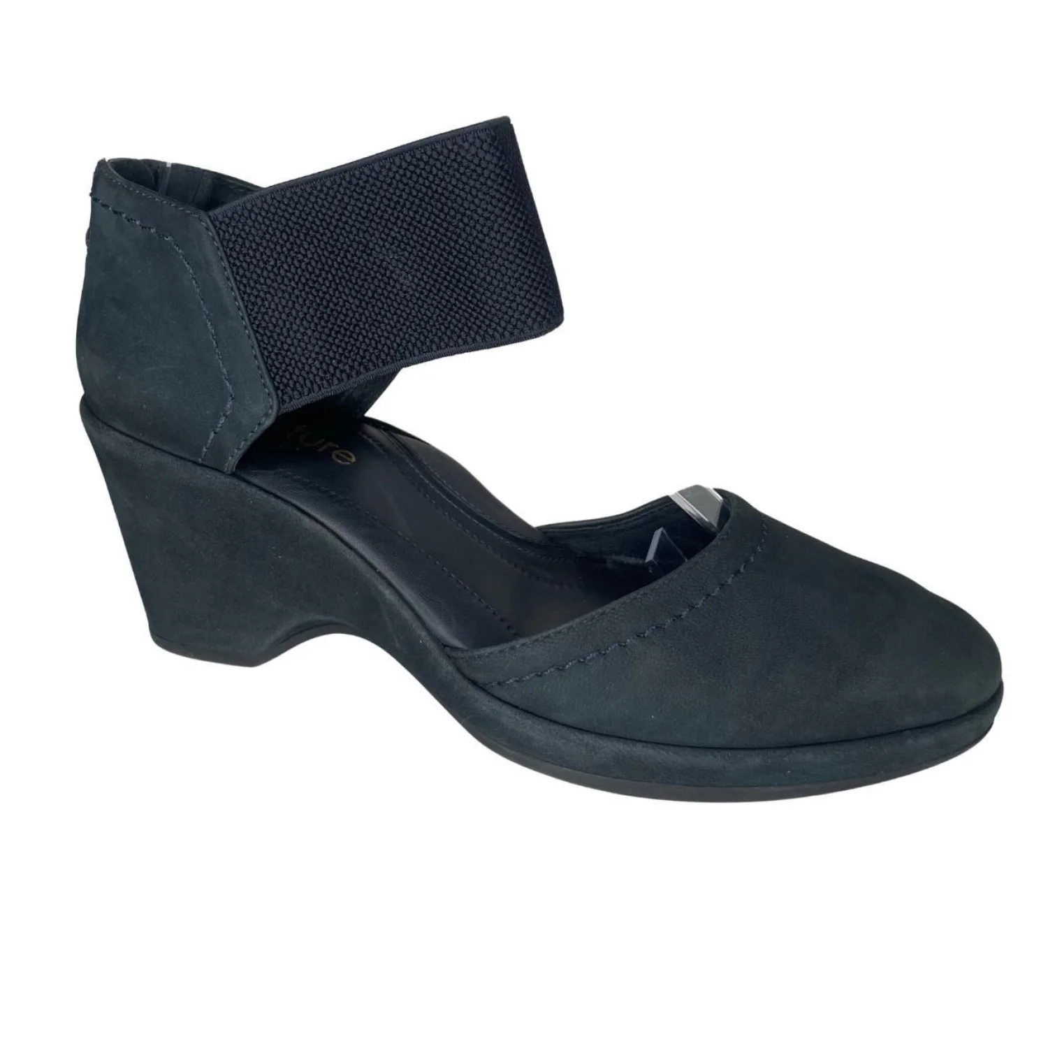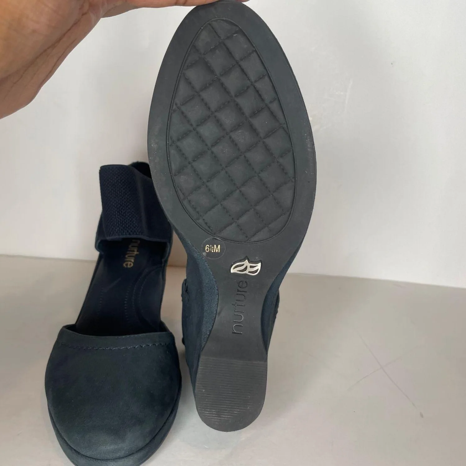Nurture Larow Navy Blue Leather Wedge Shoes Ankle Band Size 6.5M