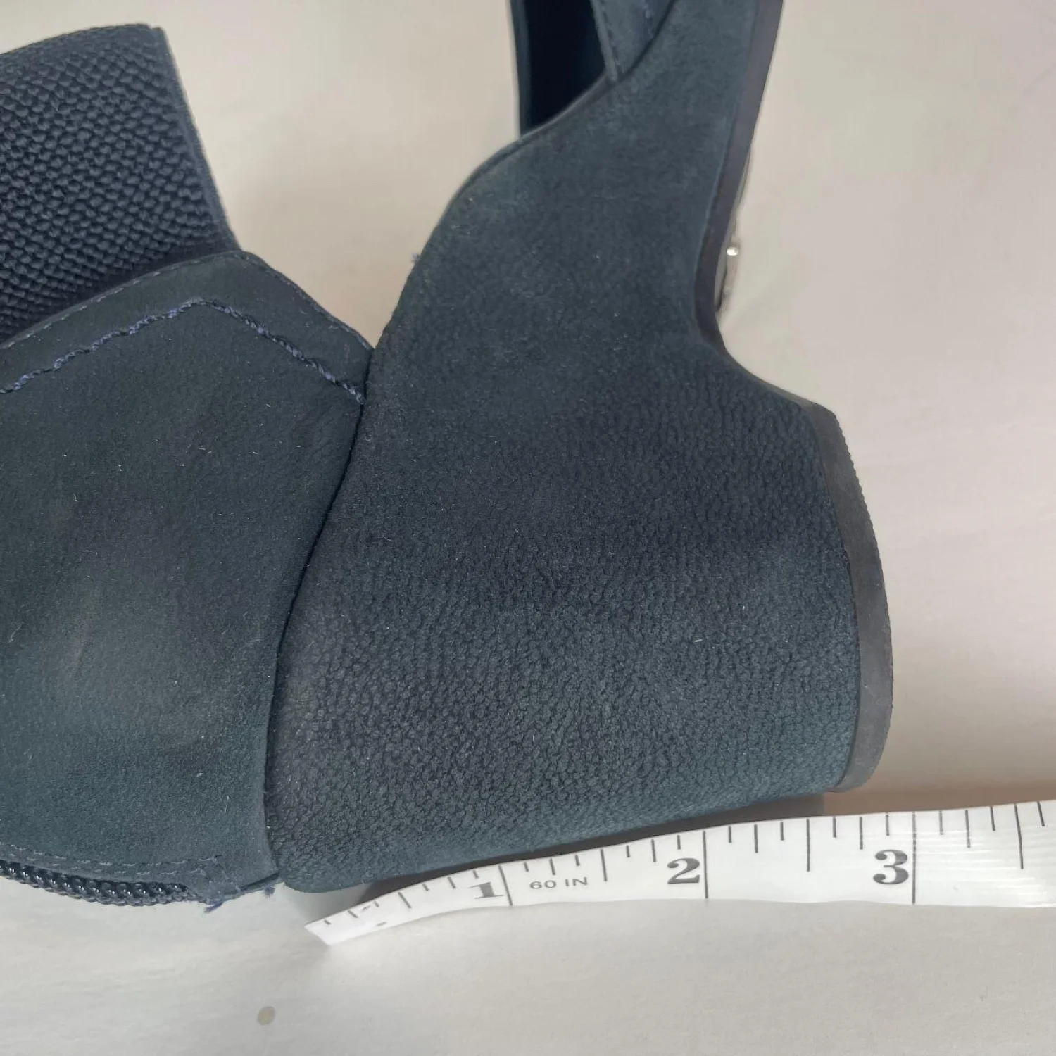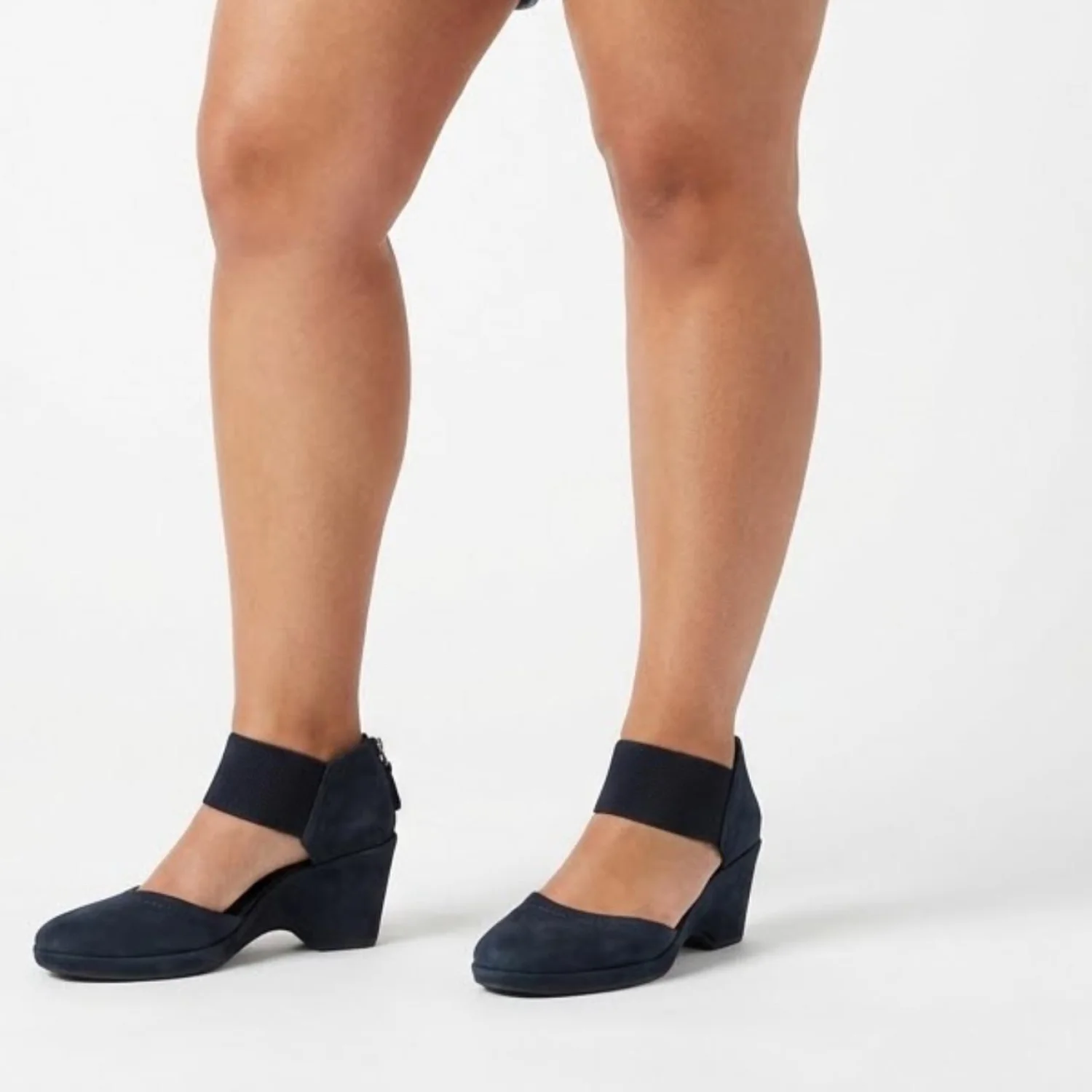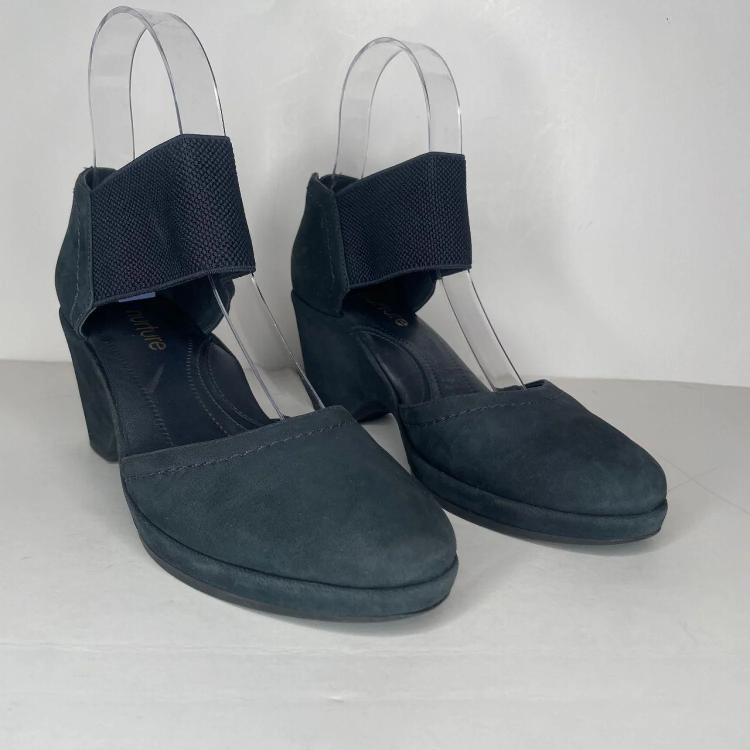 Nurture Larow Navy Blue Leather Wedge Shoes Ankle Band Size 6.5M