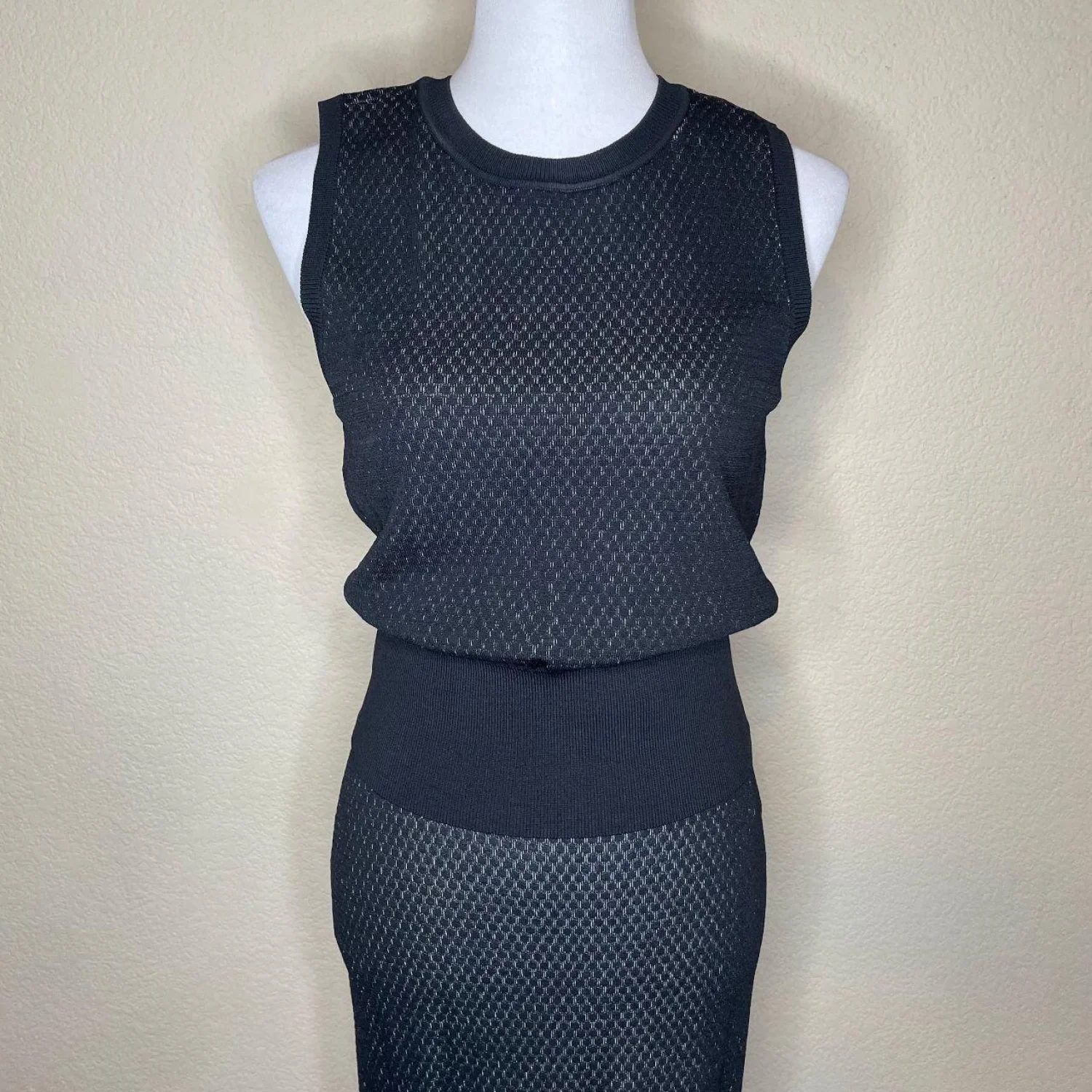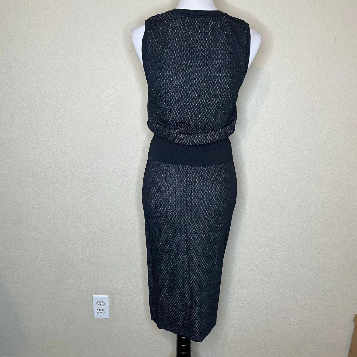 NWT RACHEL Rachel Roy Black Ivory Textured Knit 2pc Set: Top & Midi Skirt, Sz L Features: A sophisticated black and ivory textured eyelet-style knit, this set includes a sleeveless crewneck top and a coordinating midi skirt with a flattering wide ribbed waistband. Wear them together for a seamless "dress" look, or style the pieces separately to expand your wardrobe. Offers plenty of stretch and a polished, high-end feel. • Style Profile: Co-ord Set, Quiet Luxury, Capsule Wardrobe, Corporate Chic, Two Piece, Textured Knit, Monochrome, Minimalist, Sophisticated, Professional • Flaws: No Holes or stains • All measurements are approximate PTP: 15.5" Waist: 14.5" Top Length: 21" Skirt Length: 25.5" Happy to answer your questions! Super Fast Shipper!