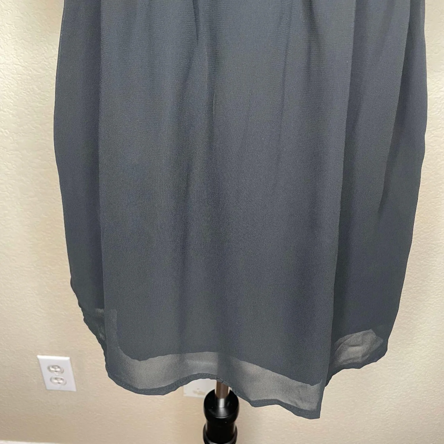 NWT Romwe Black Chiffon Lace Trim Deep V-Neck Tunic Mini Dress S Goth Cottagecore