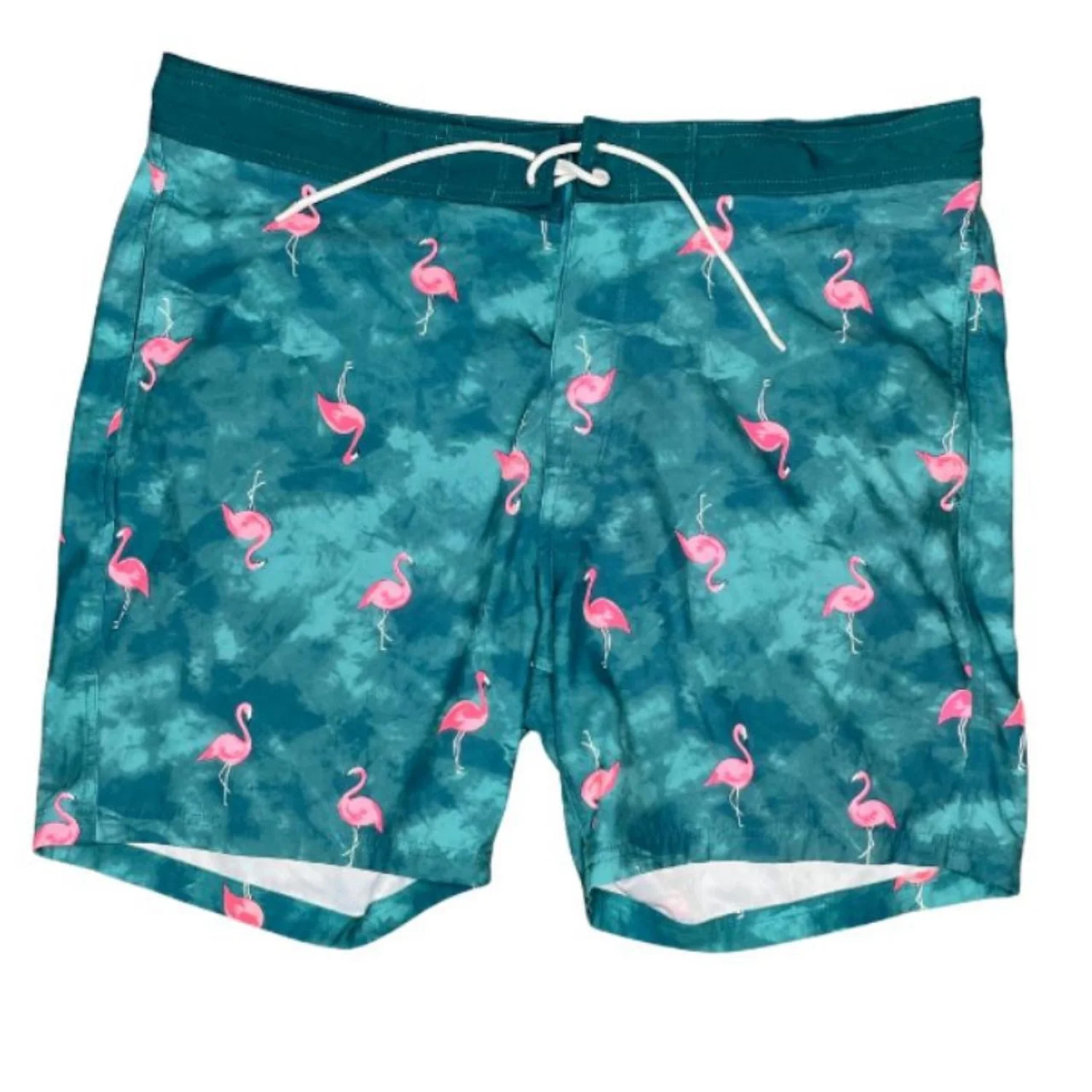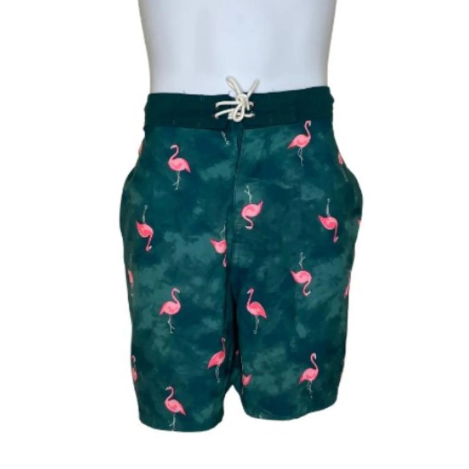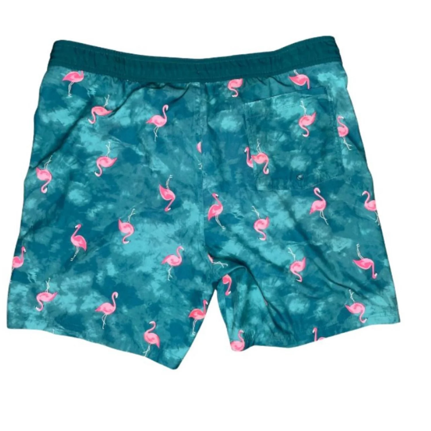 Old Navy Tropical Flamingo Swim Trunks Teal Tie Dye Board Shorts Summer Vibe L