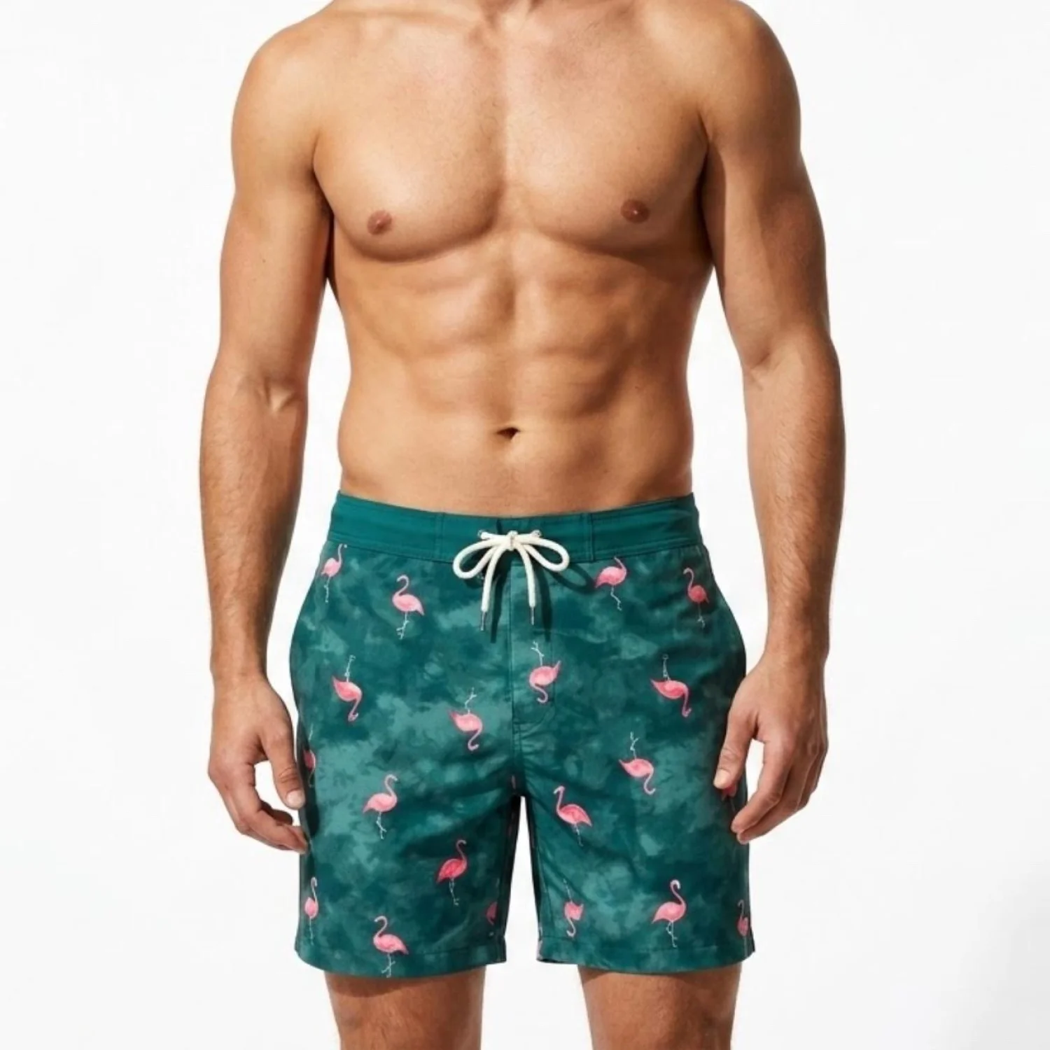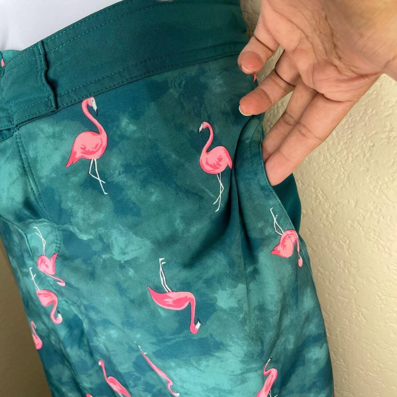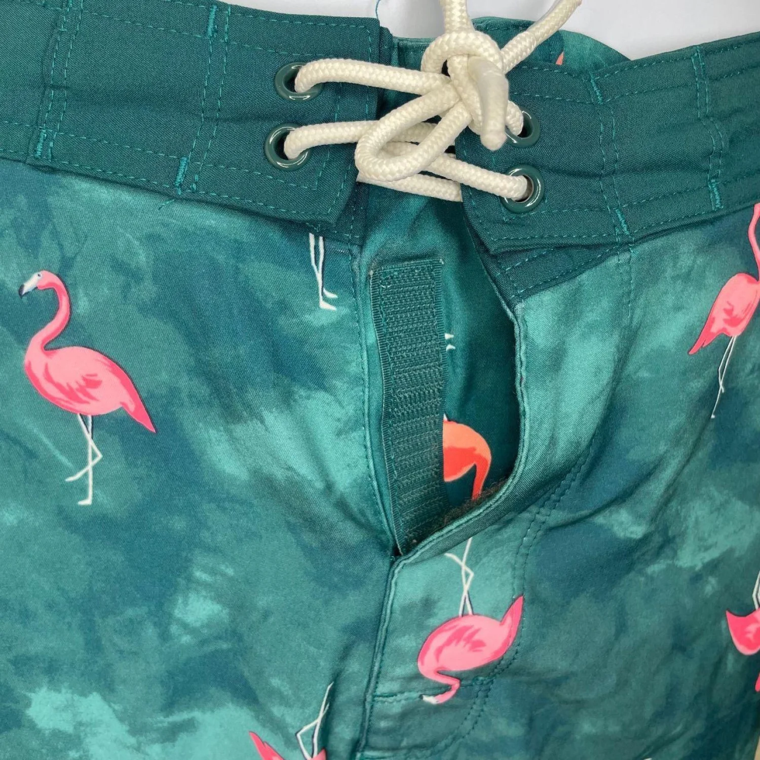 Old Navy Tropical Flamingo Swim Trunks Teal Tie Dye Board Shorts Summer Vibe L