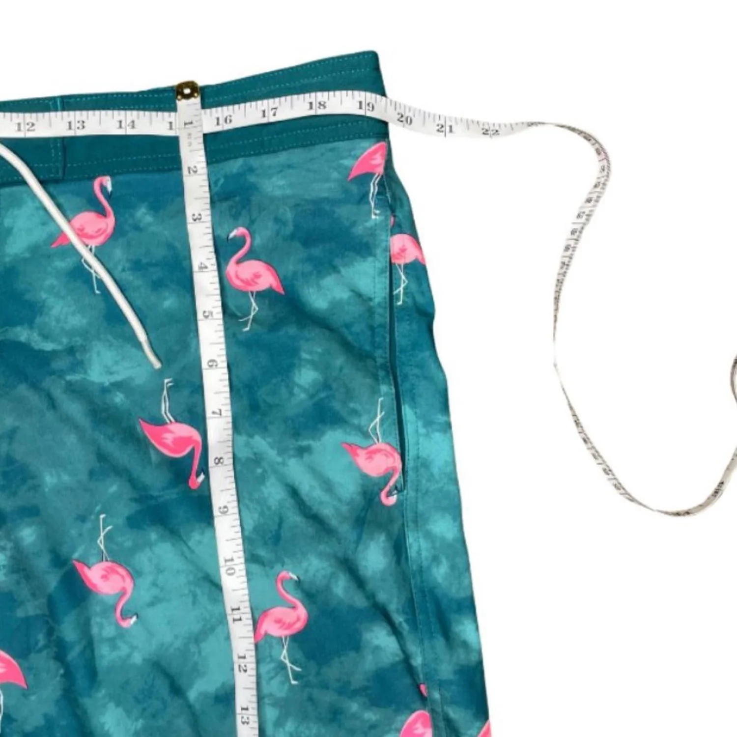 Old Navy Tropical Flamingo Swim Trunks Teal Tie Dye Board Shorts Summer Vibe L Features: Heavyweight performance stretch fabric with a moody teal tie-dye base. Allover pink flamingo print. Fixed waistband features a secure hook-and-loop fly and functional cream drawstring. Quick-dry build with a classic mid-thigh length and mesh lining. • Style Profile: Tropical, Beachwear, Summer, Vacation, Florida, Coastal, Tie Dye, Retro, Surfer, Flamingo • Flaws: No Holes, stains, or tears • Please see the photos for measurements (in inches). Waist: 15.5' Length: 17.5' Happy to answer your questions! Super Fast Shipper!