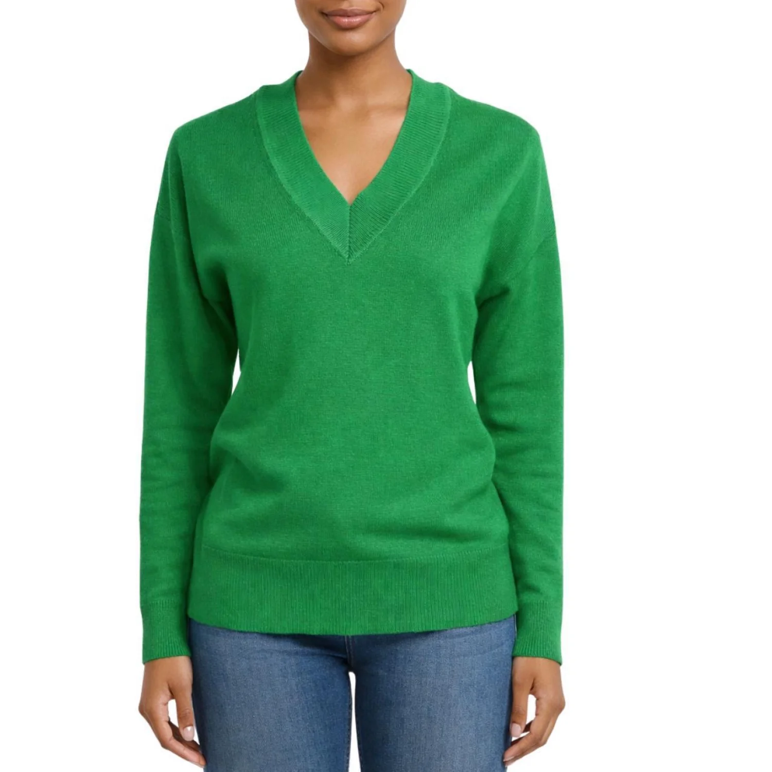 On 34th Macy’s Green V-Neck Sweater XS Cotton Blend