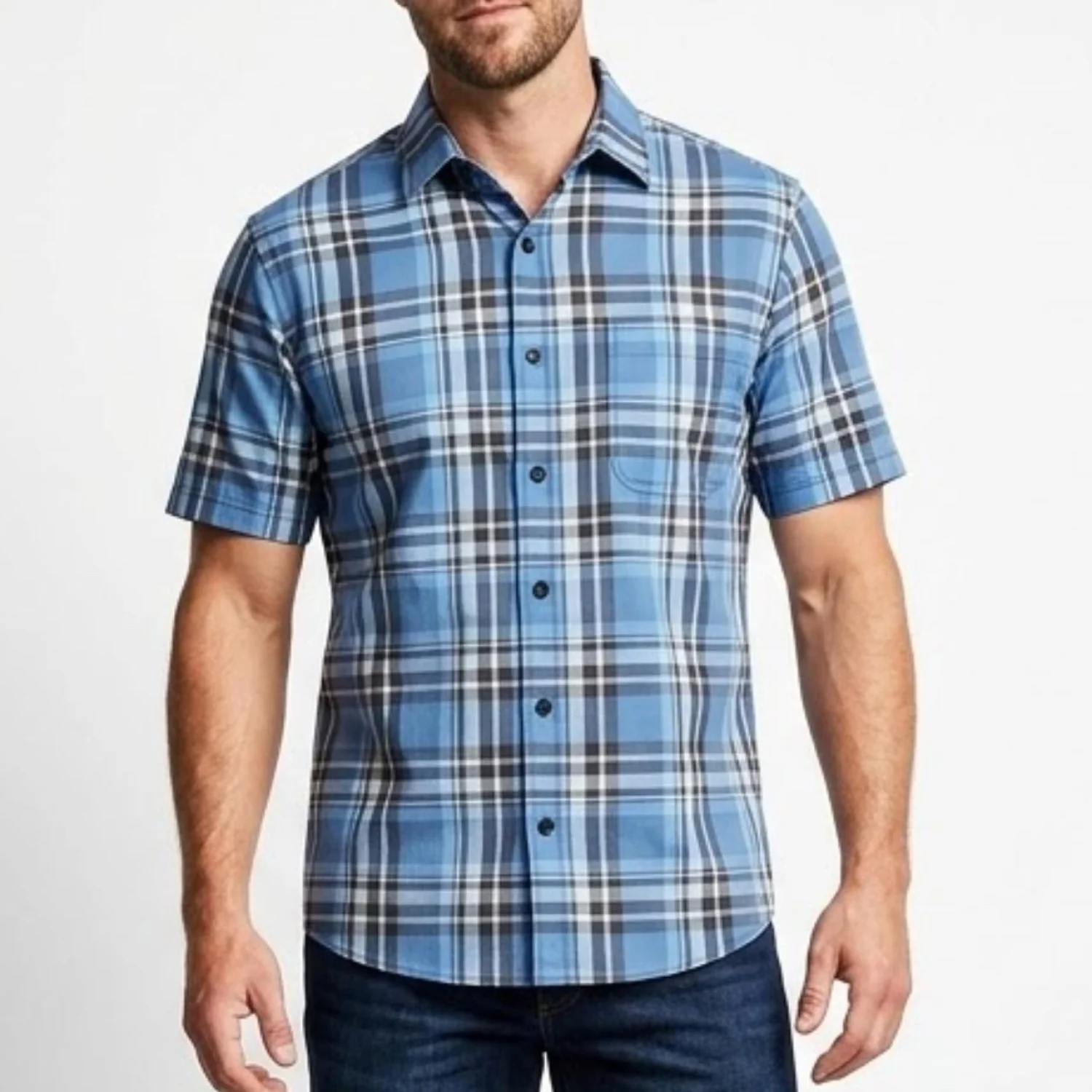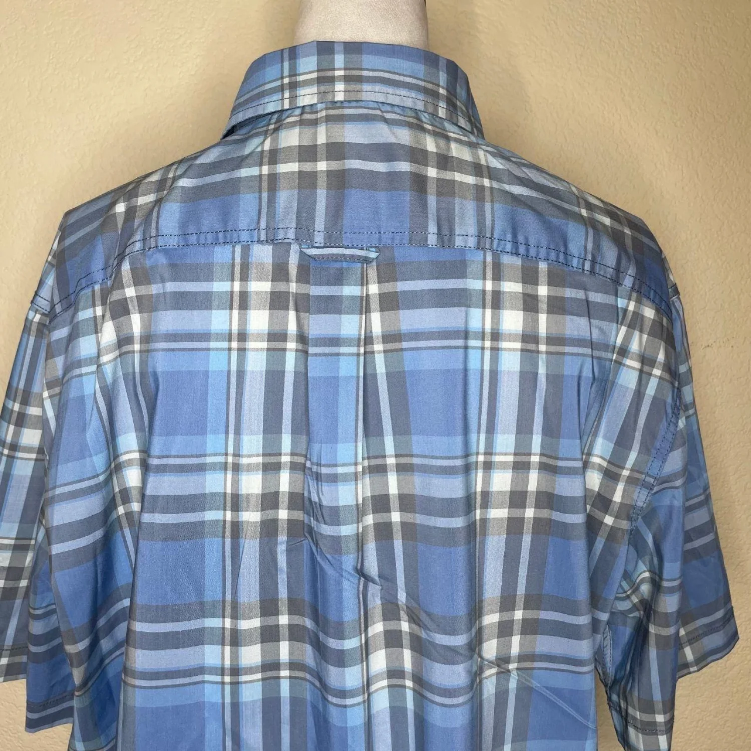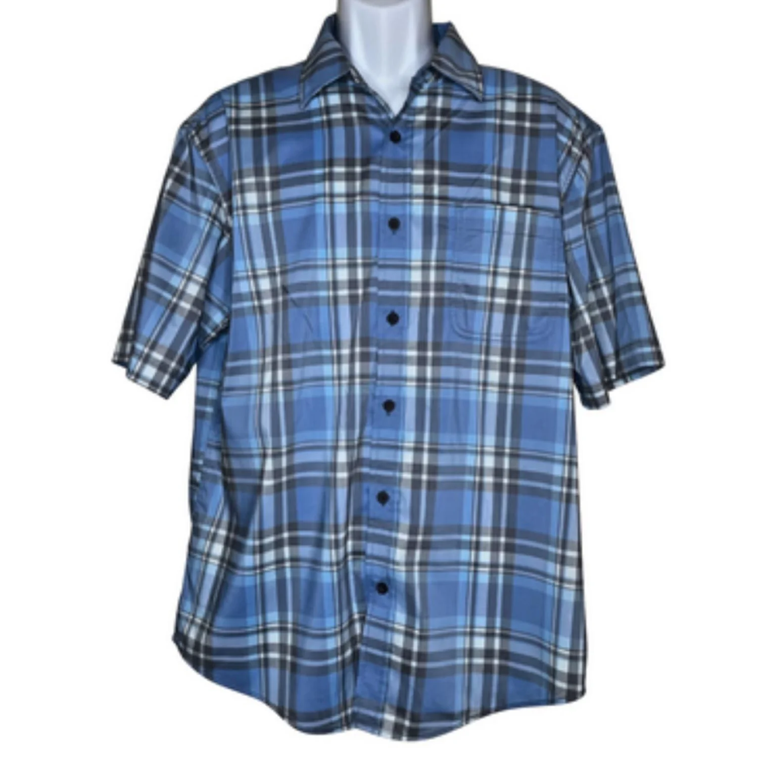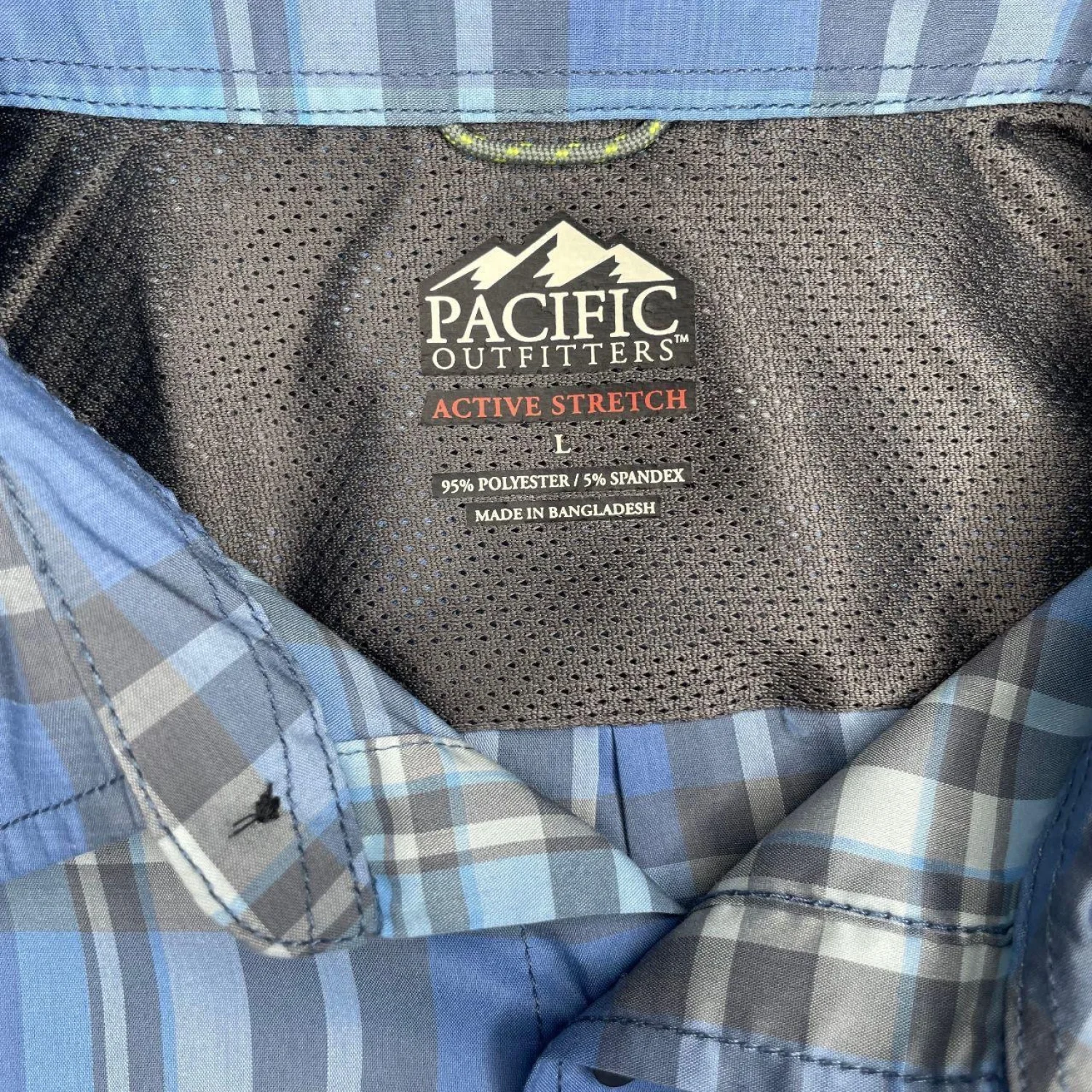 Pacific Outfitters Gorpcore Blue Plaid Active Stretch Hiking Shirt Men's Large