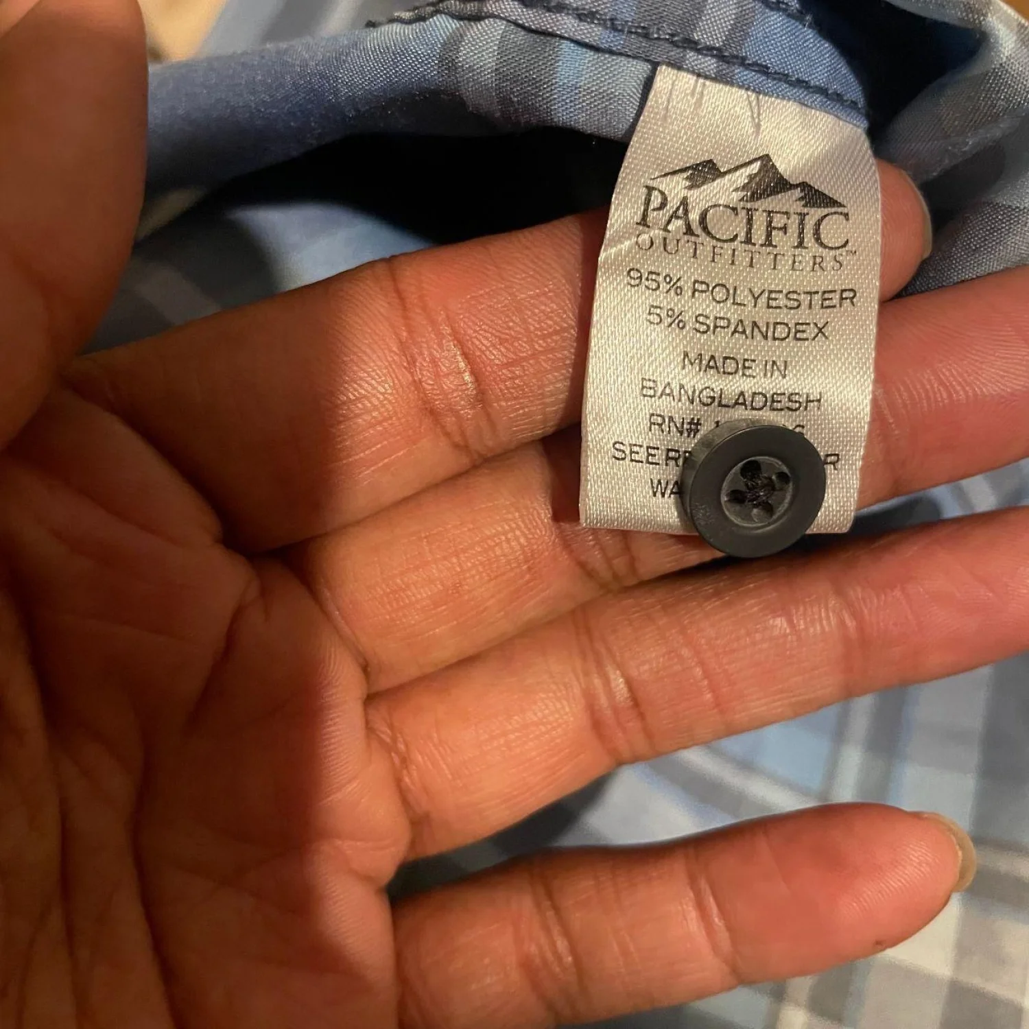 Pacific Outfitters Gorpcore Blue Plaid Active Stretch Hiking Shirt Men's Large Features: Durable Gorpcore staple for the trail or the street. This Pacific Outfitters button-up features a specialized Active Stretch fabric with a 5% spandex blend for maximum mobility. Note the breathable, mesh-lined yoke for superior ventilation during high-output activity. • Style Profile: gorpcore, hiking, technical, outdoor, utility, performance, granola girl, normcore, mountain, trek, streetwear, activewear, breathable, moisture wicking, stretch • Flaws: No Holes, stains, or tears • Please see the photos for measurements (in inches). PTP: 24' Length:28.5-29' Happy to answer your questions! Super Fast Shipper! Bundle items for discounts!