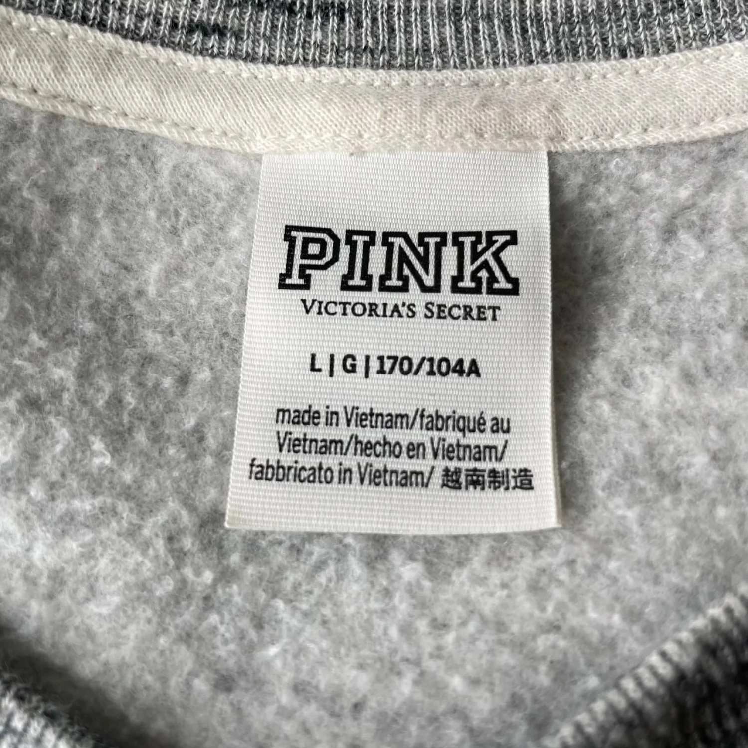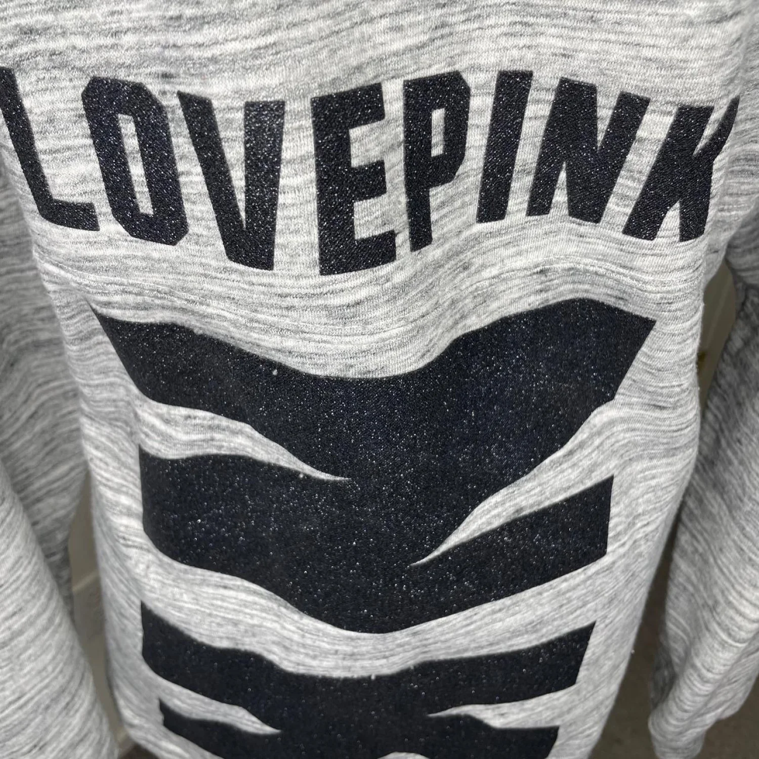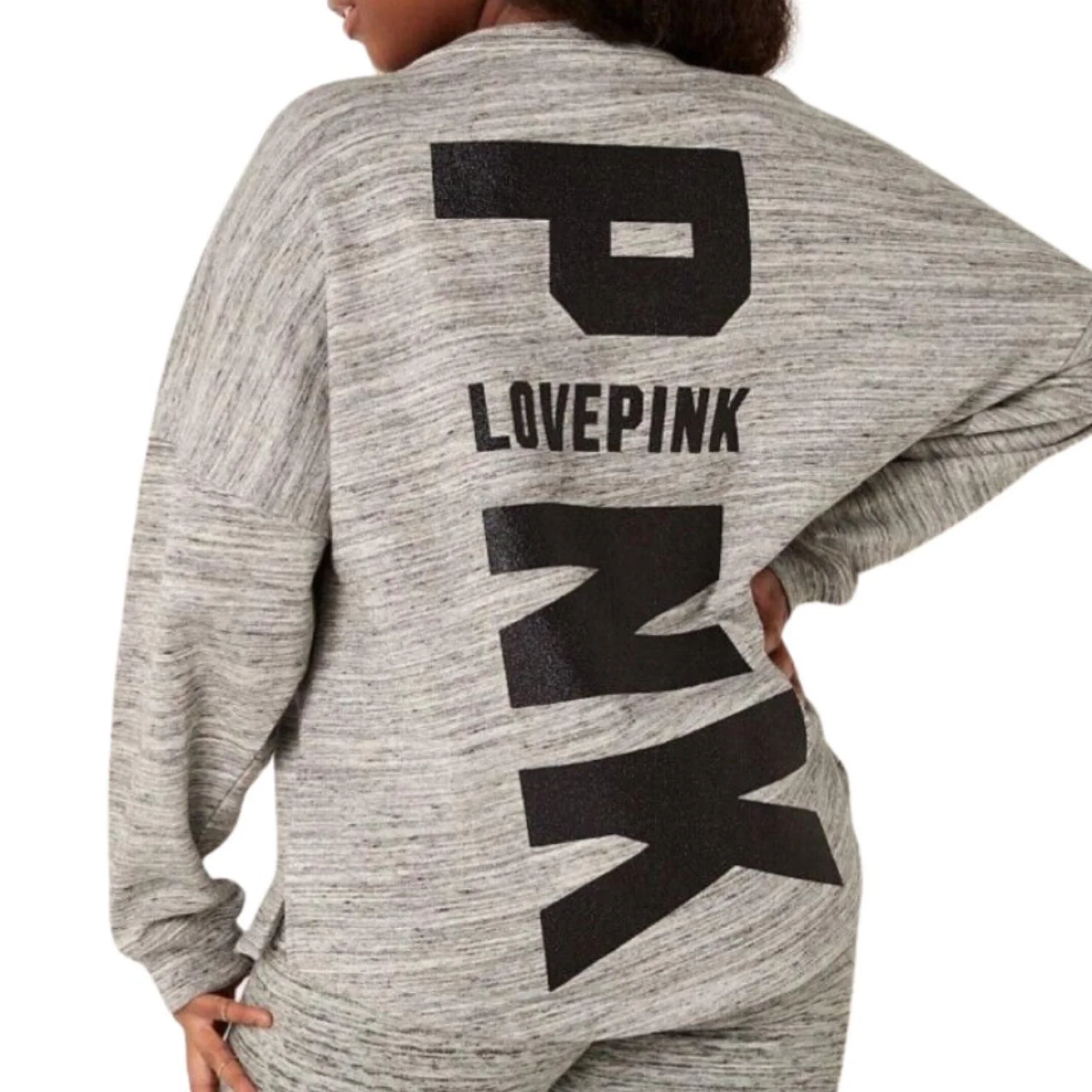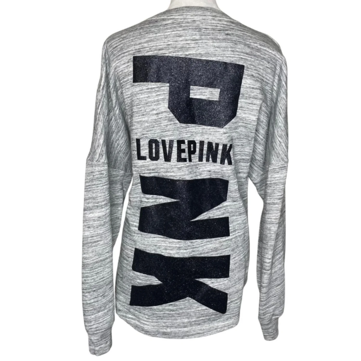 PINK Victoria's Secret Grey Bling Black Varsity Crew Sweatshirt Pullover Large