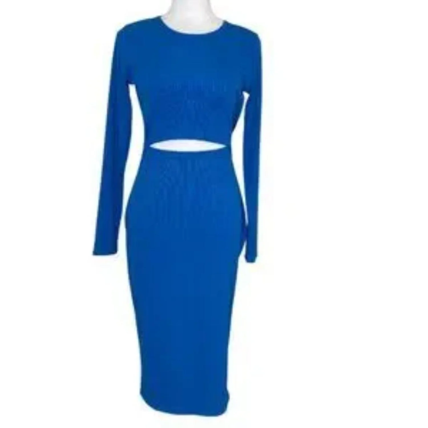 Pretty Garden Medium Bodycon Dress Ribbed Stretch Cutout Long Sleeve
