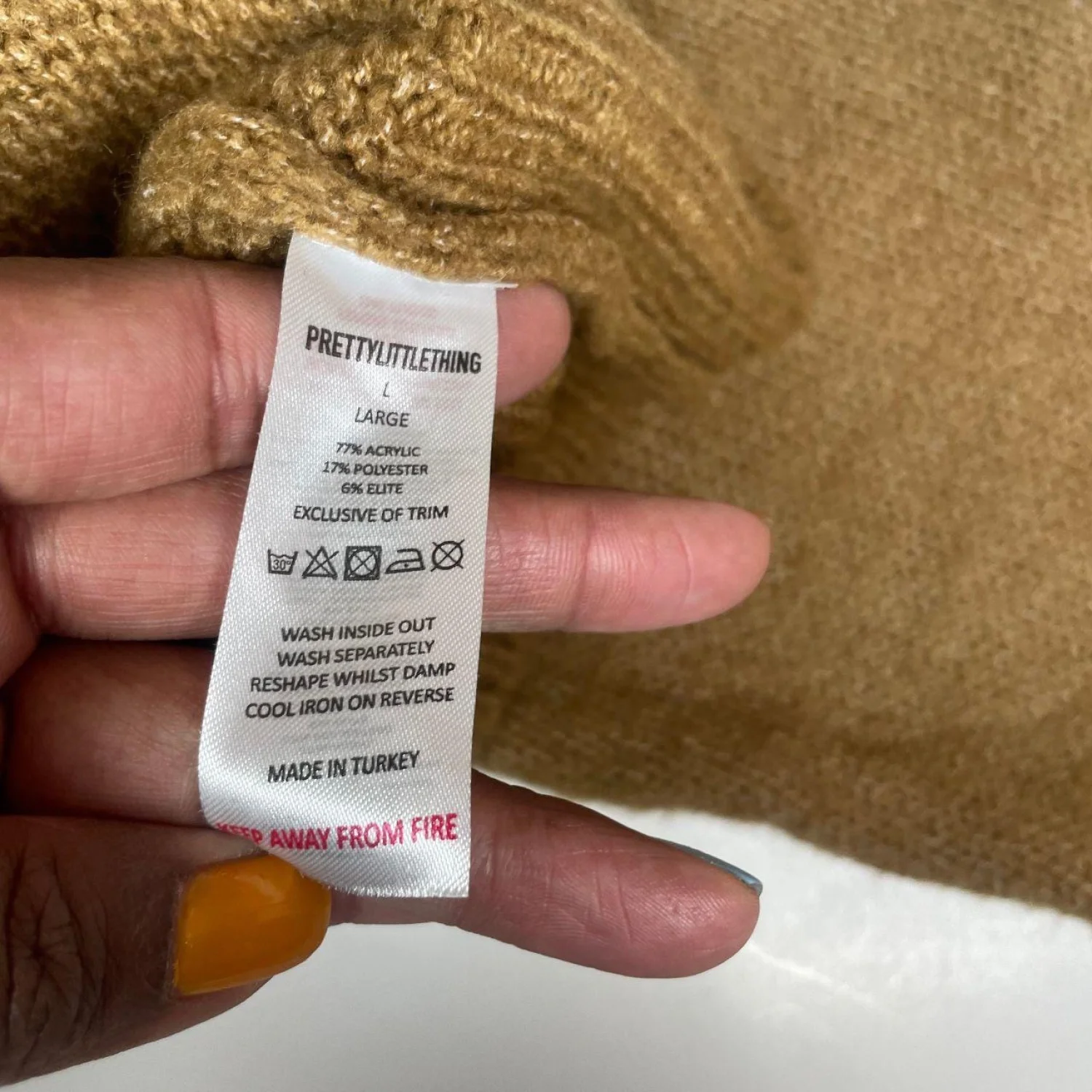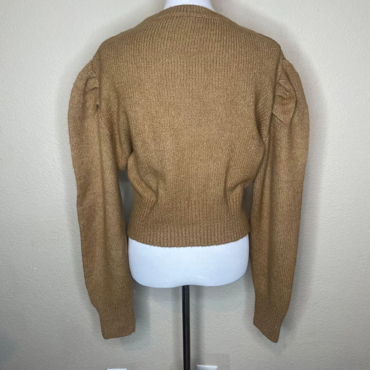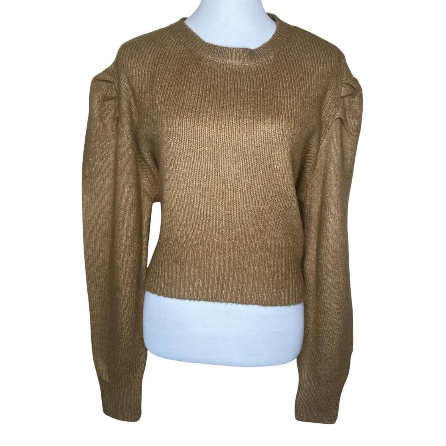 PrettyLittleThing Camel Puff Sleeve Knit Sweater - Size Large