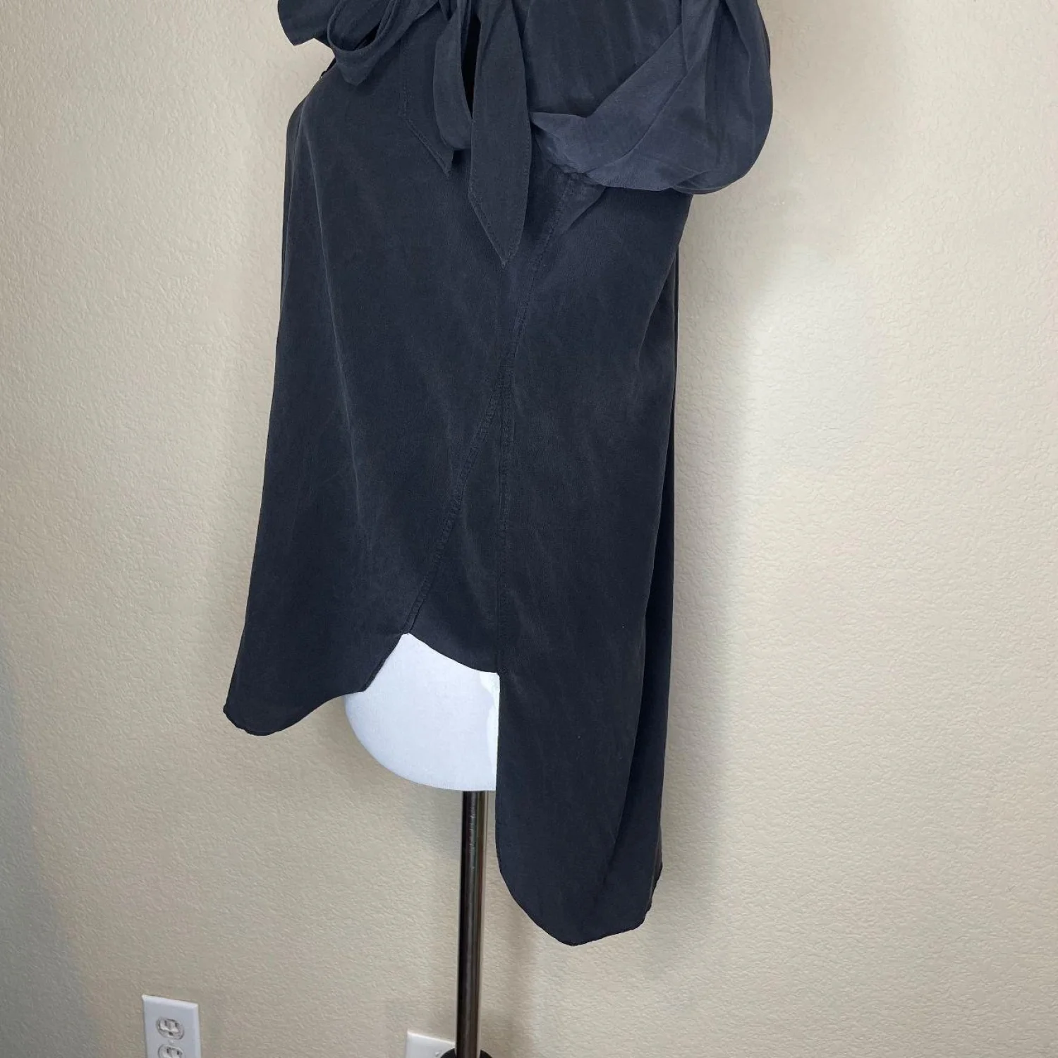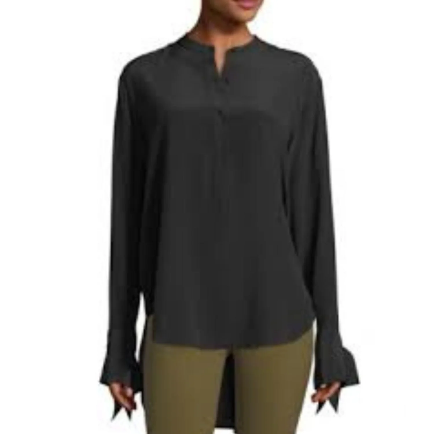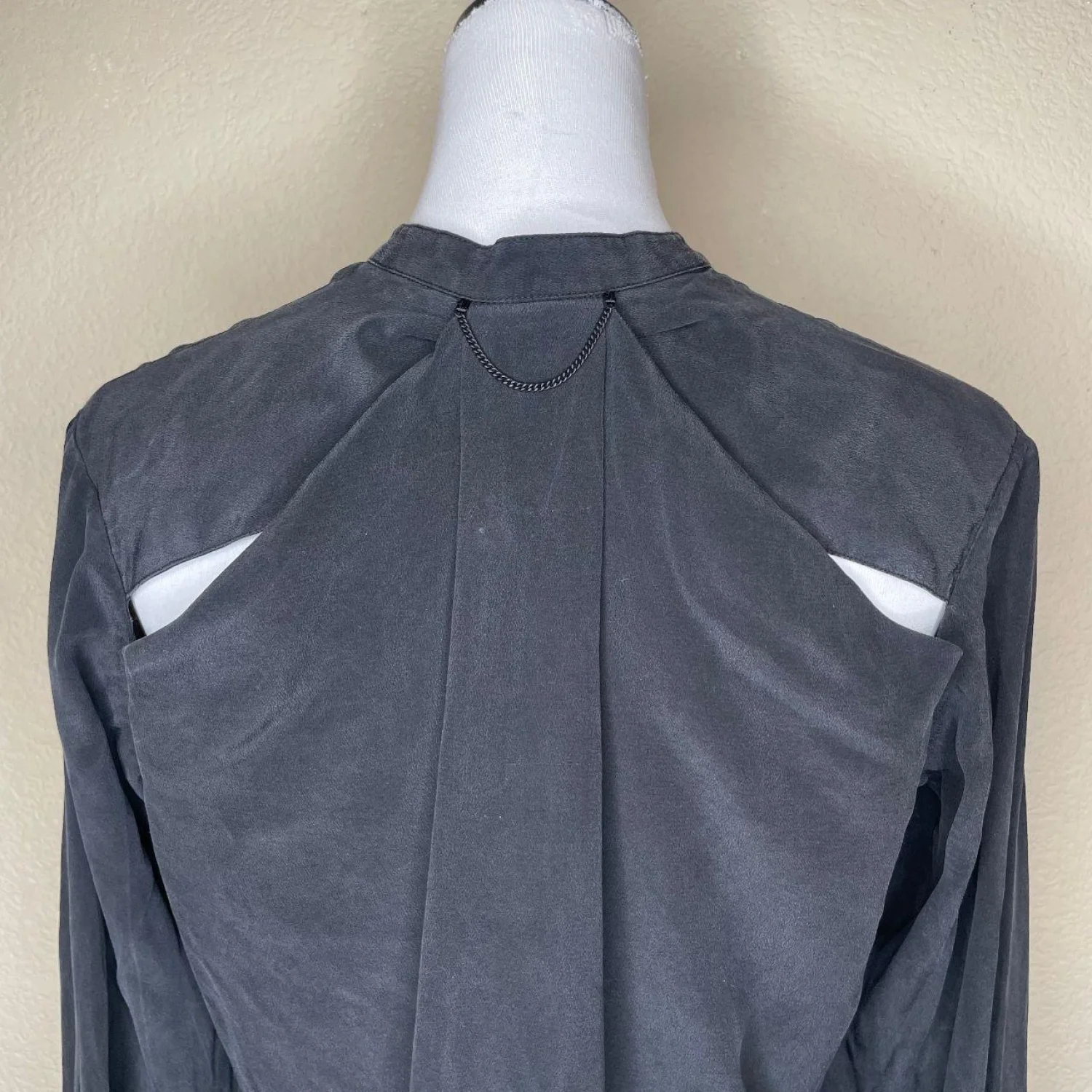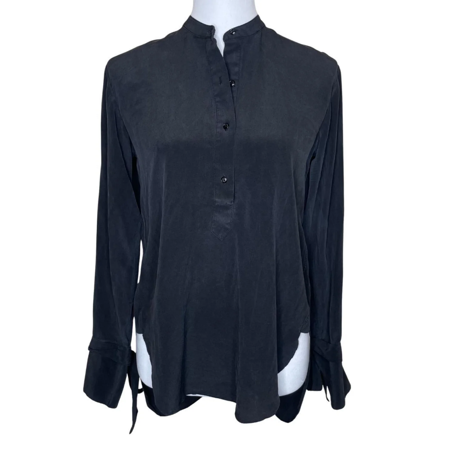 Rag & Bone Dylan Black 100% Silk Tie Cuff Cutout Back Blouse Tunic
