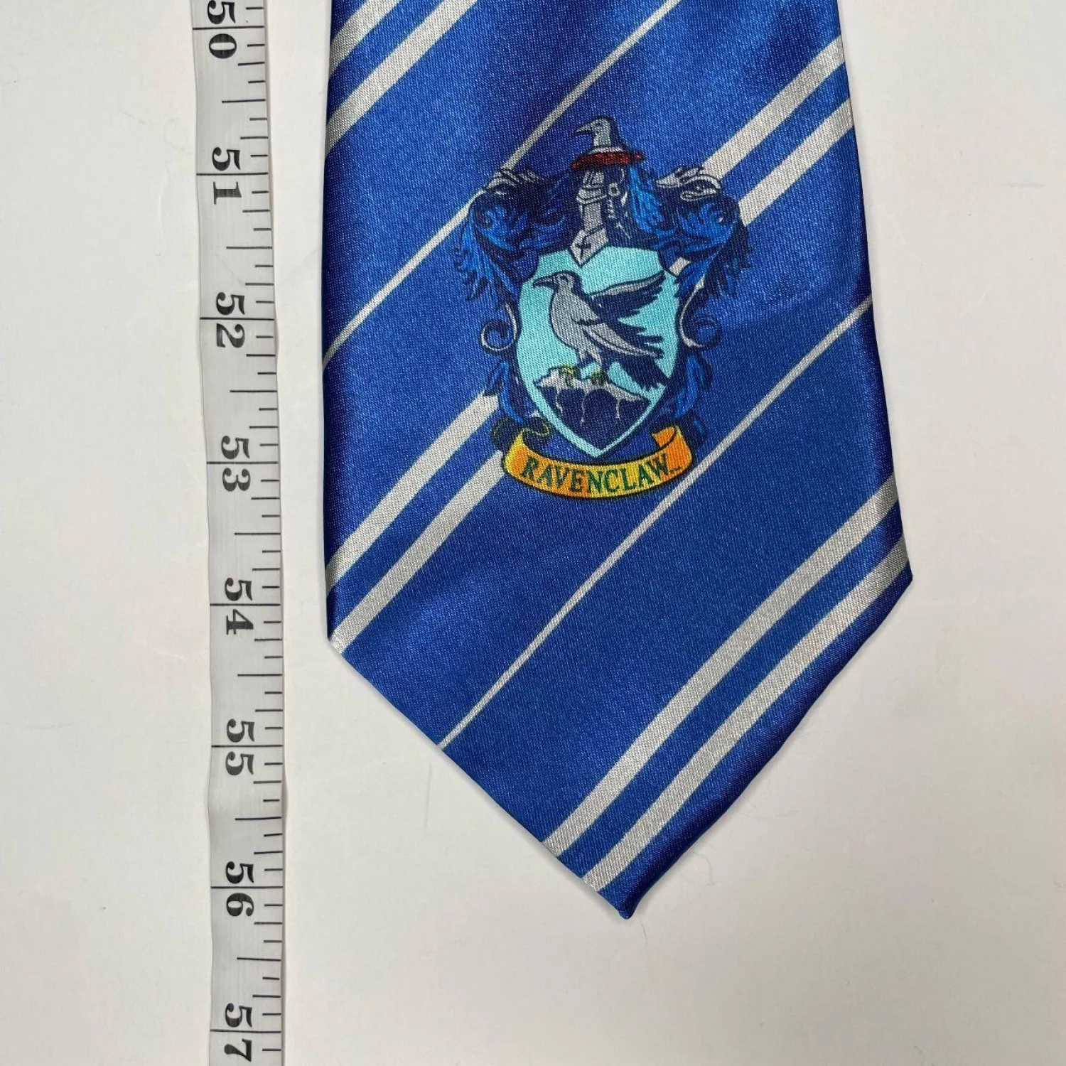 Offers Welcomed🎉 Features: This tie features the iconic navy blue and silver diagonal stripes from the Harry Potter films, complete with a detailed Ravenclaw crest near the tip. Perfect for cosplay, Halloween, or adding a "Geek Chic" touch to your everyday academic wardrobe. • Style Profile: Dark Academia, Preppy, Wizardcore, Cosplay, Geek Chic, Collegiate, Hogwarts, Fantasy, Bookish, Scholarly, Movie Merch, Goth Academia, Minimalist, Unisex, 2000s Aesthetic • Flaws: Good pre-owned condition with some loose threading on the back vertical seam (see photo). Does not affect the front appearance or wearability. • All measurements are approximate Length: 56' Happy to answer your questions! Super Fast Shipper!