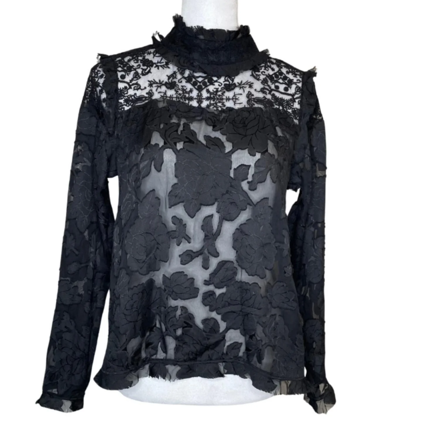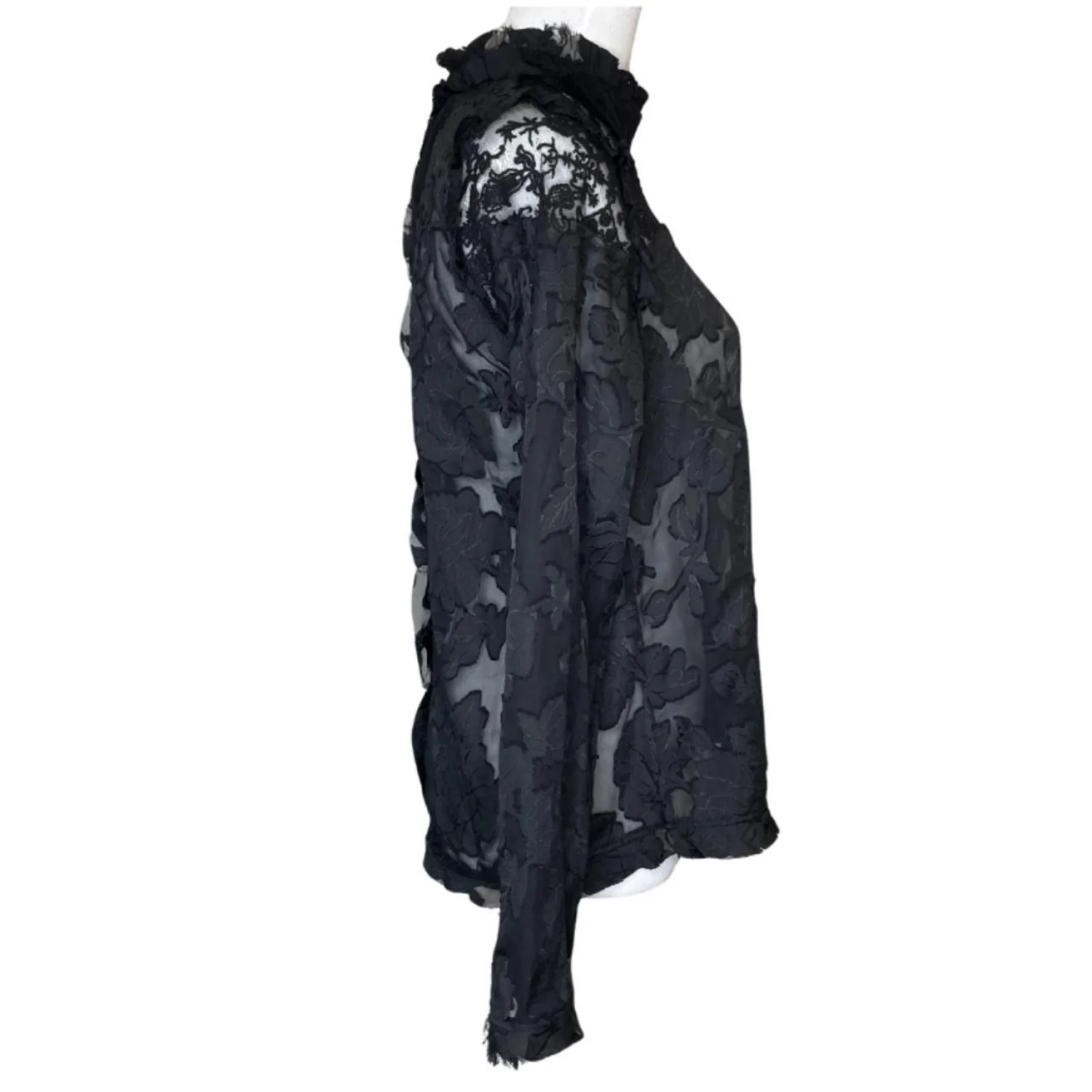 Rhapsodielle Women's Floral Lace Ruffled Mock Neck Coquette Dark Academia Size Medium