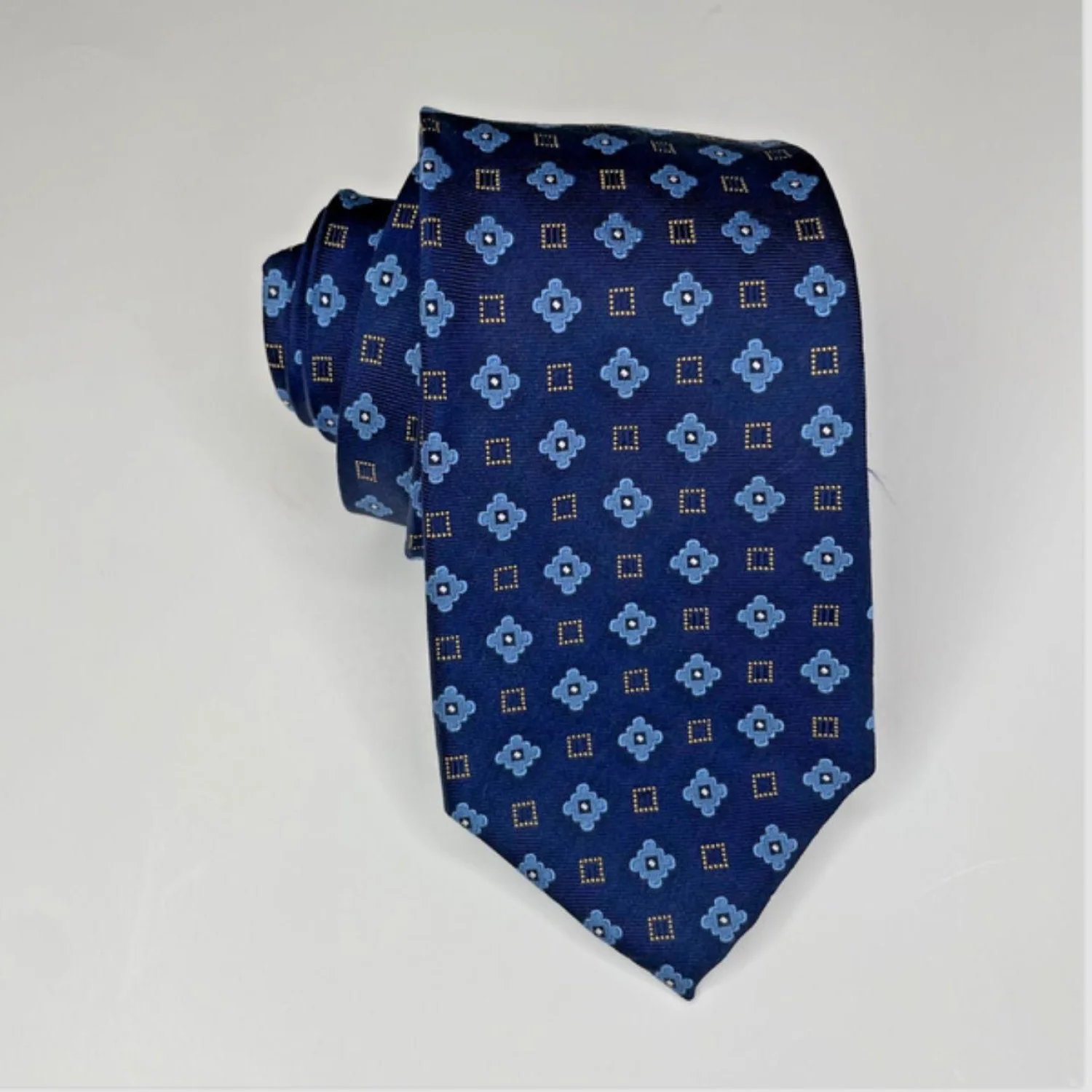 Roundtree & Yorke Navy Silk Medallion Tie – Dark Academia Geometric Necktie