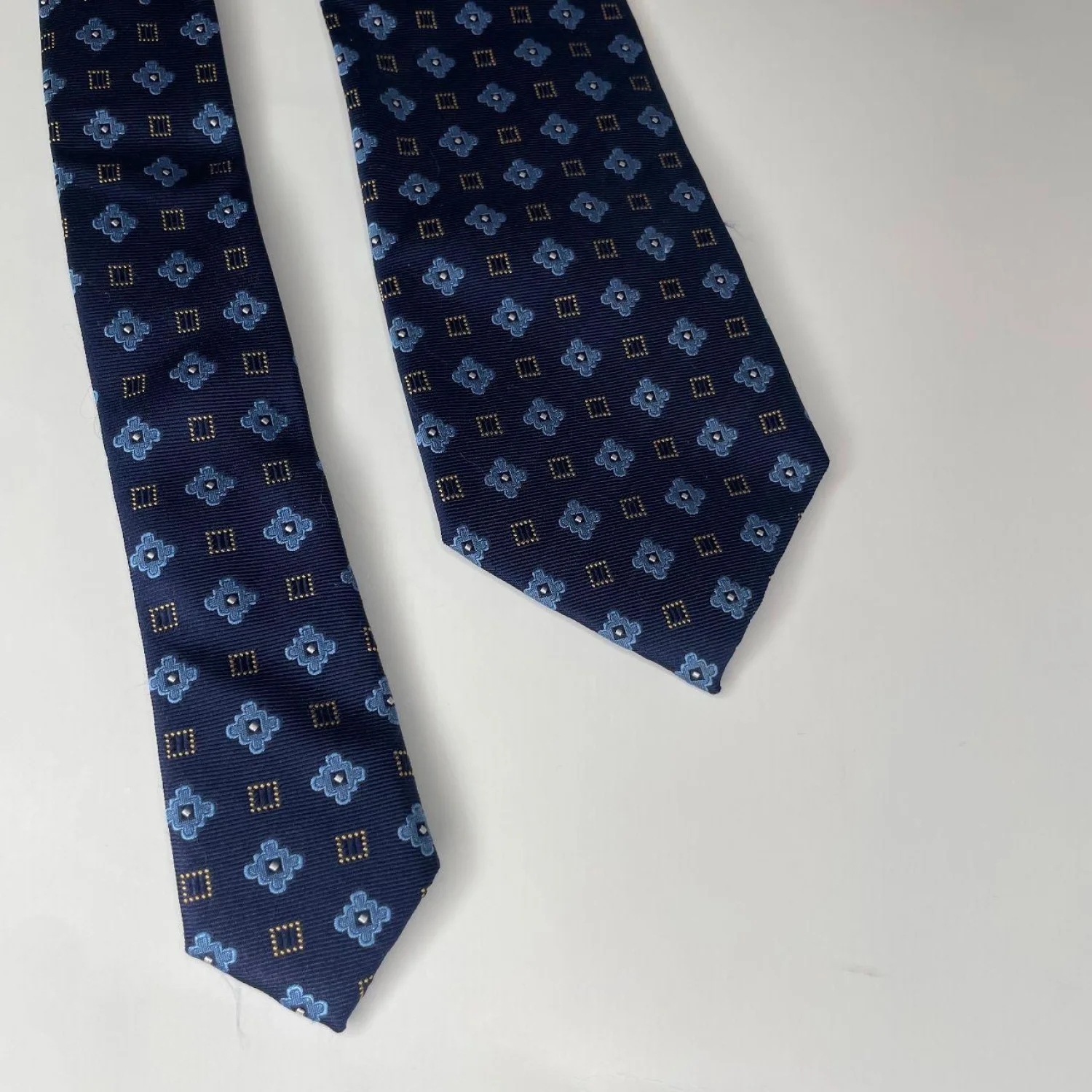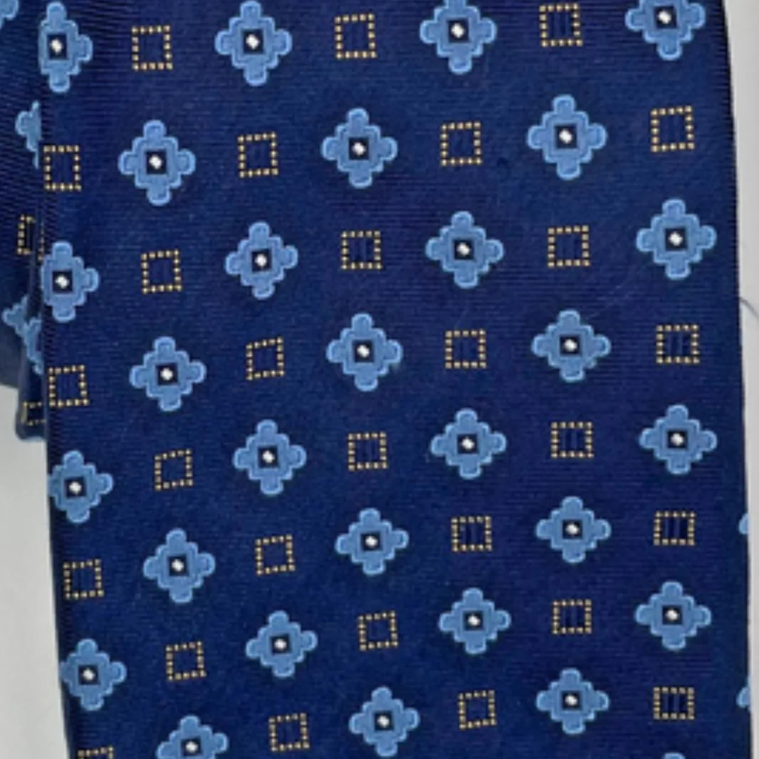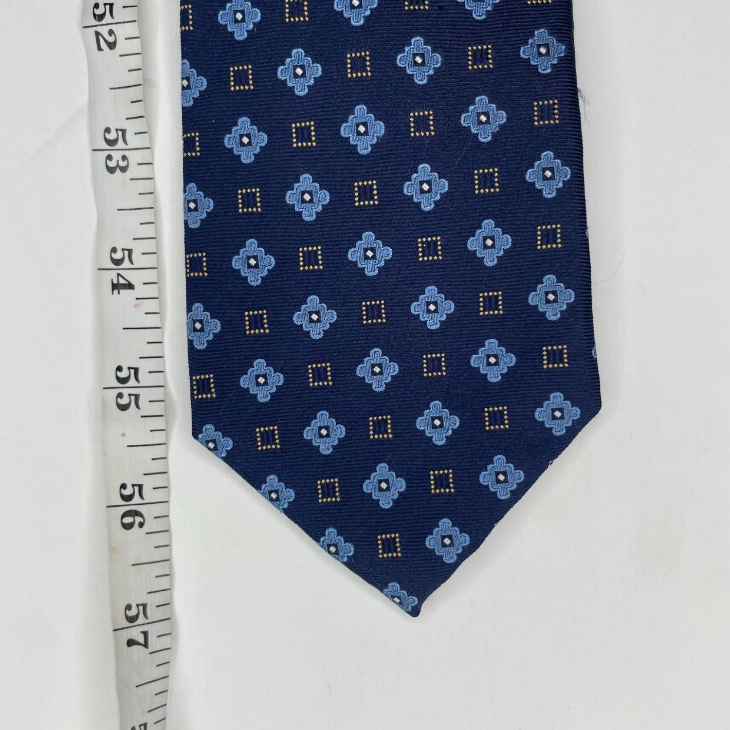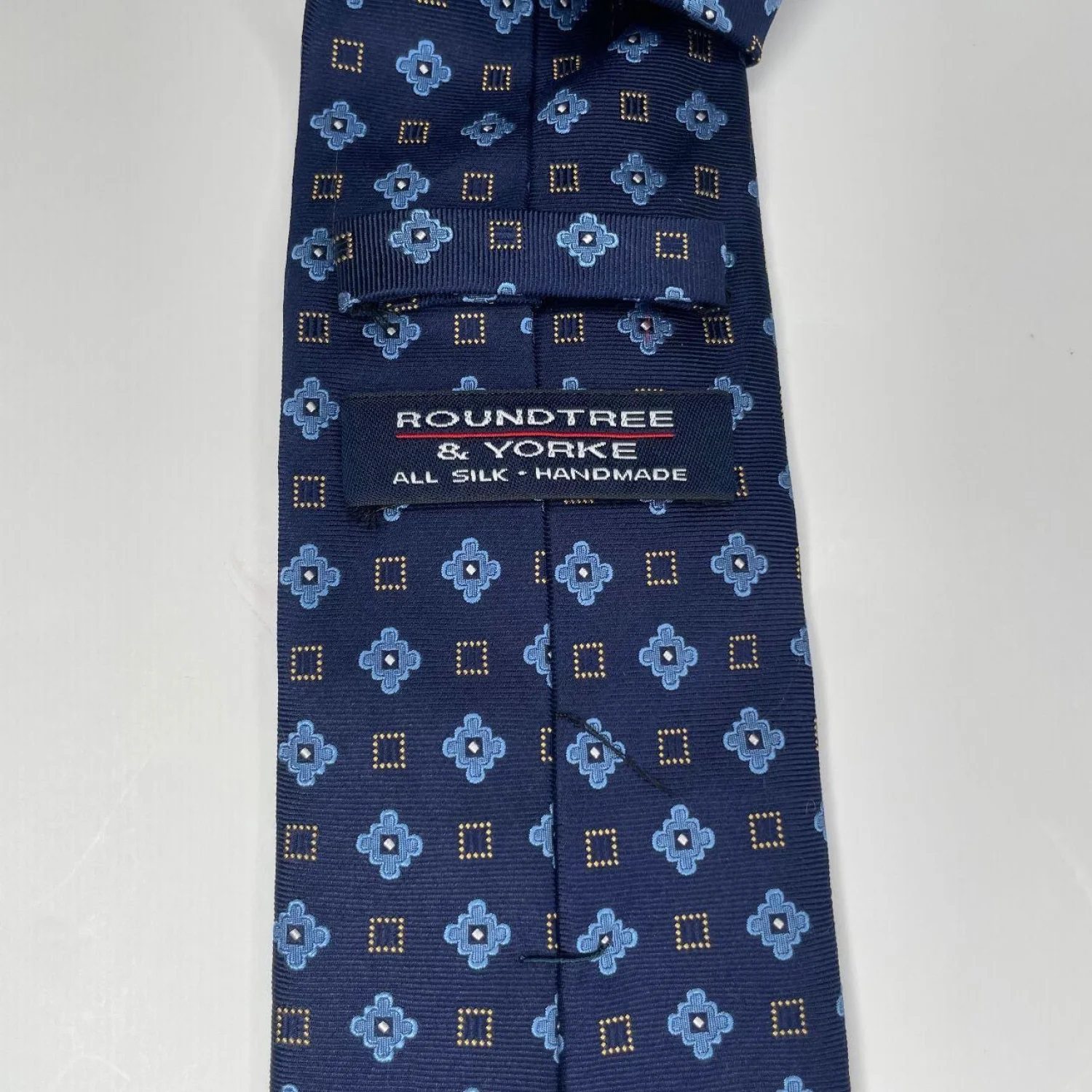 Roundtree & Yorke Navy Silk Medallion Tie – Dark Academia Geometric Necktie Features: Heavyweight navy silk with a structured, substantial drape. Features a repeated light blue floral medallion and gold-dotted geometric motif. Sharp, classic silhouette with a clean, handmade finish. • Style Profile: Dark Academia, Preppy, Regencycore, Collegiate, Grandmacore, Menswear, Geometric, Silk, Business Casual, Vintage Aesthetic, Corporate Goth, Quiet Luxury • Flaws: No Holes, stains, or tears • All measurements are approximate Length: 57' Happy to answer your questions! Super Fast Shipper!