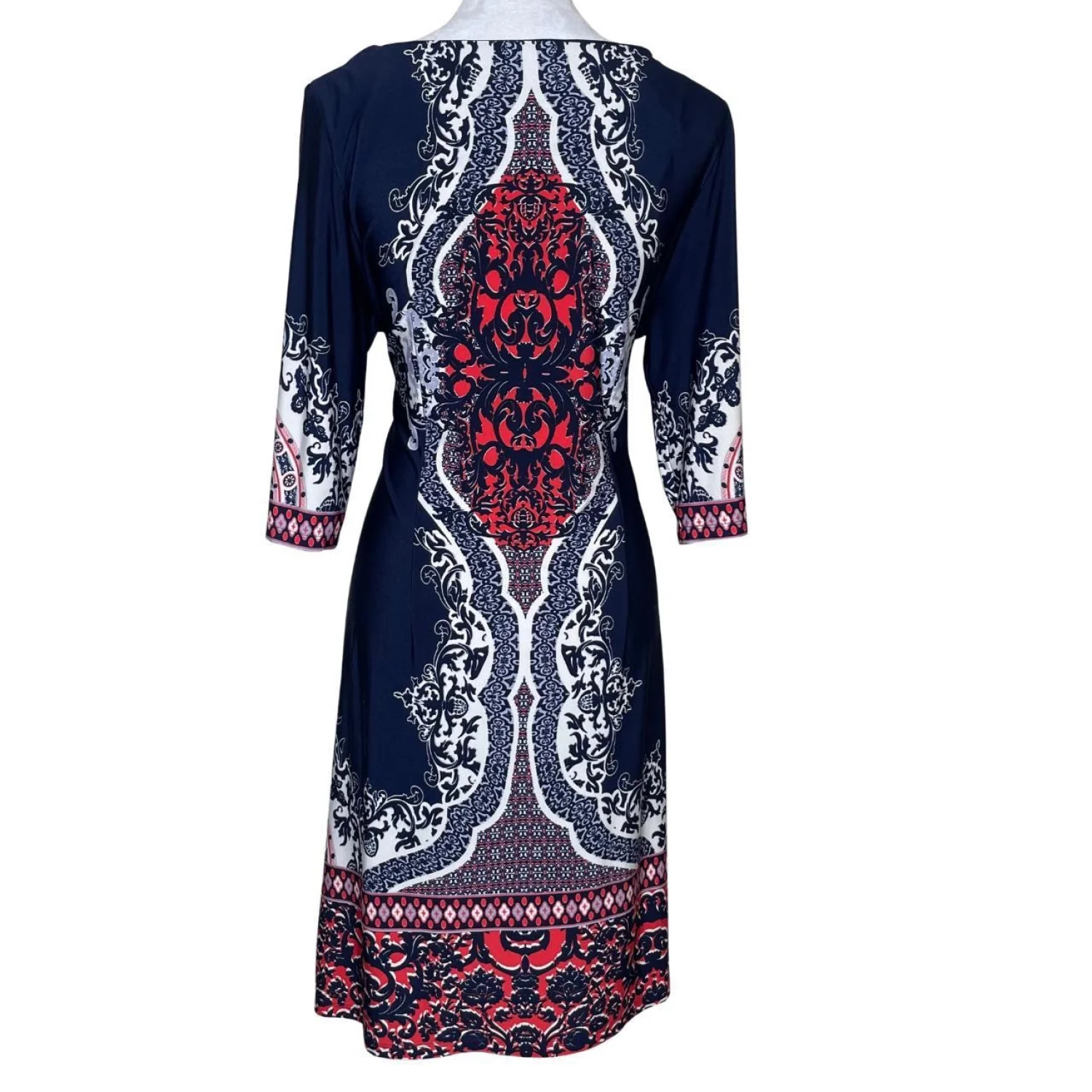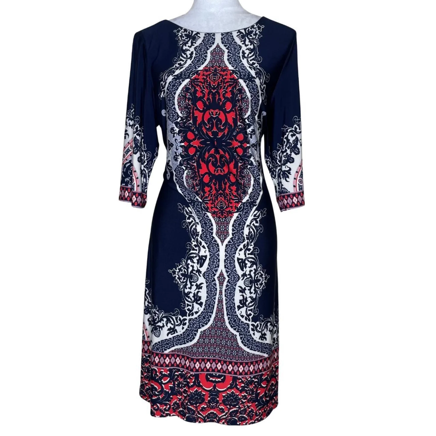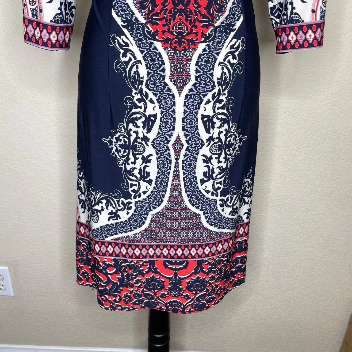 Sandra Darren Women's Paisley Print 3/4 Sleeve Mixed Print Shift Dress Size 14