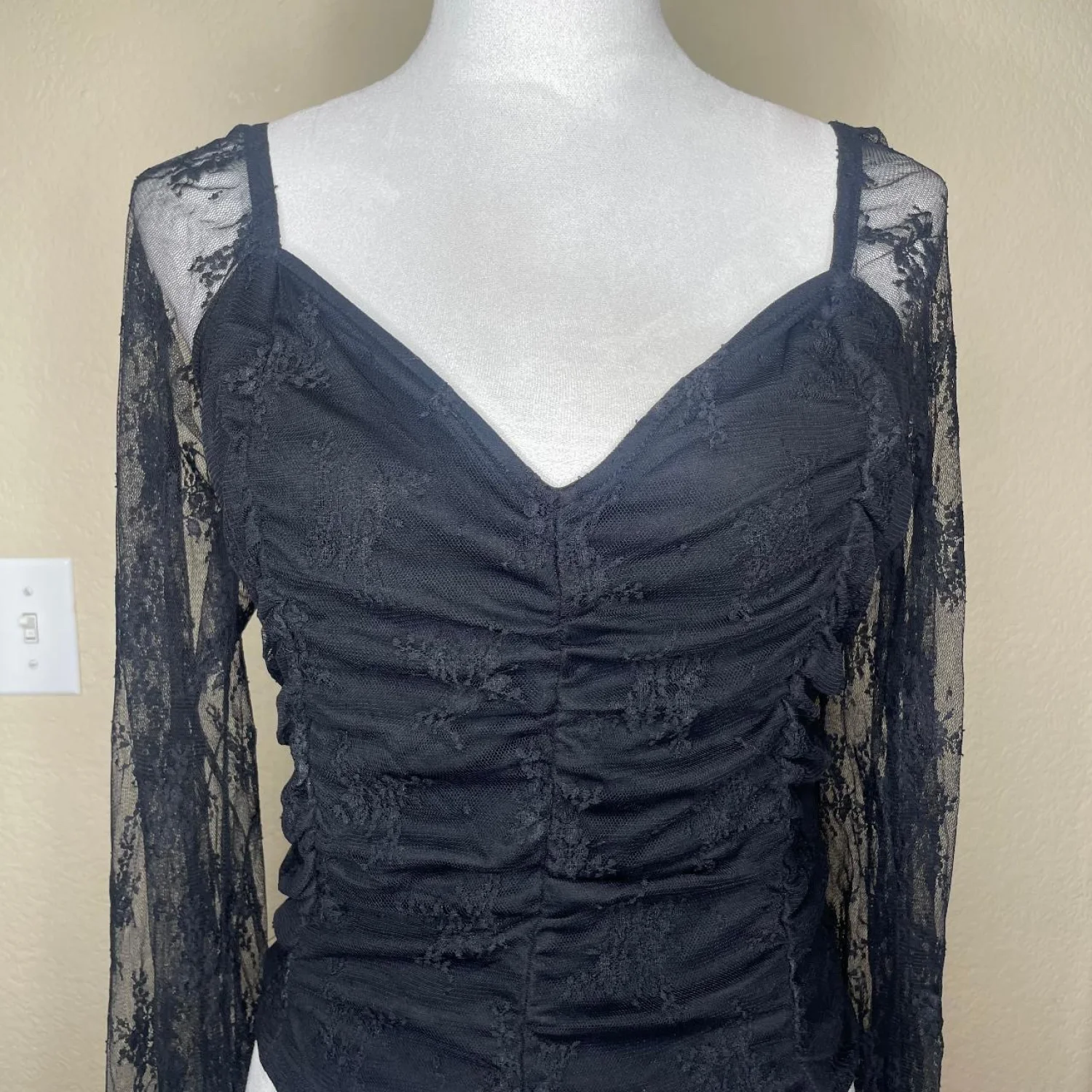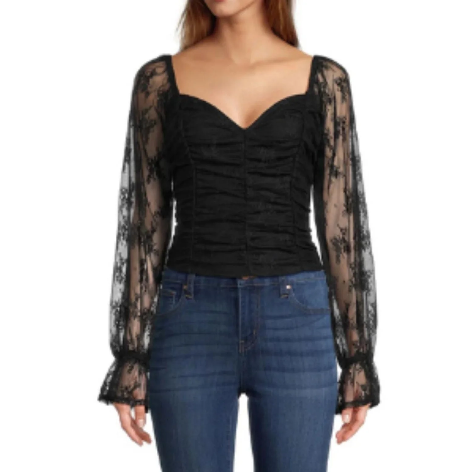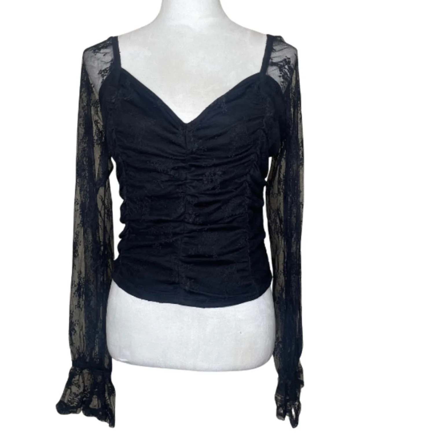 Self Esteem Black Shirred Bodice Blouson Sleeves Crop Top Size XL
