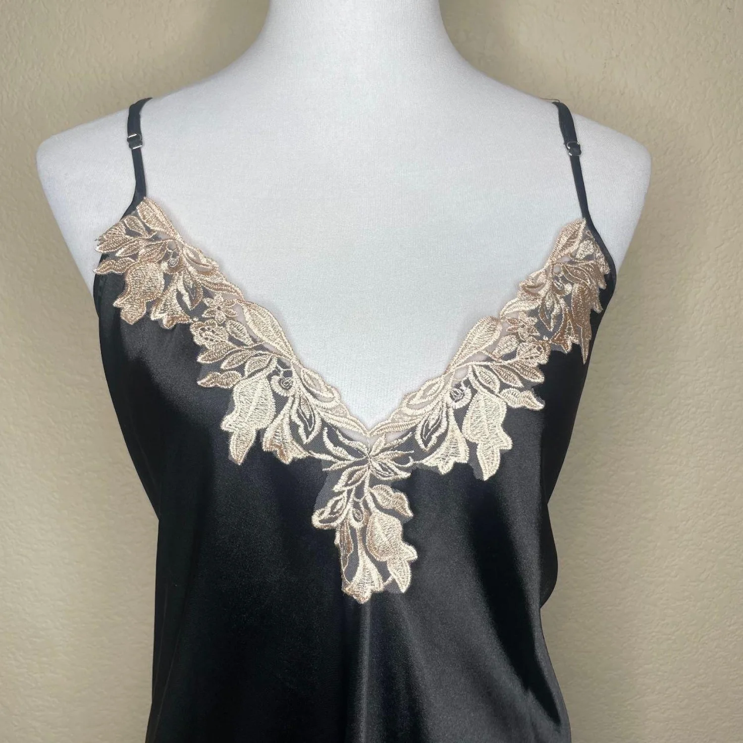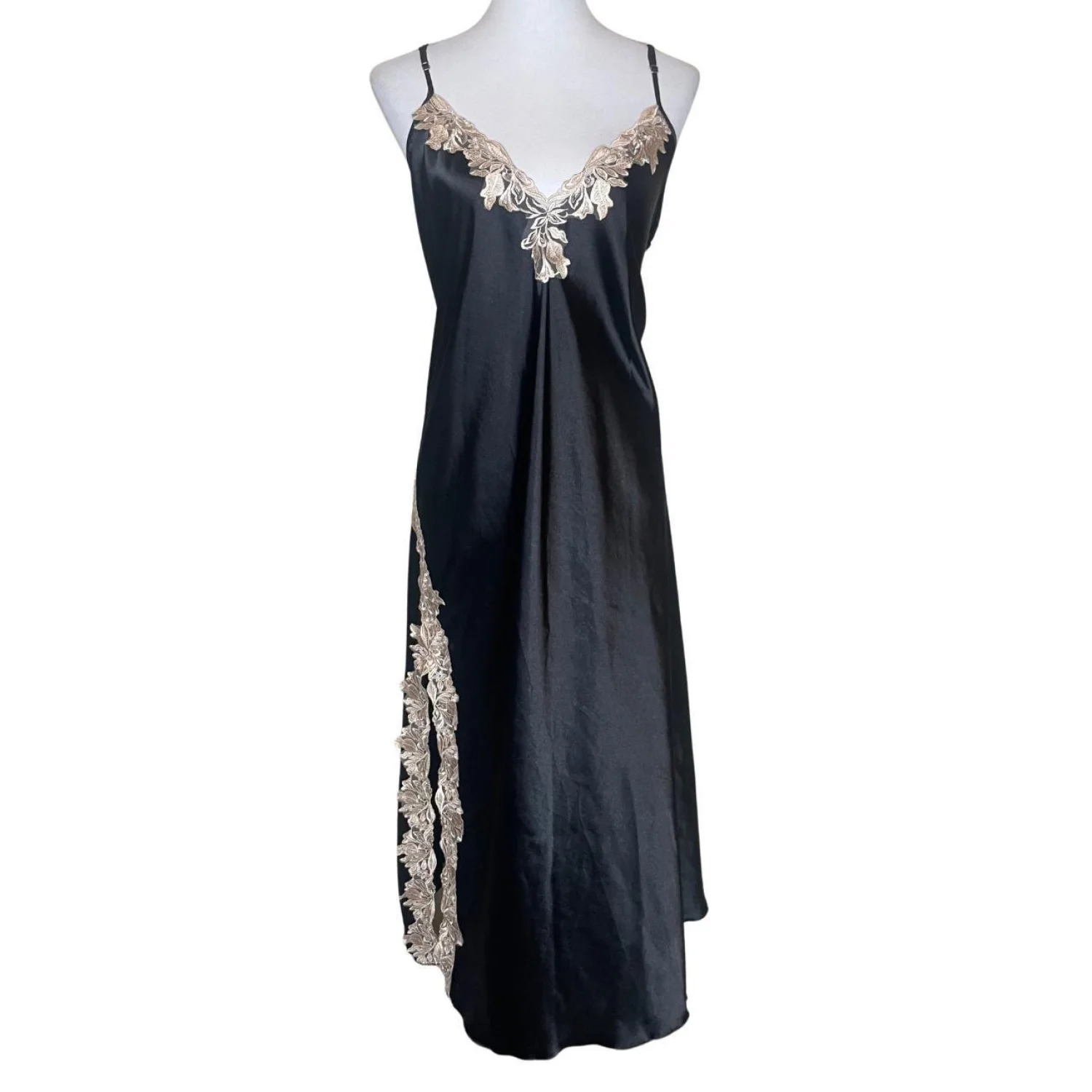 SHEIN Black Satin Maxi Nightgown Gold Lace V-Neck Side Split Lingerie Dress 2XL Features: Heighten your evening with this stunning SHEIN Curve black satin maxi. This floor-length chemise features a deep V-neckline adorned with intricate gold/champagne floral lace that continues down a dramatic thigh-high side split. Crafted from a soft, lightweight satin blend with adjustable spaghetti straps for the perfect fit. Ideal for lounging in luxury or a romantic night out. • Style Profile: Satin, Lace, Lingerie, Maxi, Glam, Romantic, Boudoir, Curve, Plus Size, Nightwear, Elegant, Slit, Chemise • Flaws: No Holes, stains, or tears (Excellent pre-owned condition) • All measurements are approximate PTP: 19.5" Length: 47.5" Happy to answer your questions! Super Fast Shipper!