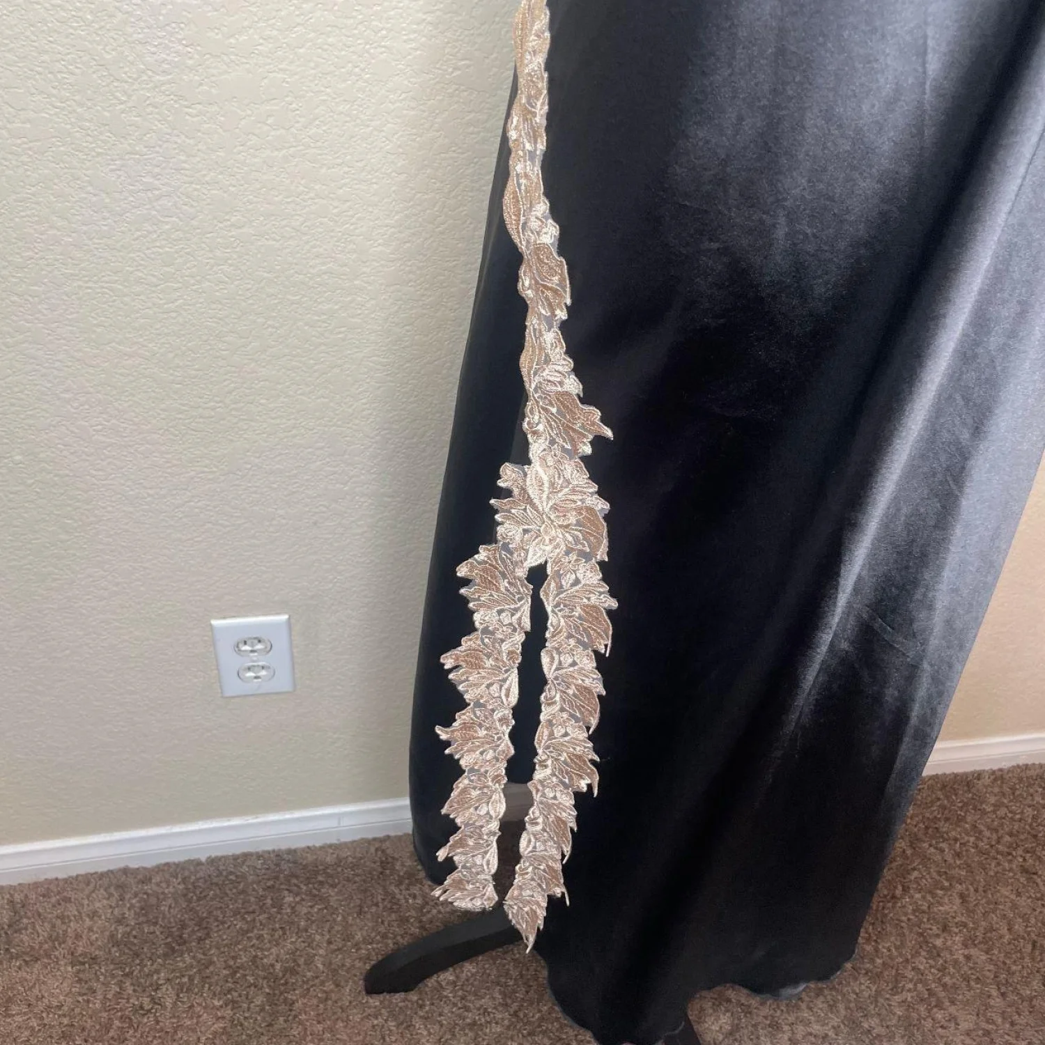 SHEIN Black Satin Maxi Nightgown Gold Lace V-Neck Side Split Lingerie Dress 2XL