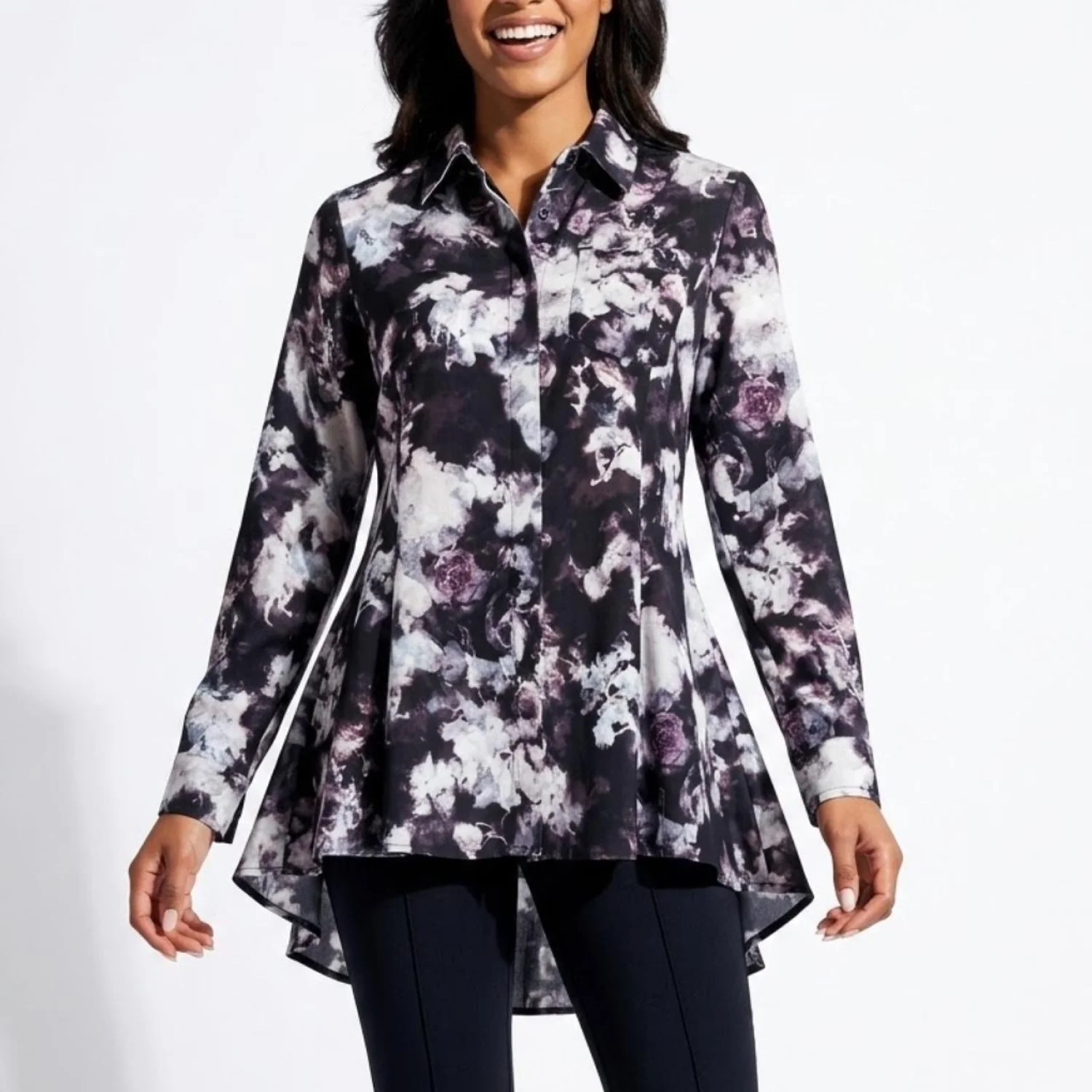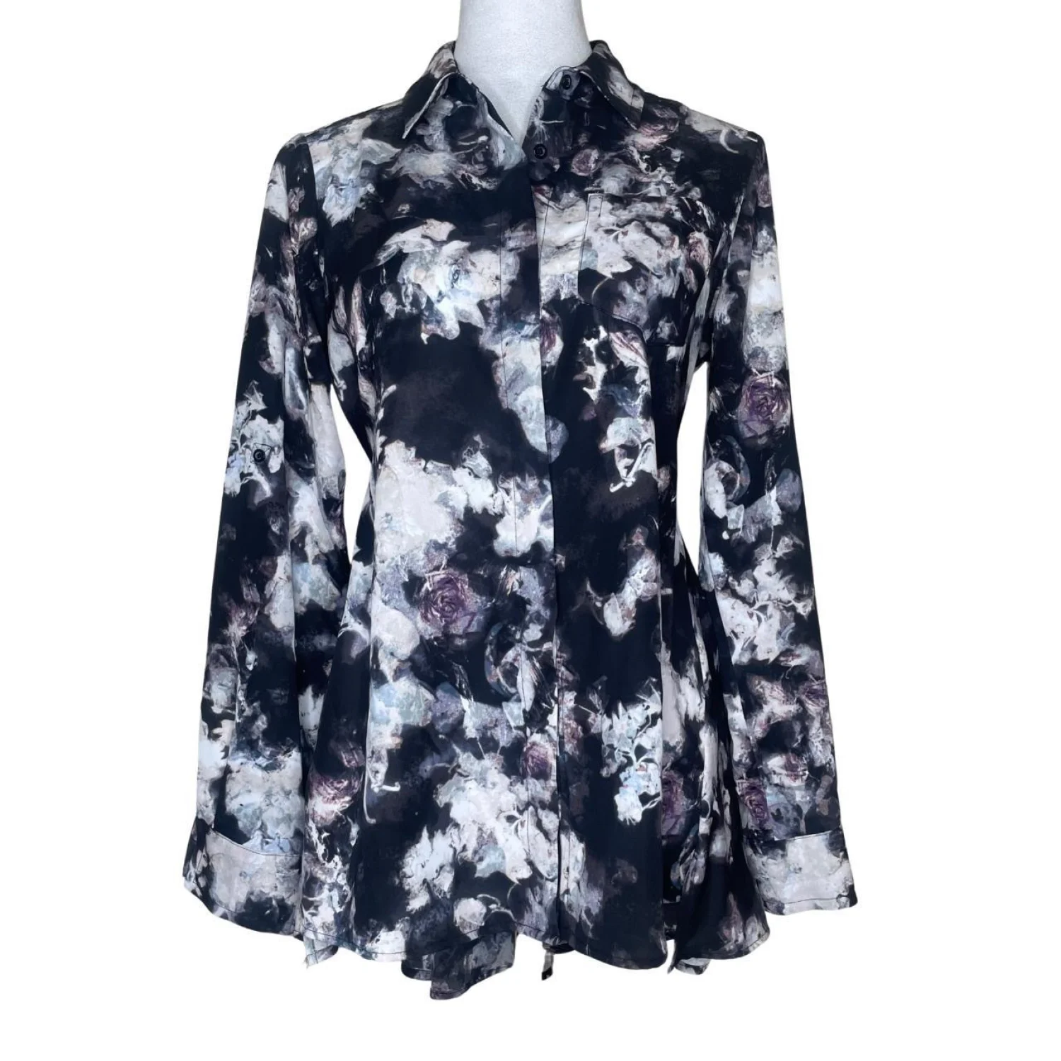 Simply Vera Vera Wang Goth Floral Button Down Tunic Shirt Small NWOT