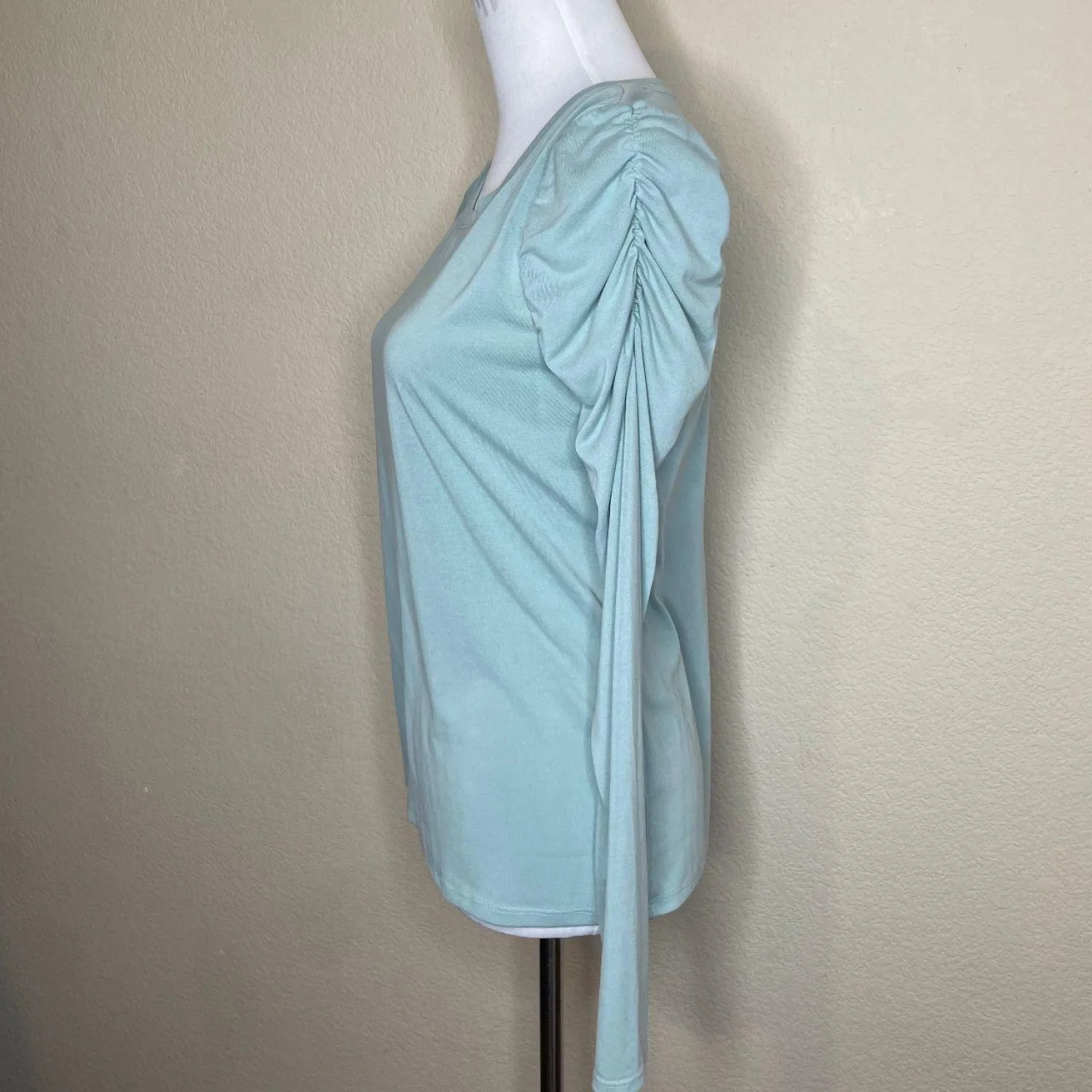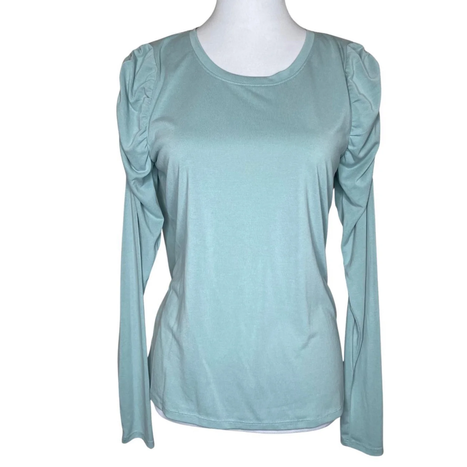Simply Vera Vera Wang Modal Ruched Puff Sleeve Long Sleeve Top Teal Green Features: Upgrade your essentials with this Simply Vera Vera Wang long-sleeve top. Crafted from a soft, breathable modal blend, it features elegant ruched detailing at the shoulders for a subtle puffed sleeve effect. The rich teal/blue-green hue and comfortable stretch make it perfect for layering or wearing on its own for a polished, business-casual look. • Style Profile: Business Casual, Office Wear, Minimalist, Romantic, Feminine, Dark Academia, Soft Girl, Contemporary, Modal, Jewel Tone • Flaws: No Holes, stains, or tears (Excellent pre-owned condition) • All measurements are approximate PTP: 17" Length: 23.5" Sleeve Length: 24" Happy to answer your questions! Super Fast Shipper!