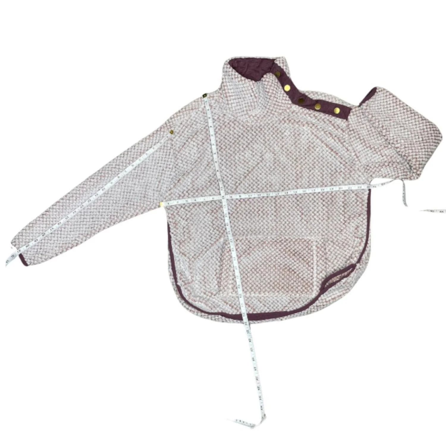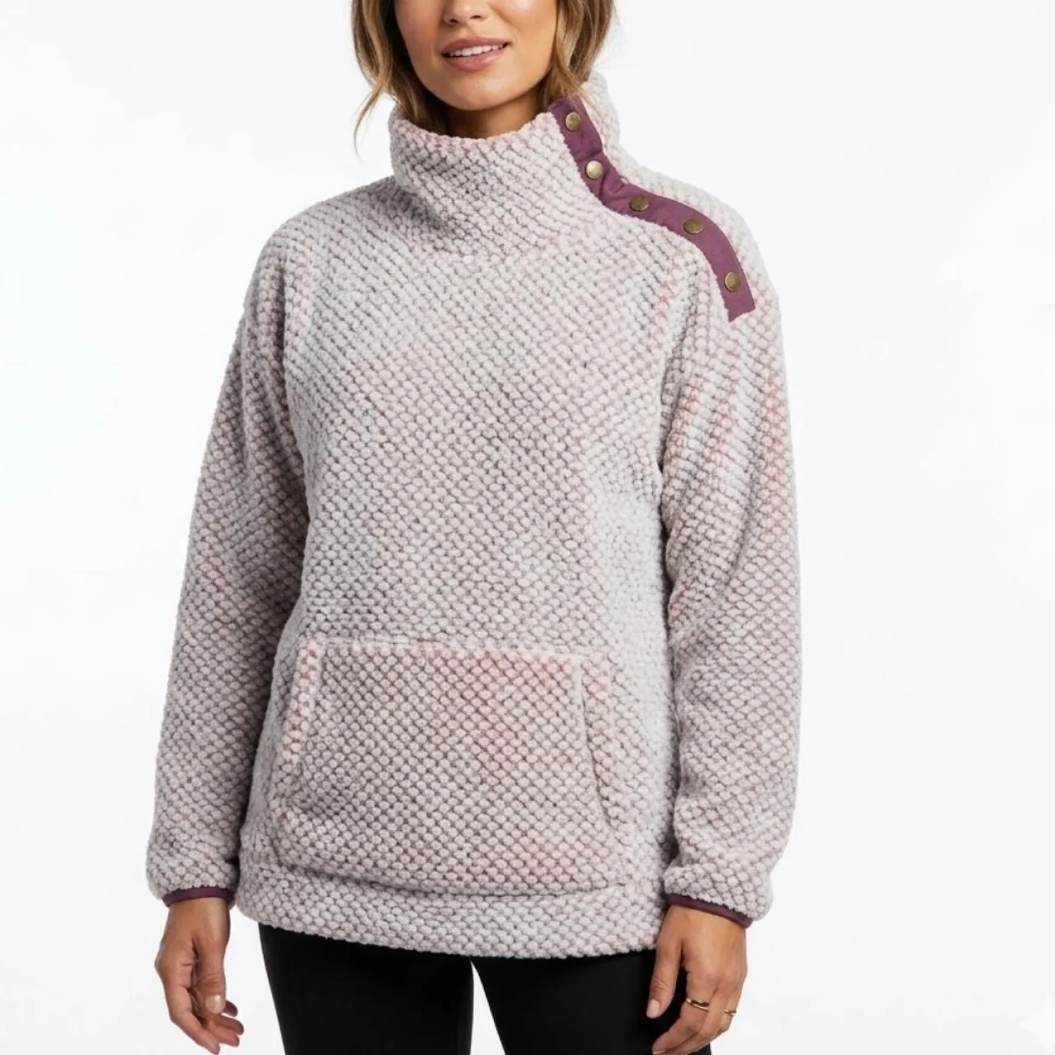 St. John’s Bay Gorpcore Sherpa Snap Neck Pullover Textured Mauve Fleece M Features: Heavyweight popcorn knit texture meets a rugged utility silhouette. This piece features a mock neck with a unique side-snap placket and contrasting plum trim. Boxy, oversized fit with a substantial kangaroo pocket and curved side-slit hem for movement. This is a functional mid-layer with a grit-meets-granola vibe. • Style Profile: Gorpcore, Granola Girl, Utility, Hiking, Crunchy, Outdoor, Sherpa, Cabin Core, Tek, Rural, Rugged, Cozy • Flaws: No Holes, stains, or tears • Please see photos for measurements (in inches). PTP: 23' Length: 25.5' Sleeve Length: 21 • Happy to answer your questions! Super Fast Shipper!