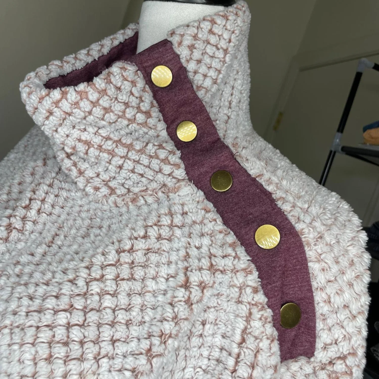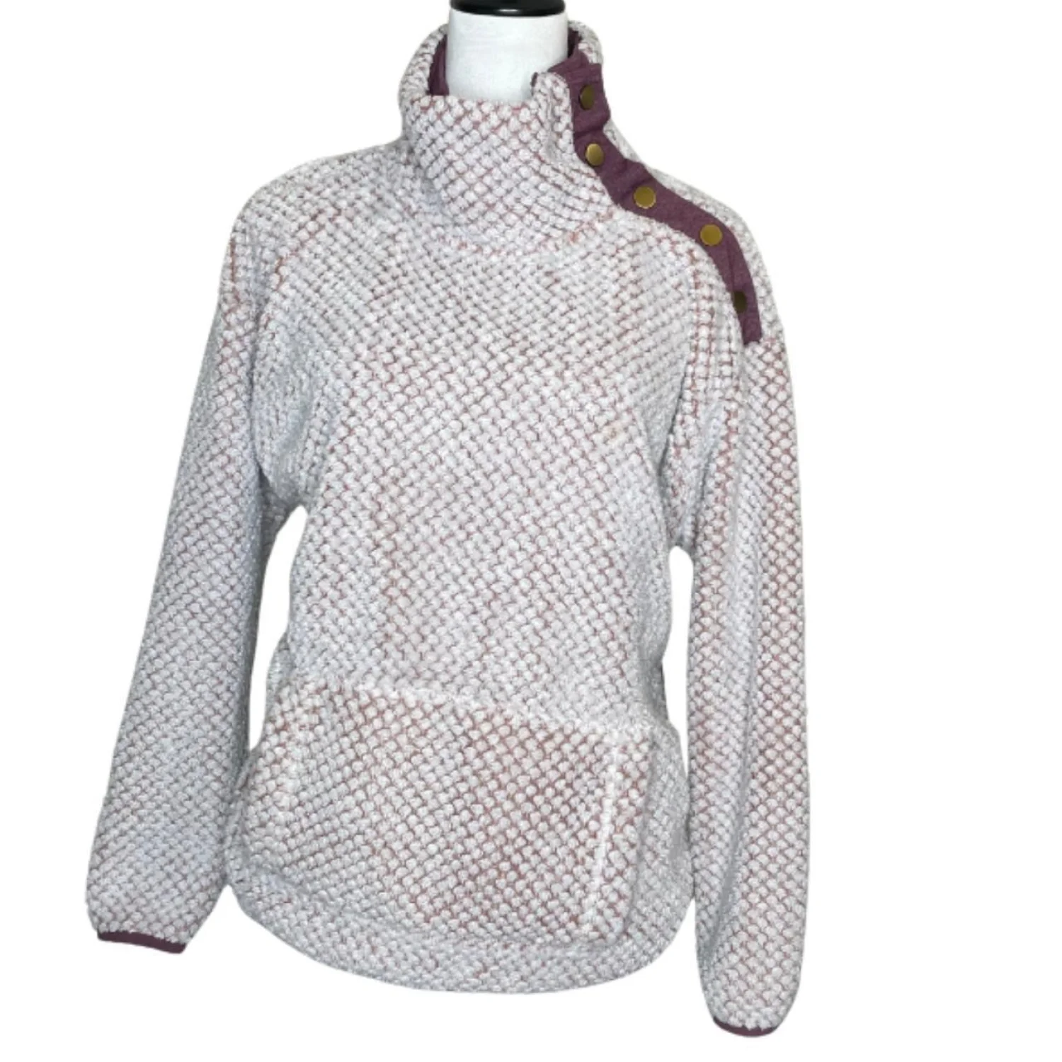 St. John’s Bay Gorpcore Sherpa Snap Neck Pullover Textured Mauve Fleece M