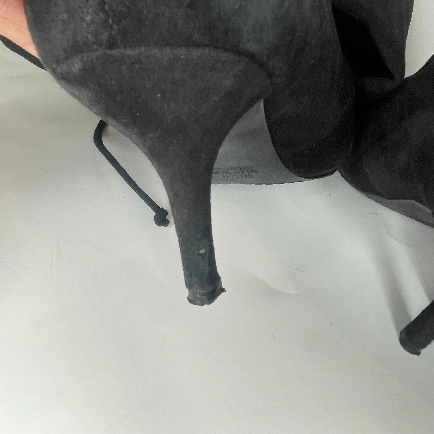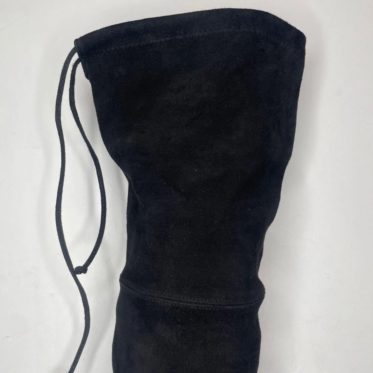 Features: Elevate your winter wardrobe with these authentic Stuart Weitzman over-the-knee boots. Crafted from premium black stretch suede, these feature the iconic adjustable tie-back for a perfect fit and a comfortable kitten heel for all-day wear. • Style Profile: luxury, designer, suede boots, thigh high, kitten heel, minimalist, trendy, fall, winter, date night • Flaws: Pre-owned with visible wear to the heels. The rest of the boot remains in good structural condition. • All measurements are approximate Heel Height: 3' Happy to answer your questions! Super Fast Shipper!