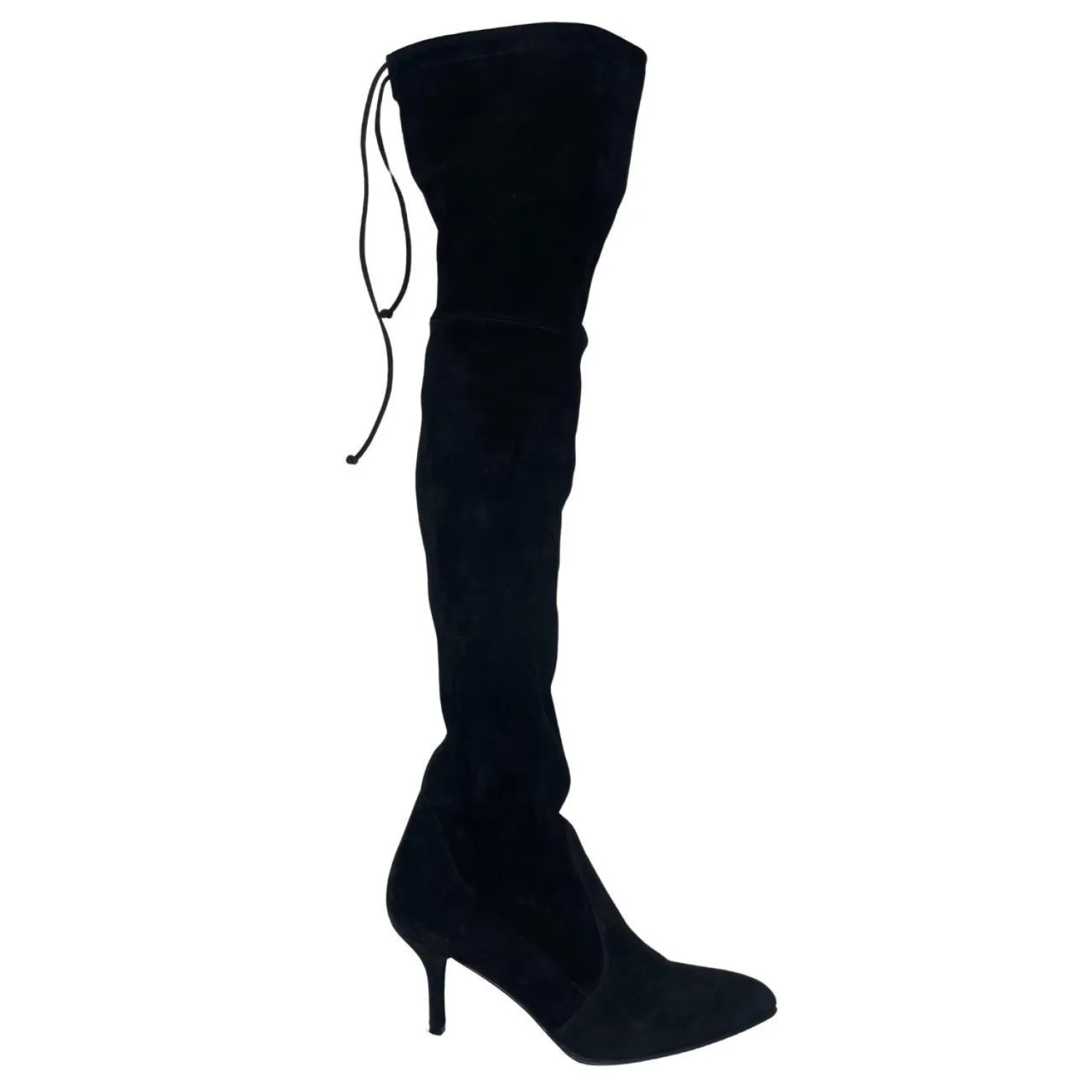 Stuart Weitzman Black Suede Over The Knee Kitten Heel Boots