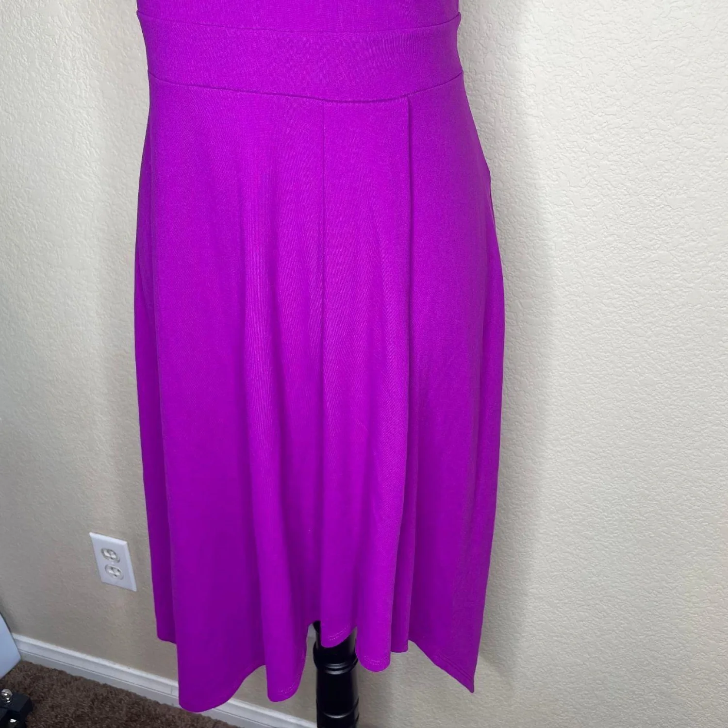 Susana Monaco Purple Handkerchief Hem Midi Dress Sleeveless Cocktail Dress L Features: Turn heads in this vibrant royal purple midi dress from Susana Monaco. Designed with a sophisticated boat neckline and a signature asymmetrical handkerchief hem, this dress offers a stunning fluid movement. The high-quality stretch fabric provides a comfortable, body-conforming fit that holds its shape beautifully. A versatile staple for weddings, parties, or upscale vacations. Effortless pull-on style and made in the USA. • Style Profile: Contemporary, Minimalist, Cocktail, Wedding Guest, Asymmetrical, Quiet Luxury, Chic, Summer, Party, Sophisticated, Bold Color, Made In USA • Flaws: No Holes, stains, or tears • Please see the photos for measurements (in inches). PTP: 16' Length: 35-41' Happy to answer your questions! Super Fast Shipper!
