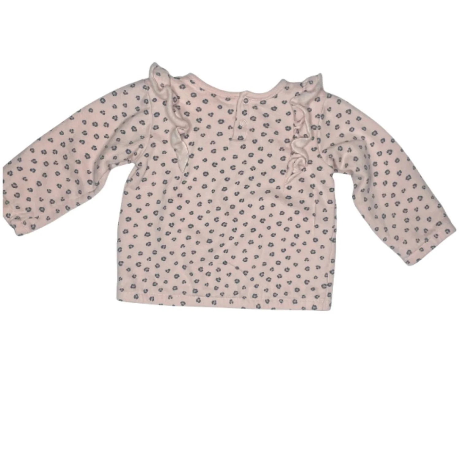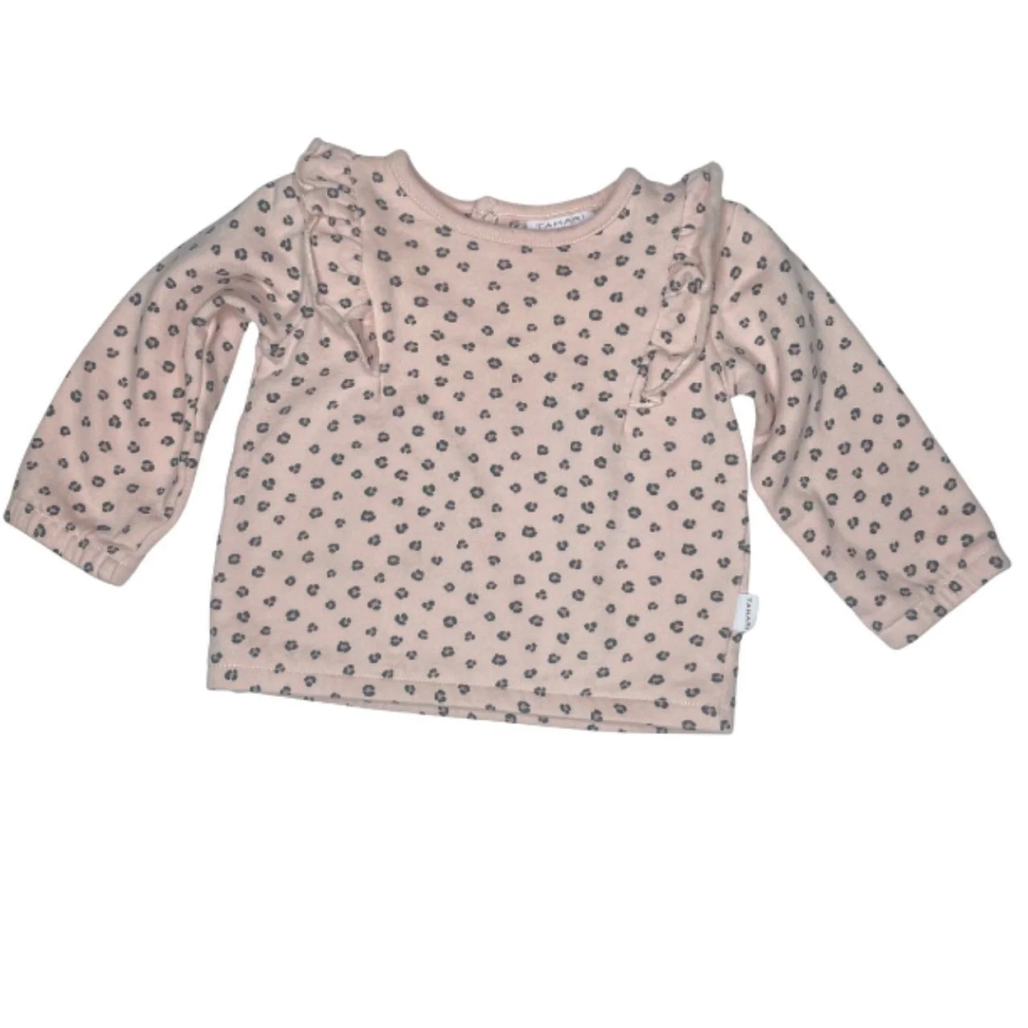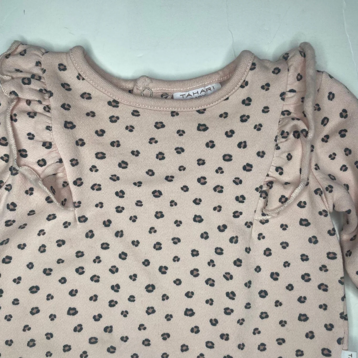 Tahari Baby Pink Leopard Print Organic Cotton Ruffle Shoulder Sweatshirt 18M