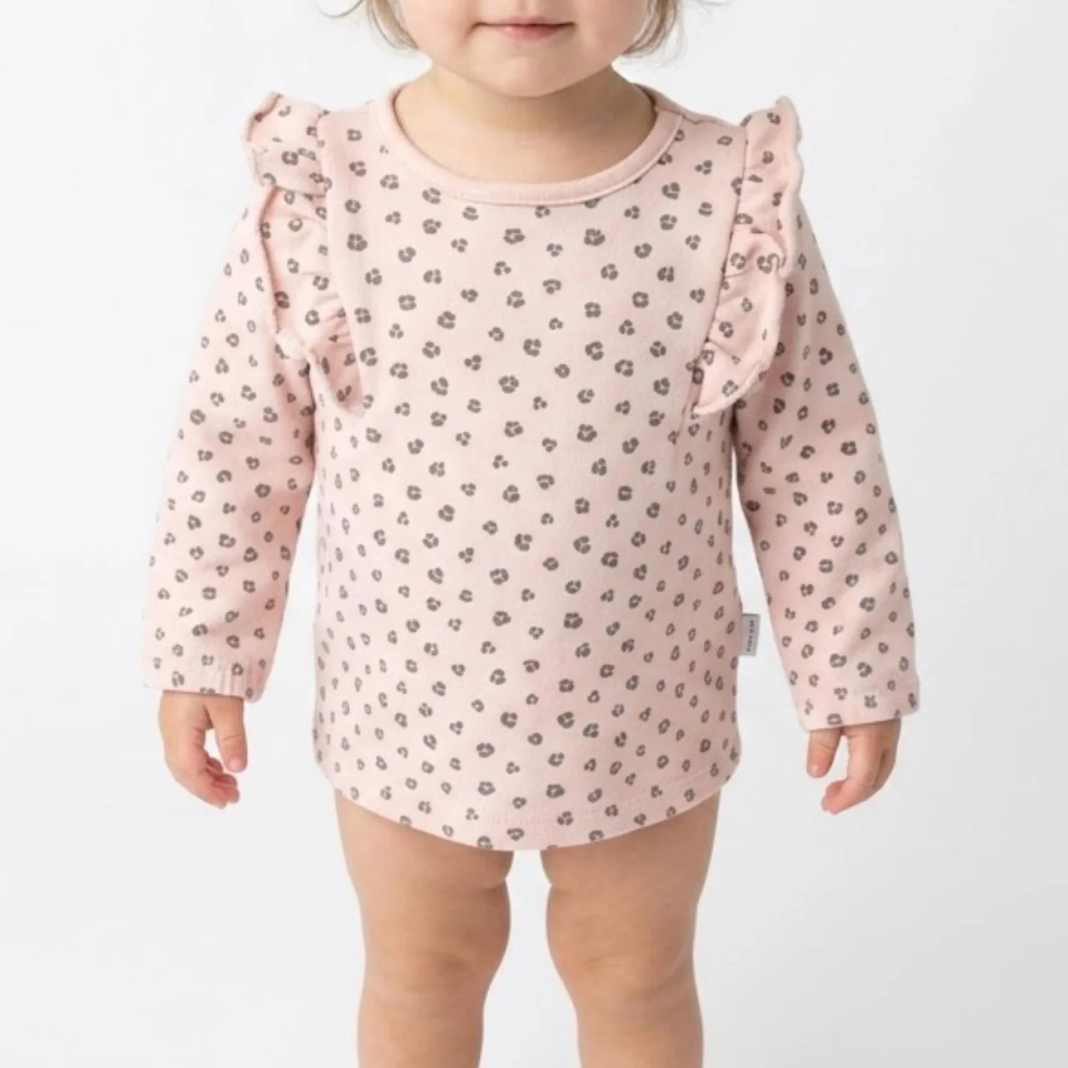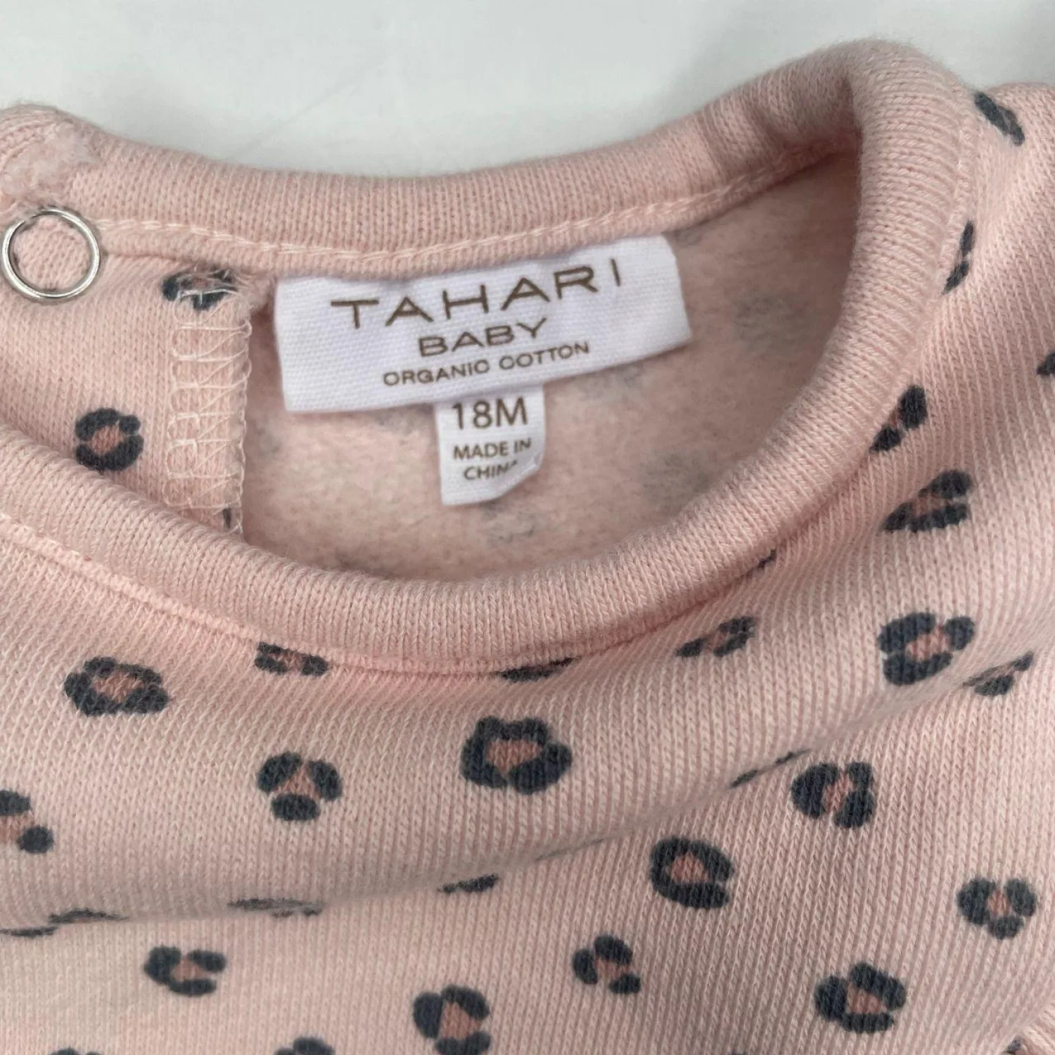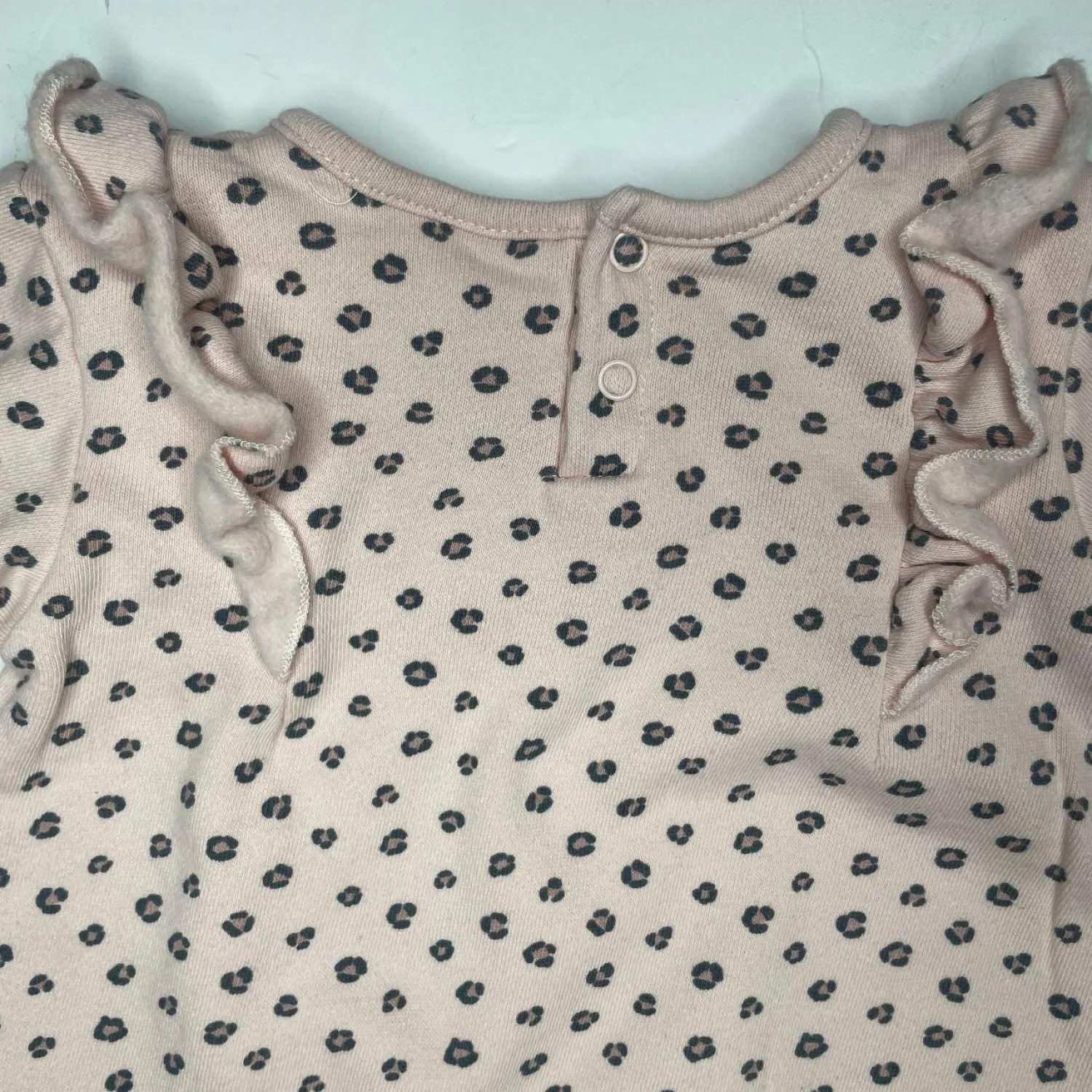 Tahari Baby Pink Leopard Print Organic Cotton Ruffle Shoulder Sweatshirt 18M