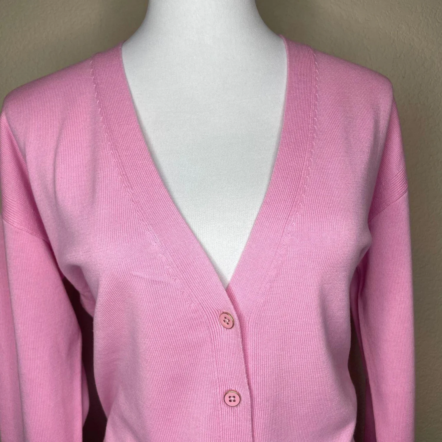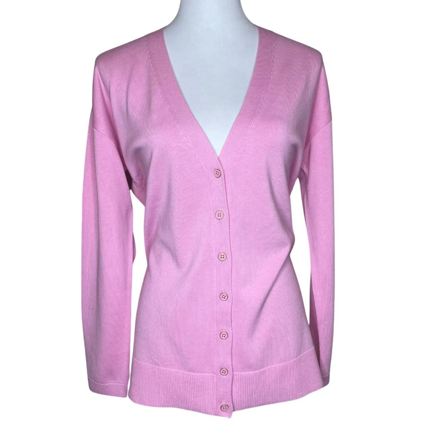 Talbots Pink V-Neck Cardigan Sweater Cotton Rayon Knit Size M Features: This lightweight knit features a 6-button front closure, side slits for a comfortable fit, and a flattering silhouette. Perfect for layering over a blouse for the office or pairing with denim for a polished weekend look. • Style Profile: preppy, classic, office wear, minimalist, bright, spring, layering, coquette, grandmacore, soft girl, business casual, lightweight knit • Flaws: No Holes, stains, or tears (Excellent pre-owned condition) • All measurements are approximate PTP: 20.5" Length: 25.5" Sleeve Length: 19.5" Happy to answer your questions! Super Fast Shipper!