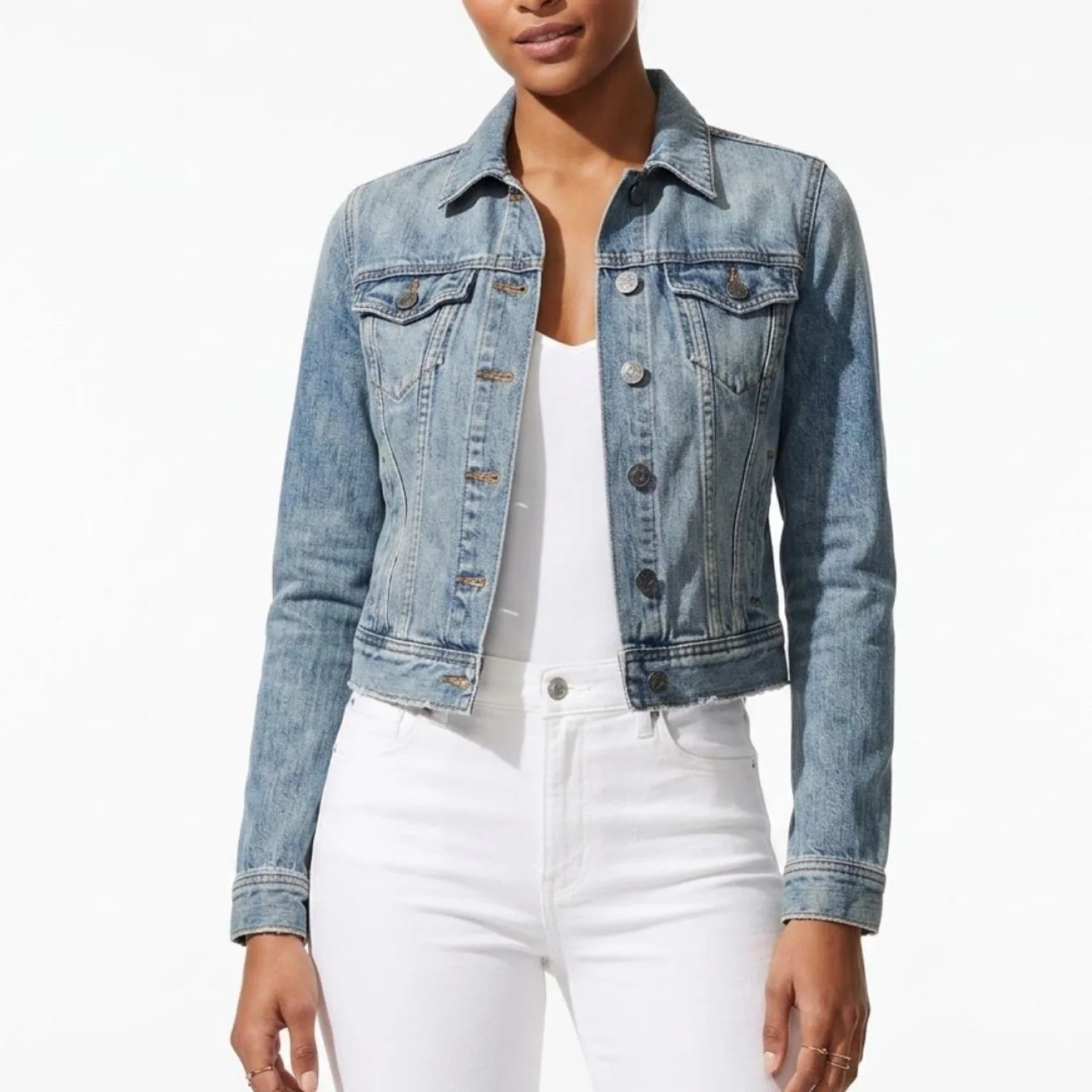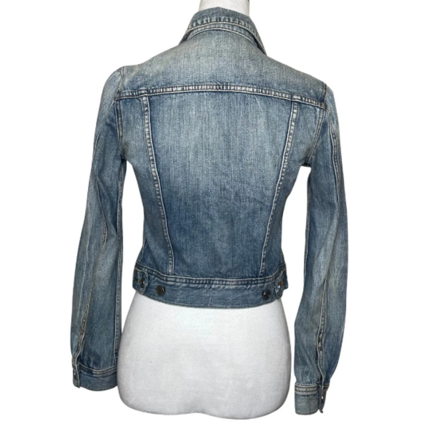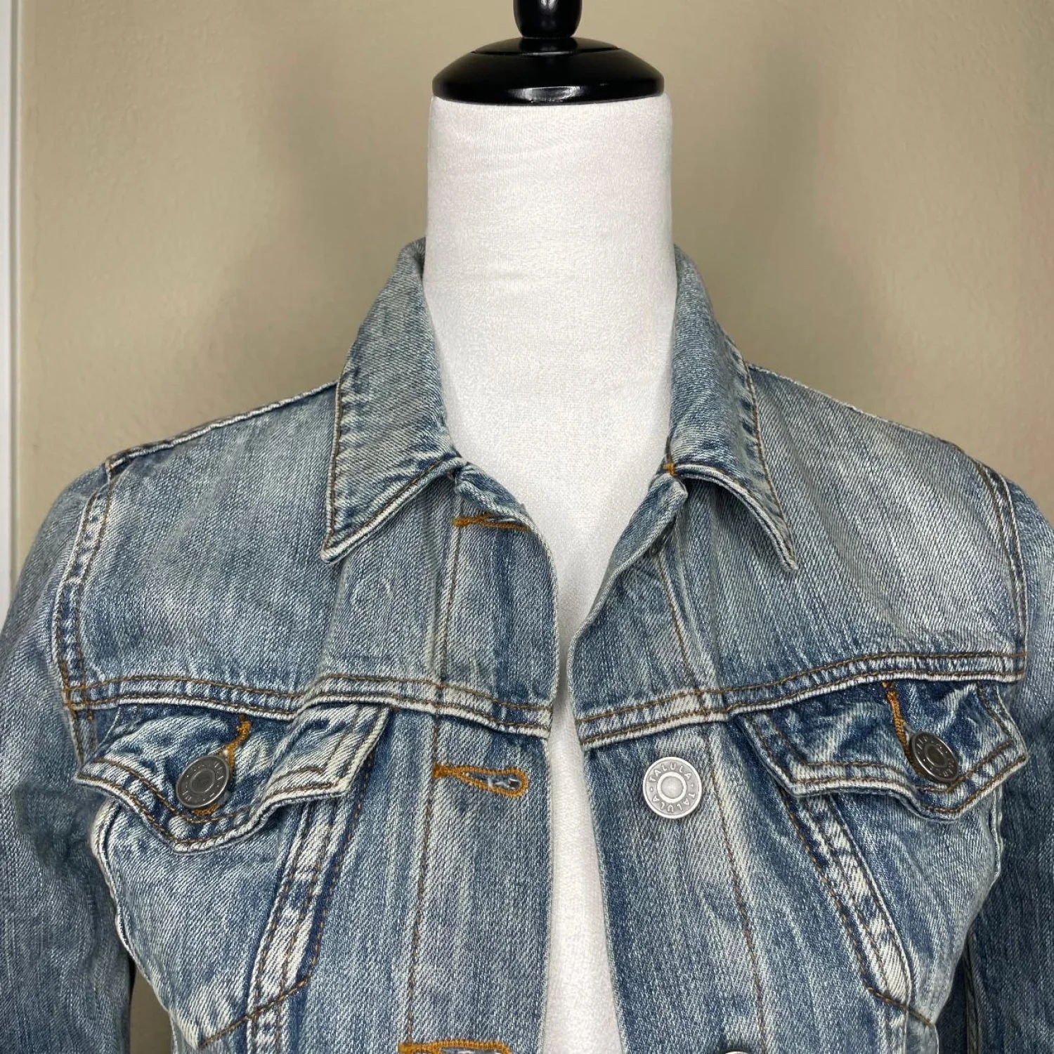 TALULA Aritzia Y2K Shrunken Cropped Denim Trucker Jacket Light Wash XS
