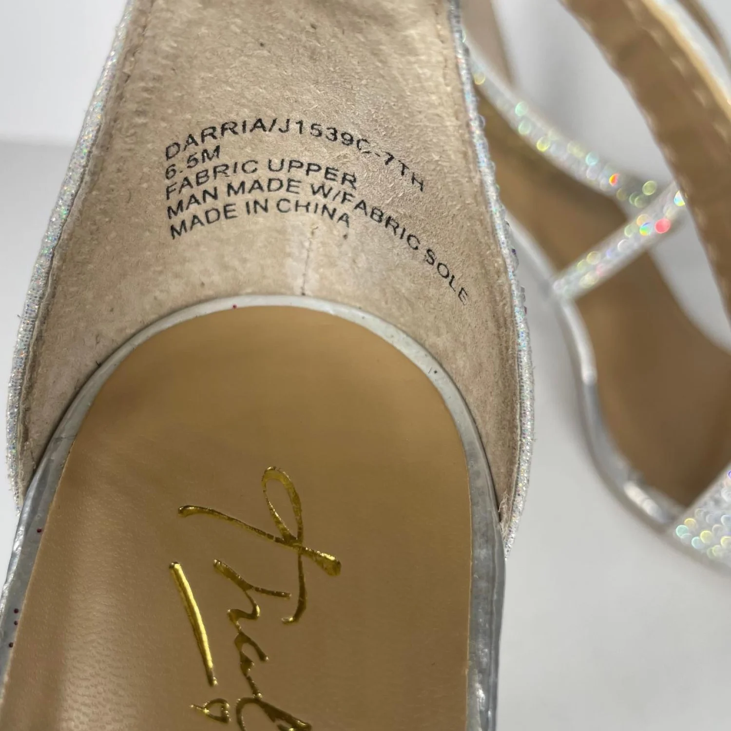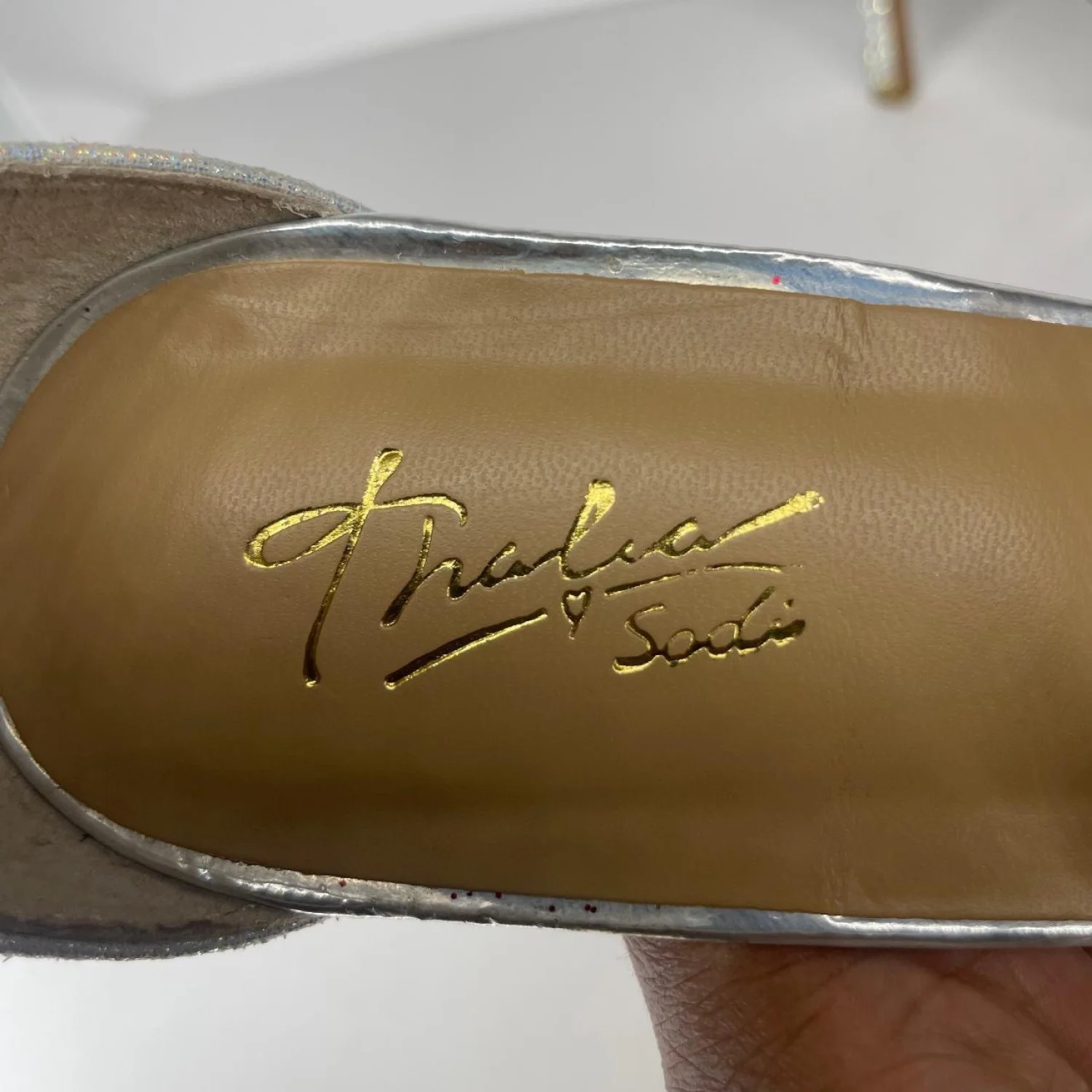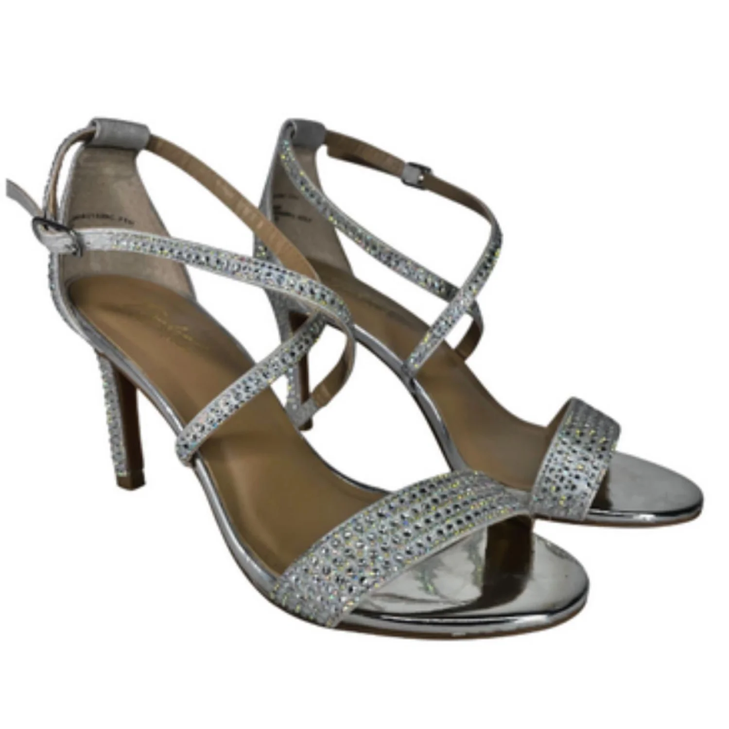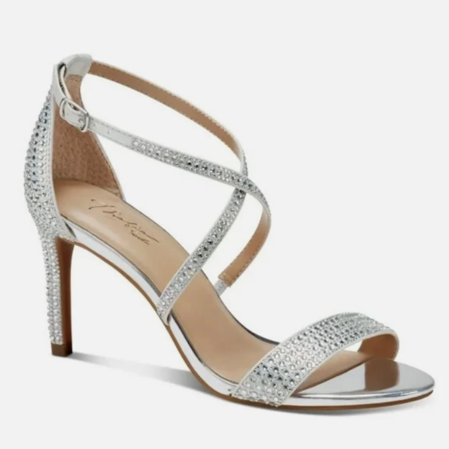 Thalia Sodi Women's Silver Metallic Embellished Evening Sandal Heels US 6.5M