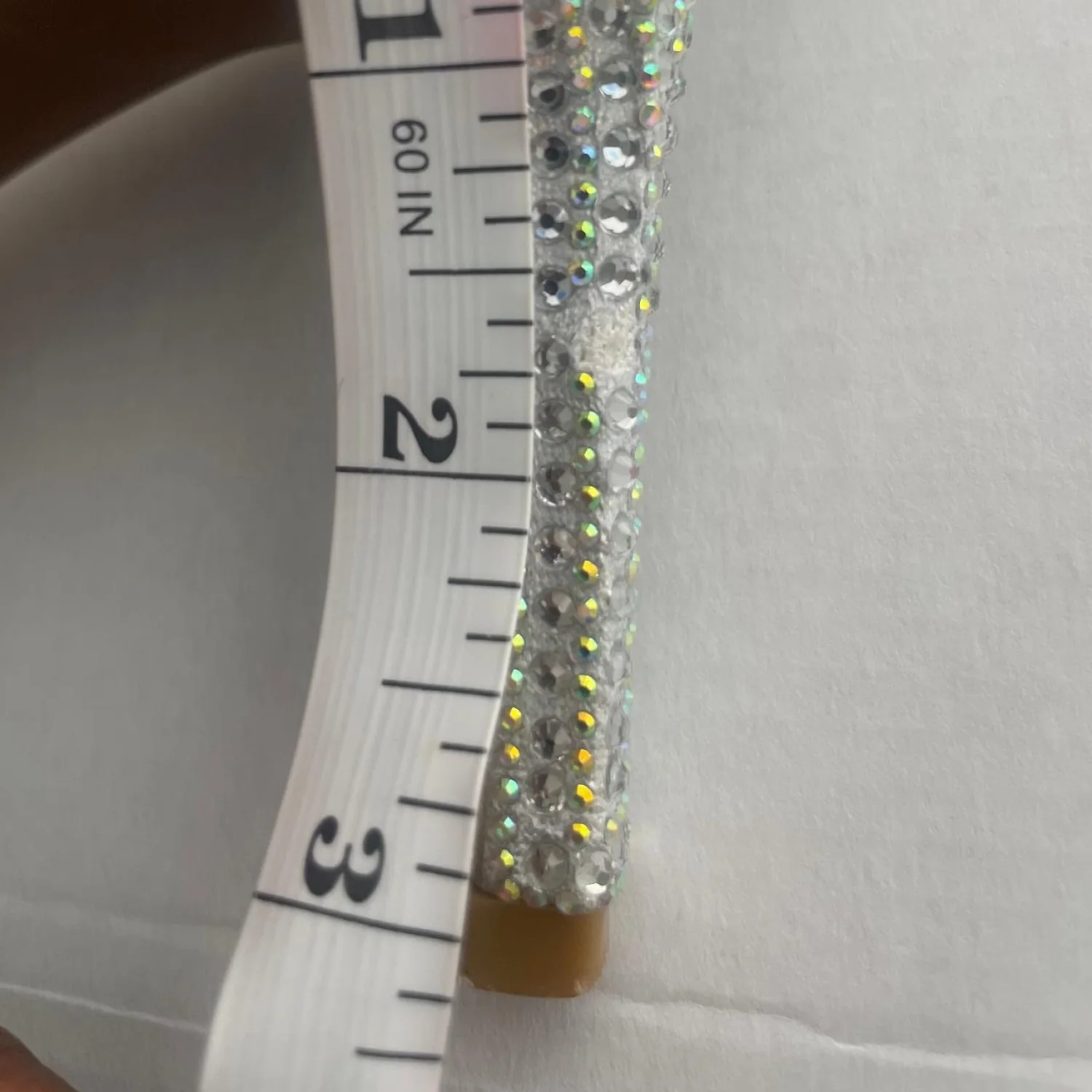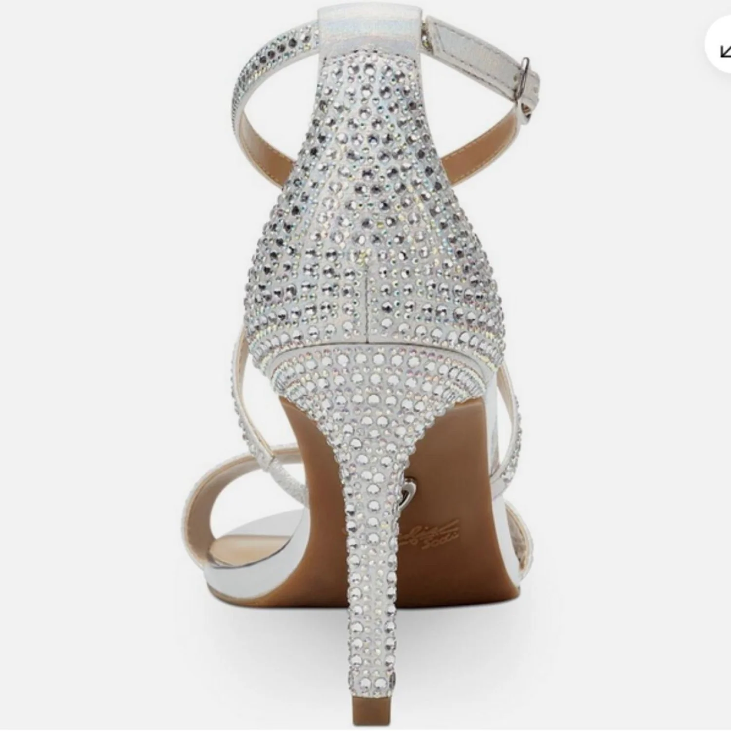 Thalia Sodi Women's Silver Metallic Embellished Evening Sandal Heels US 6.5M A glamorous and stylish choice for any special occasion. Featuring a high stiletto heel and embellishments of rhinestones, these sandals are perfect for adding a touch of sparkle to your outfit. The silver metallic color and ankle strap closure give them a modern and chic look, while the synthetic lining and insole provide comfort and durability. Perfect for women who want to make a statement and stand out from the crowd, these sandals are sure to elevate any ensemble. Features: • Style Profile: girly, occasion, bridesmaid, event, elegant, formal, elegant, sophisticated, cocktail dress, eveningwear, polished, classy, statement, special occasion, feminine, stylish, semi-formal glamorous Flaws: Few rhinestones missing on the heel which is pictured. • Please see the photos for measurements (in inches). Heel Height: 3' Happy to answer your questions! Super Fast Shipper! Bundle items for discounts!