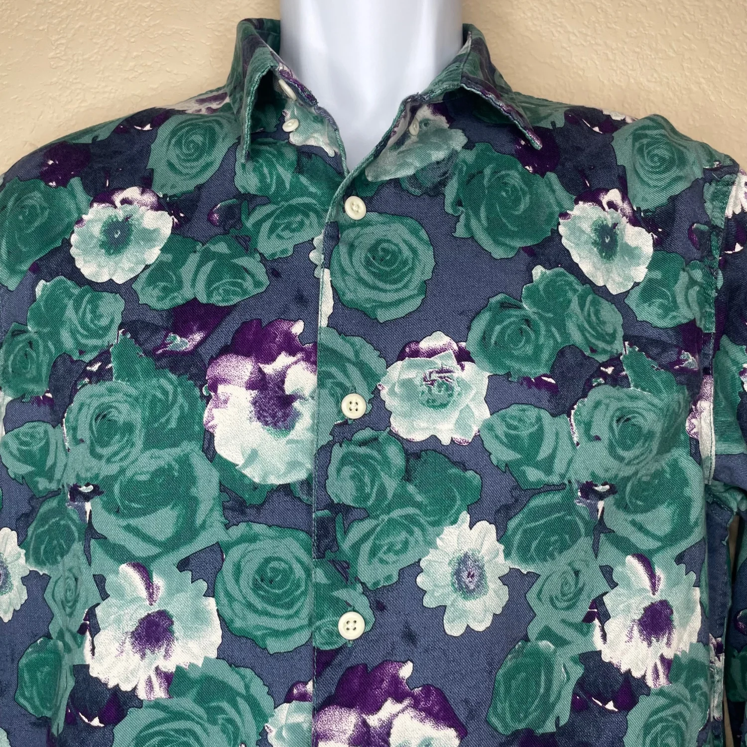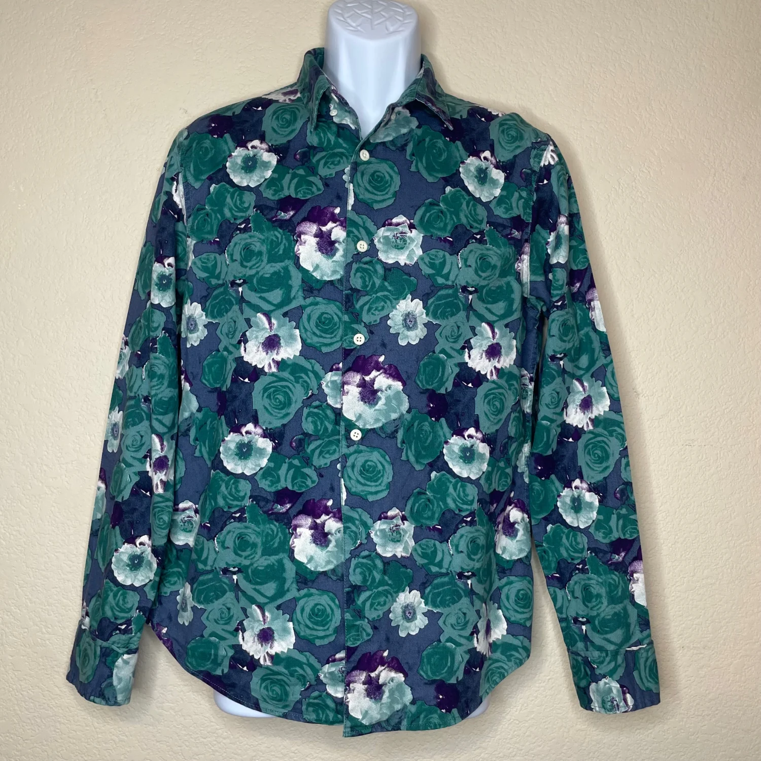 RAIL Cotton Blue Tropical Button Down Long Sleeve Casual Shirt