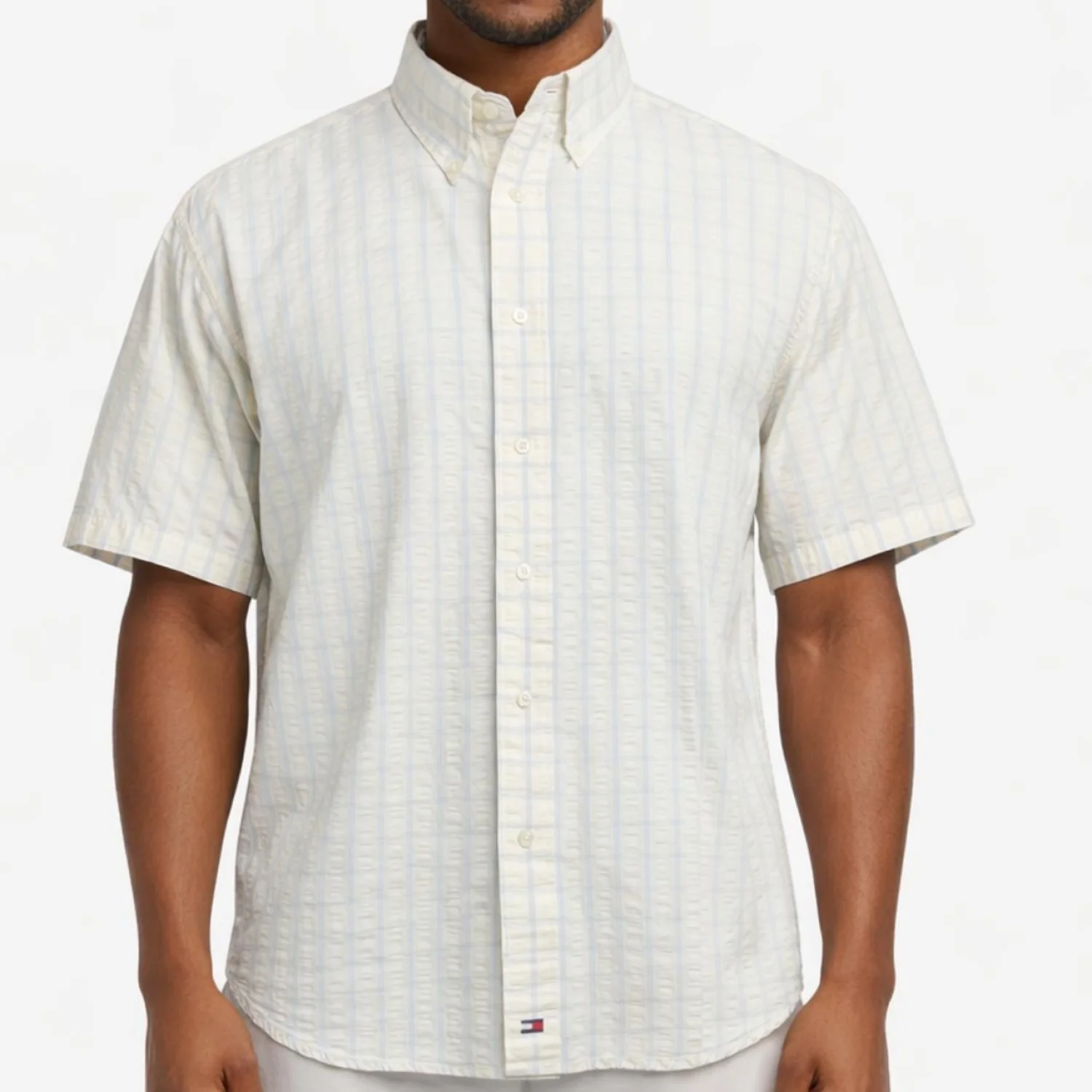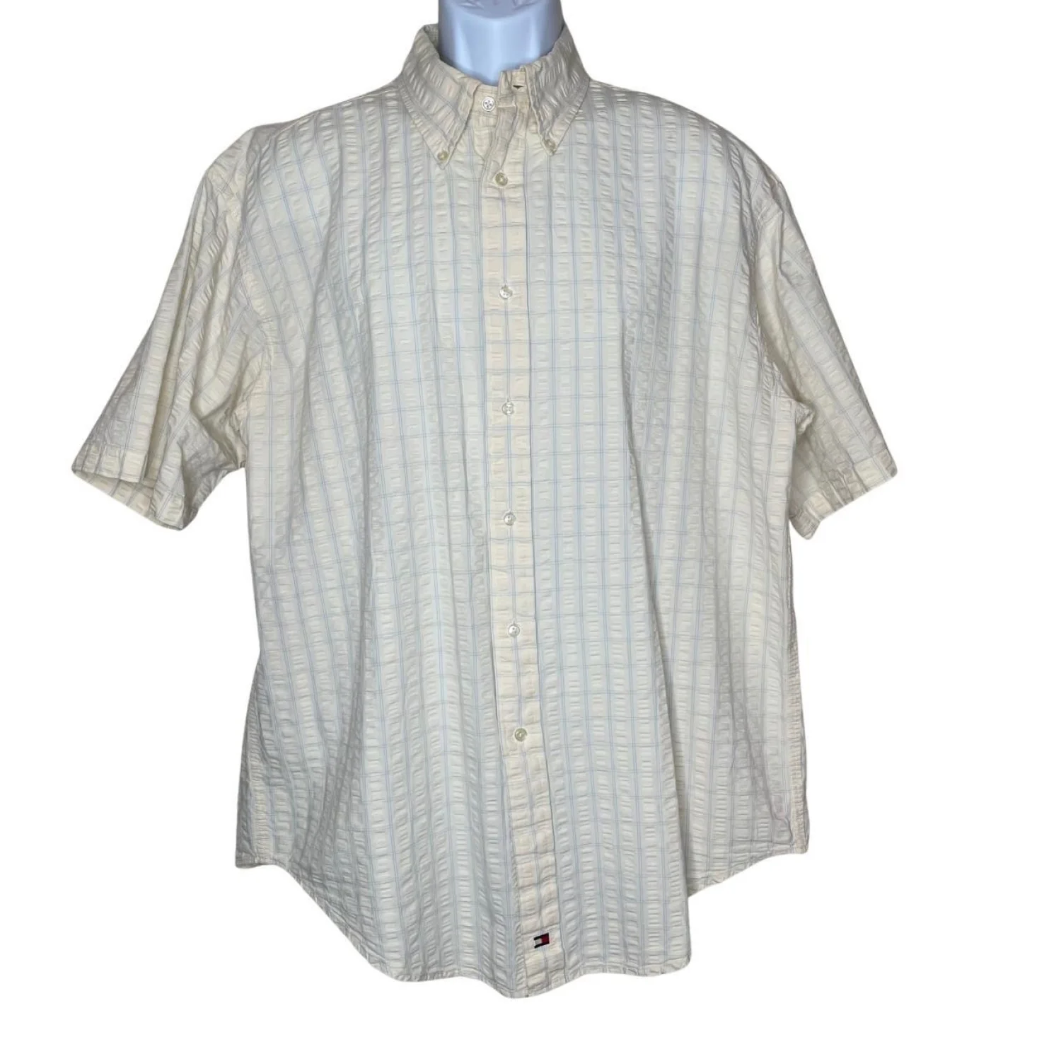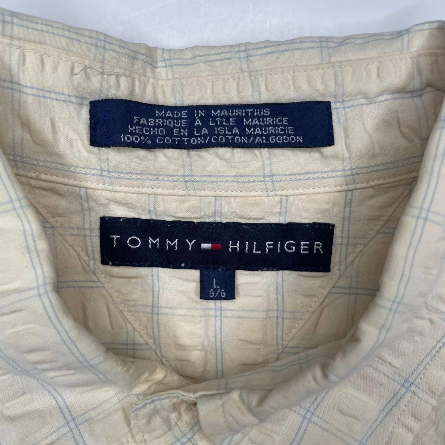 Tommy Hilfiger 100% Cotton Seersucker Windowpane Shirt Button Down Size L