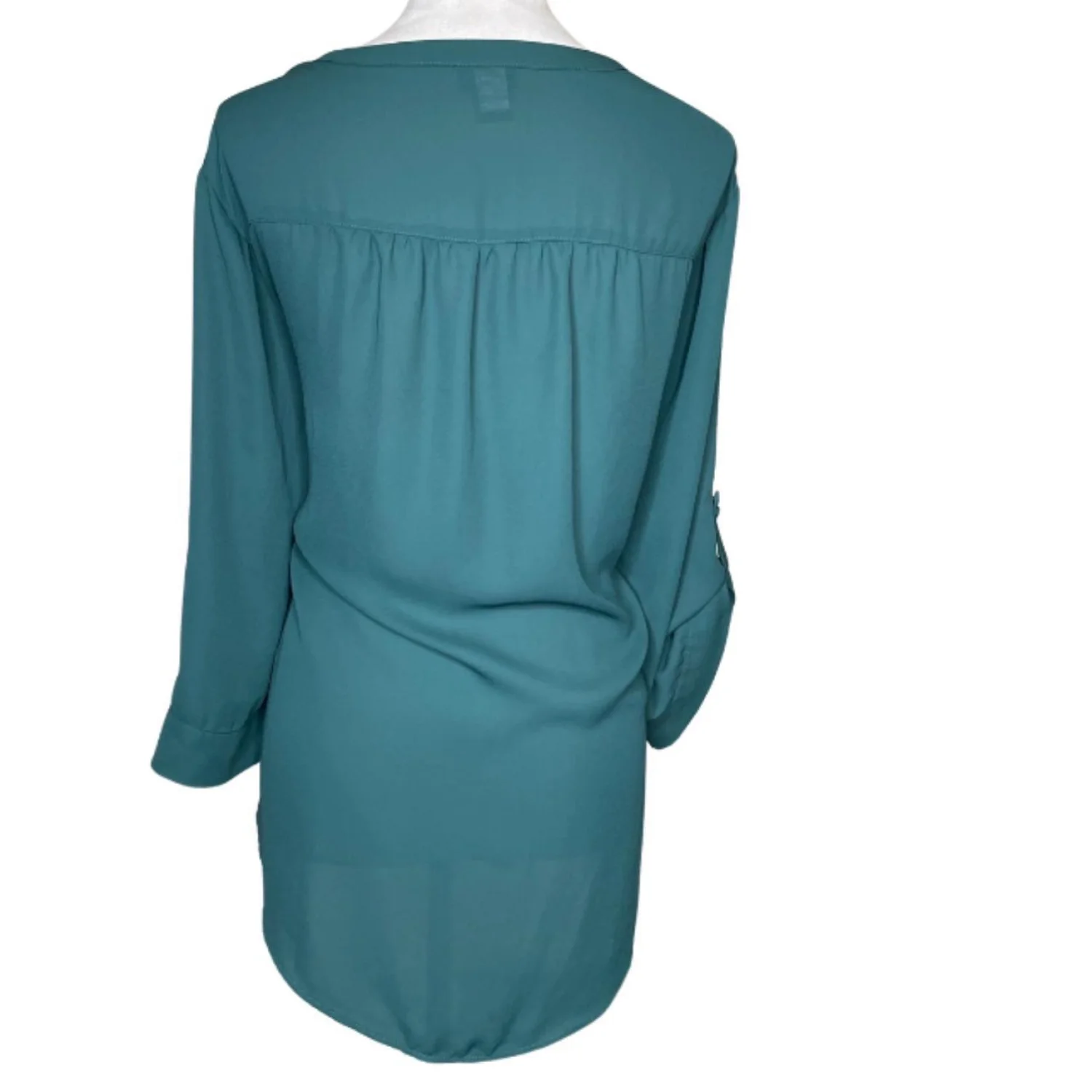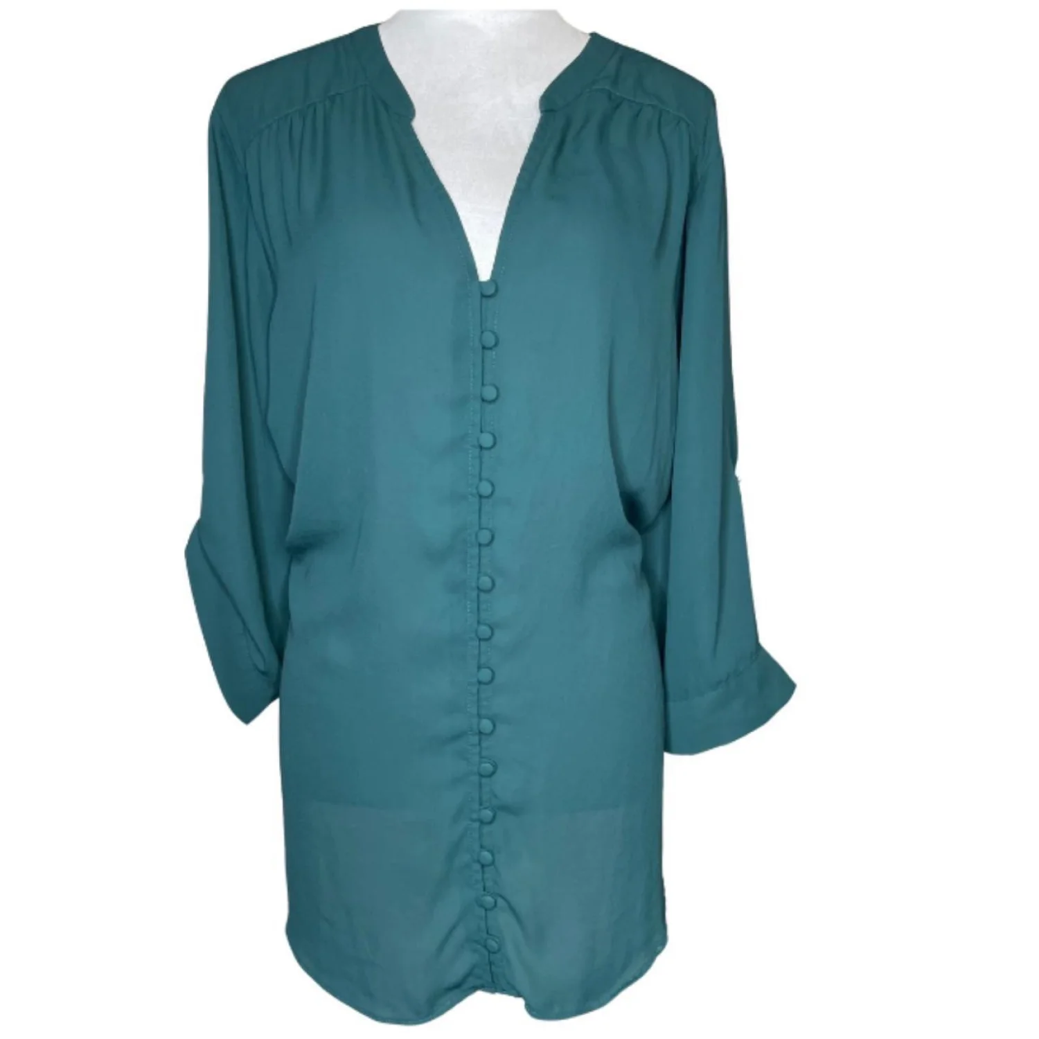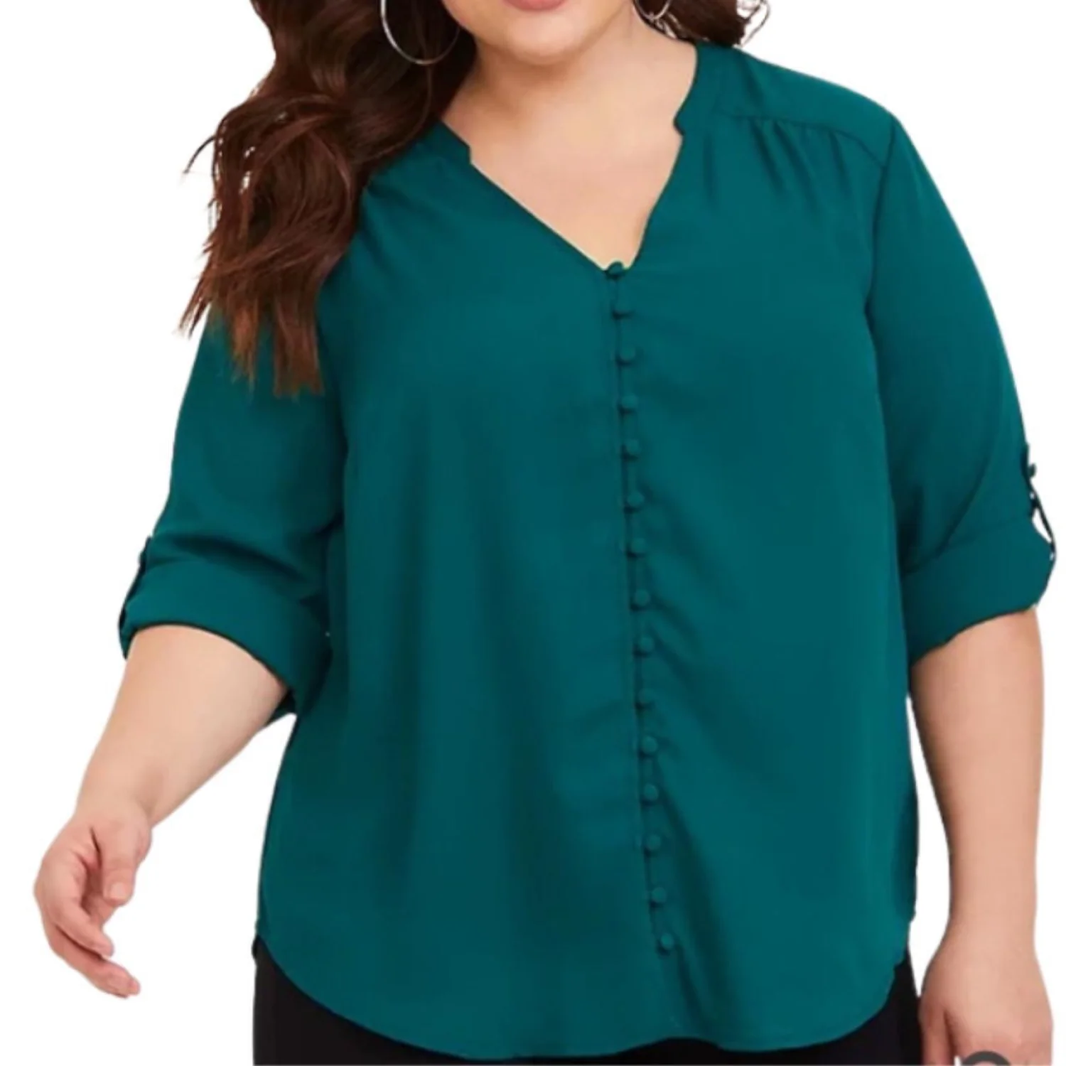 TORRID Harper Emerald Button-Front Georgette Roll-Tab Sleeve Shirt