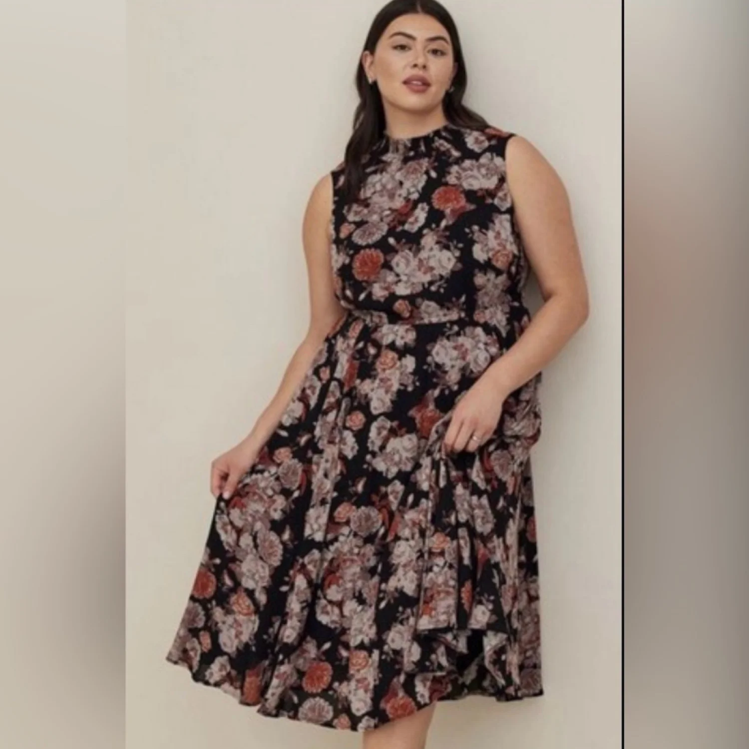 torrid Women's Floral Midi Gauze Mock Neck Pocket Dress Size 4X Fairy Cottage