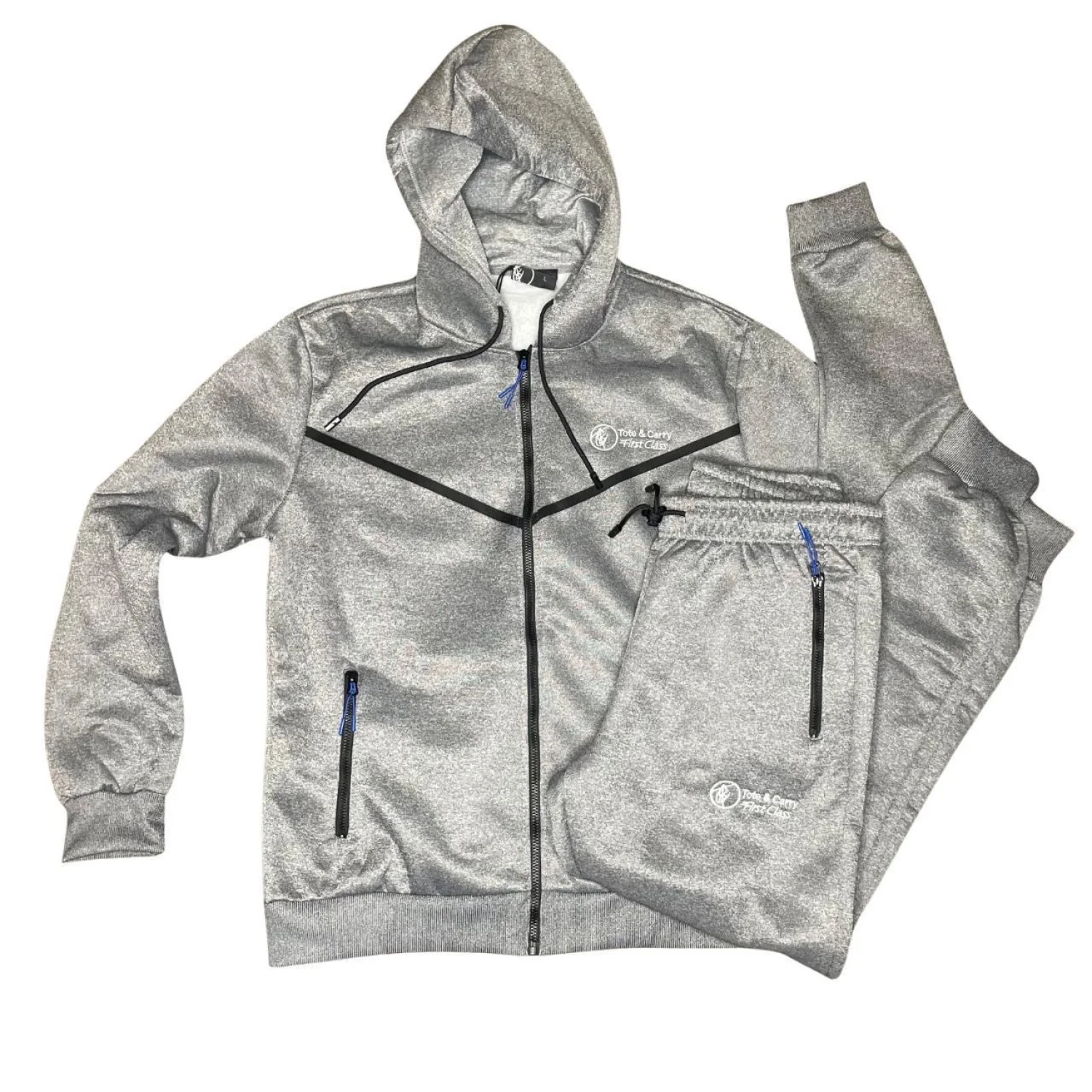 Tote & Carry First Class Tracksuit Set - Grey Tech Hoodie & Joggers Size Large