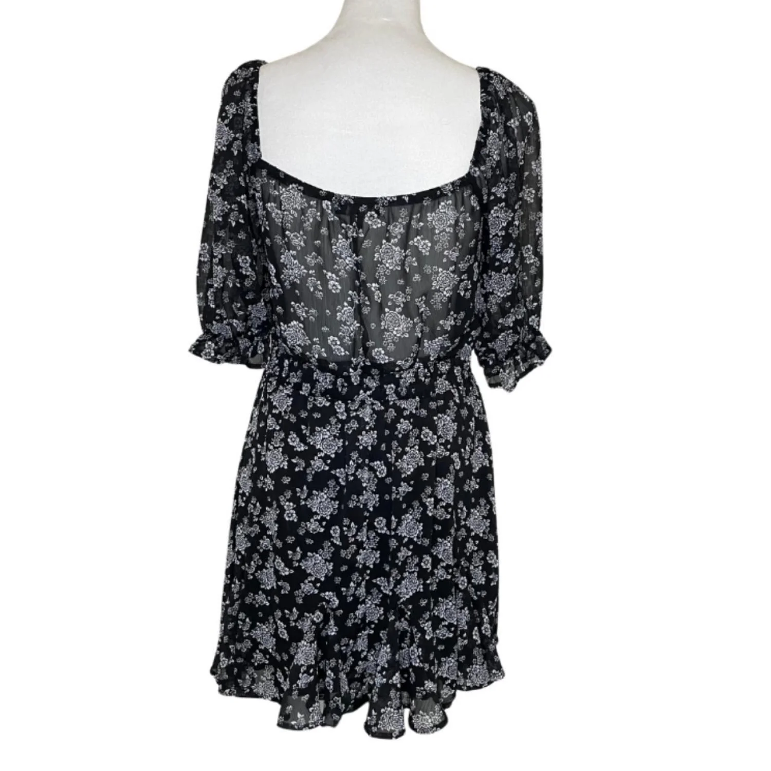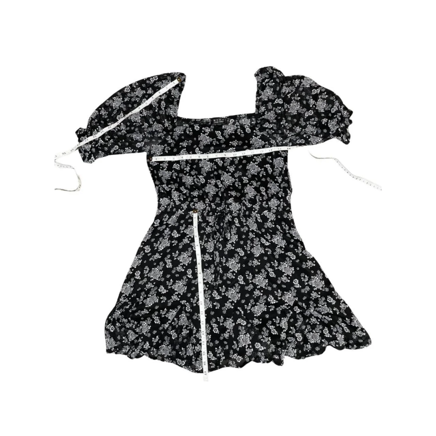 Trixxi Women's Ruffled Tie Pleated Pouf Sleeve Square Neck Mini milkmaid dress Features: • Style Profile: Dark Cottagecore, Dark Fairy, Feminine, Grunge, Whimsigoth • Flaws: No Holes, stains, or tears • Please see photos for measurements (in inches). PTP: 16.5' Sleeve Length: 13' • Happy to answer your questions! Super Fast Shipper!