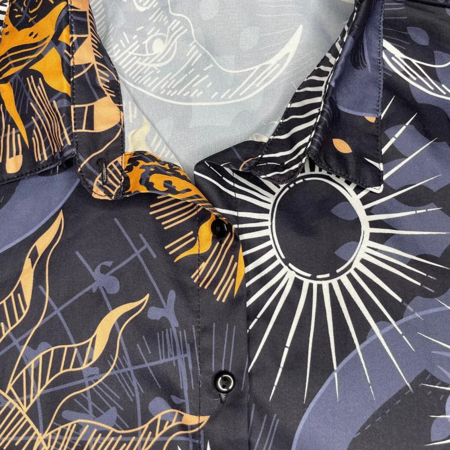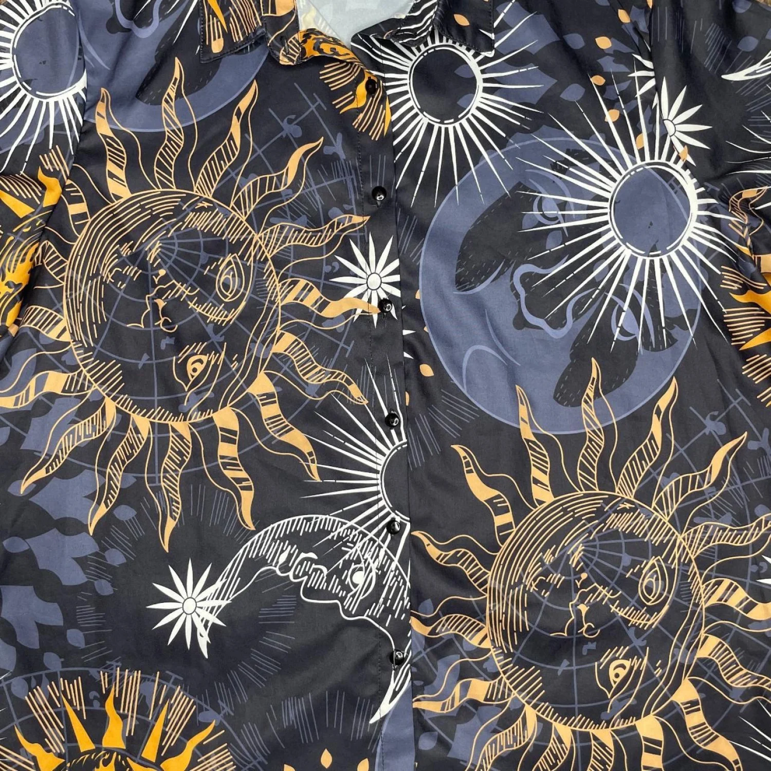 Unisex Sun & Moon Constellations Astrology Button Up Short Sleeve Shirt Sz Large