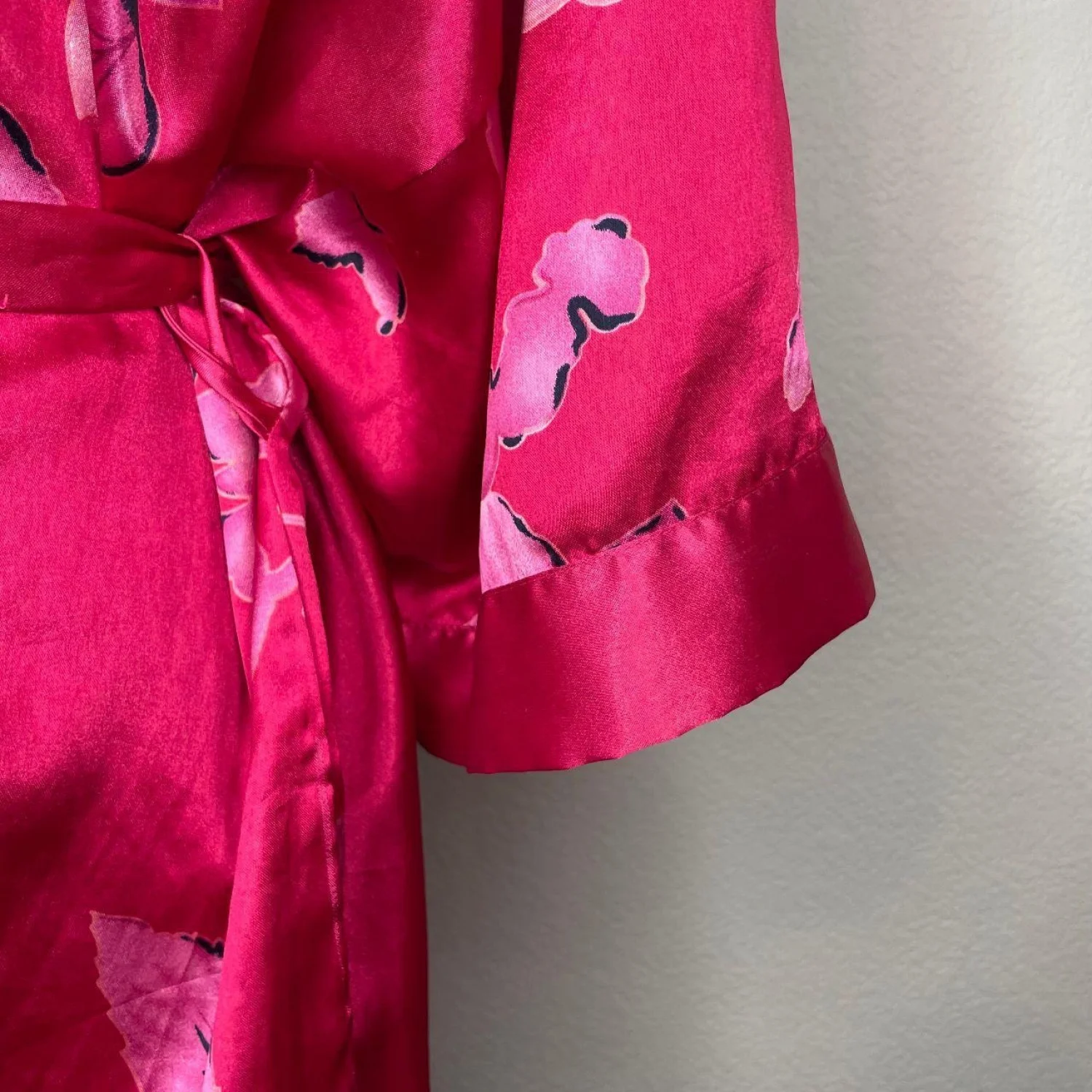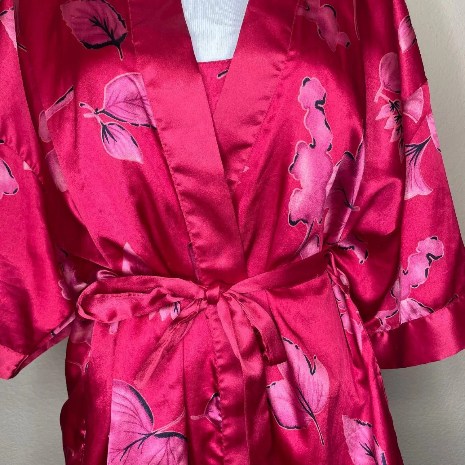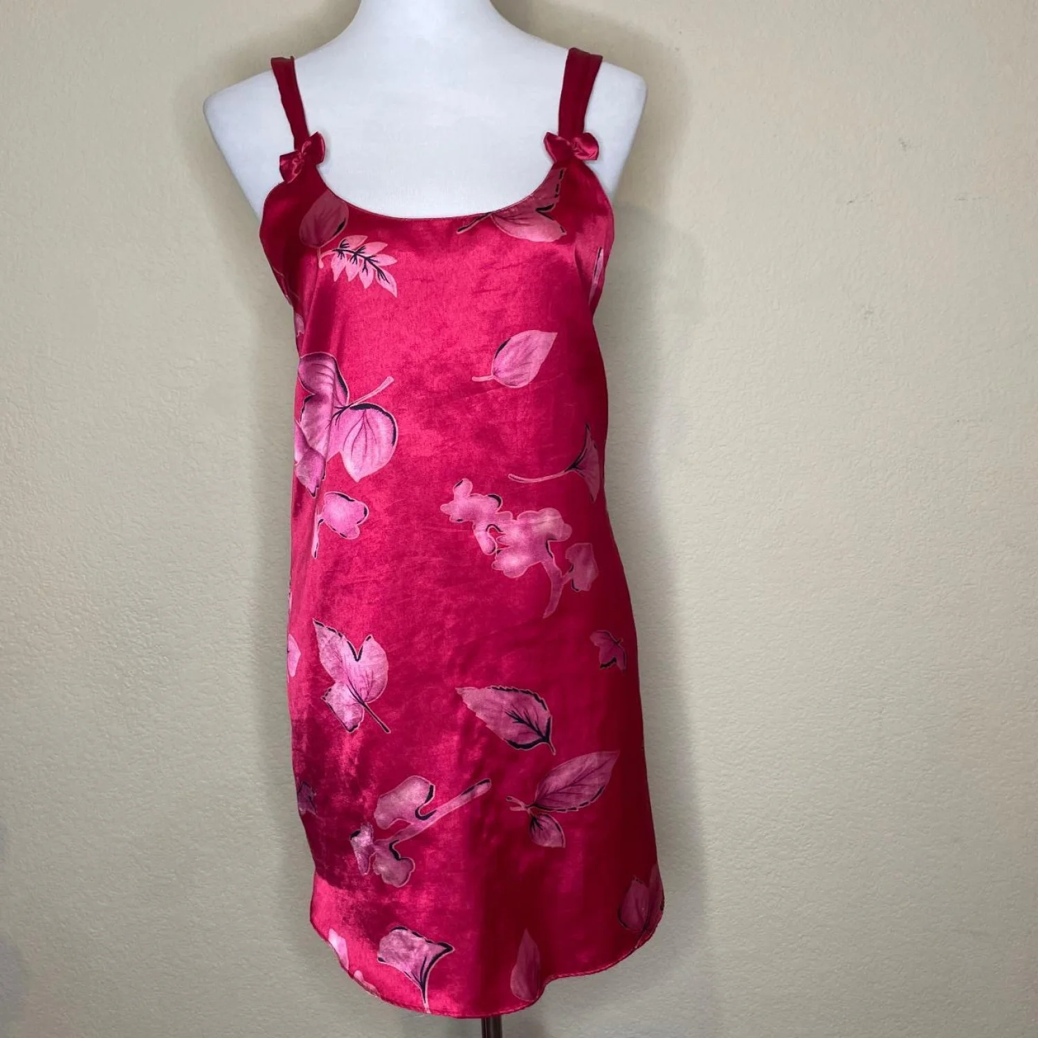 Vanity Fair Vintage 80's Floral Silky Poly Bow Accent Lingerie Slip Robe