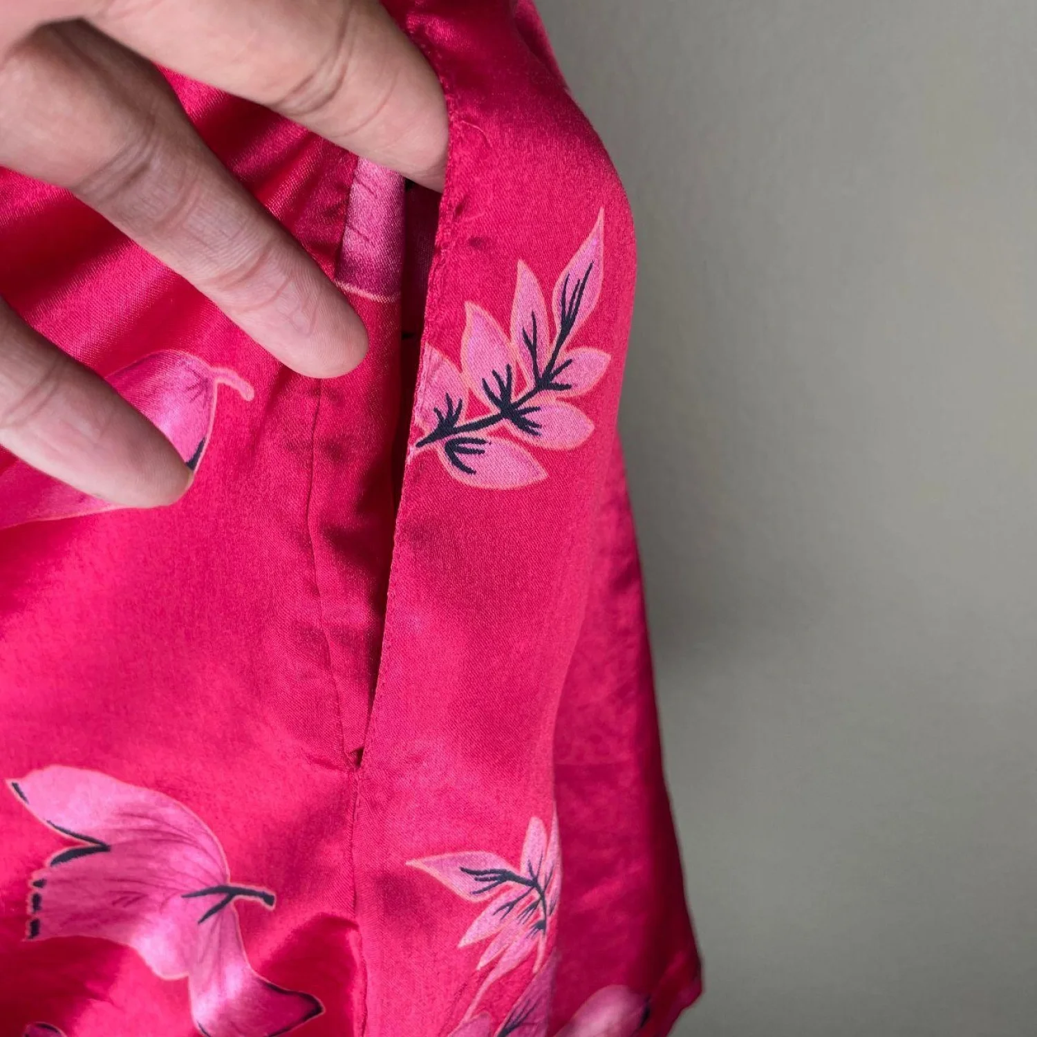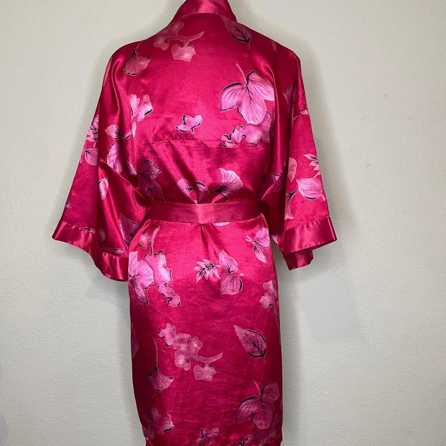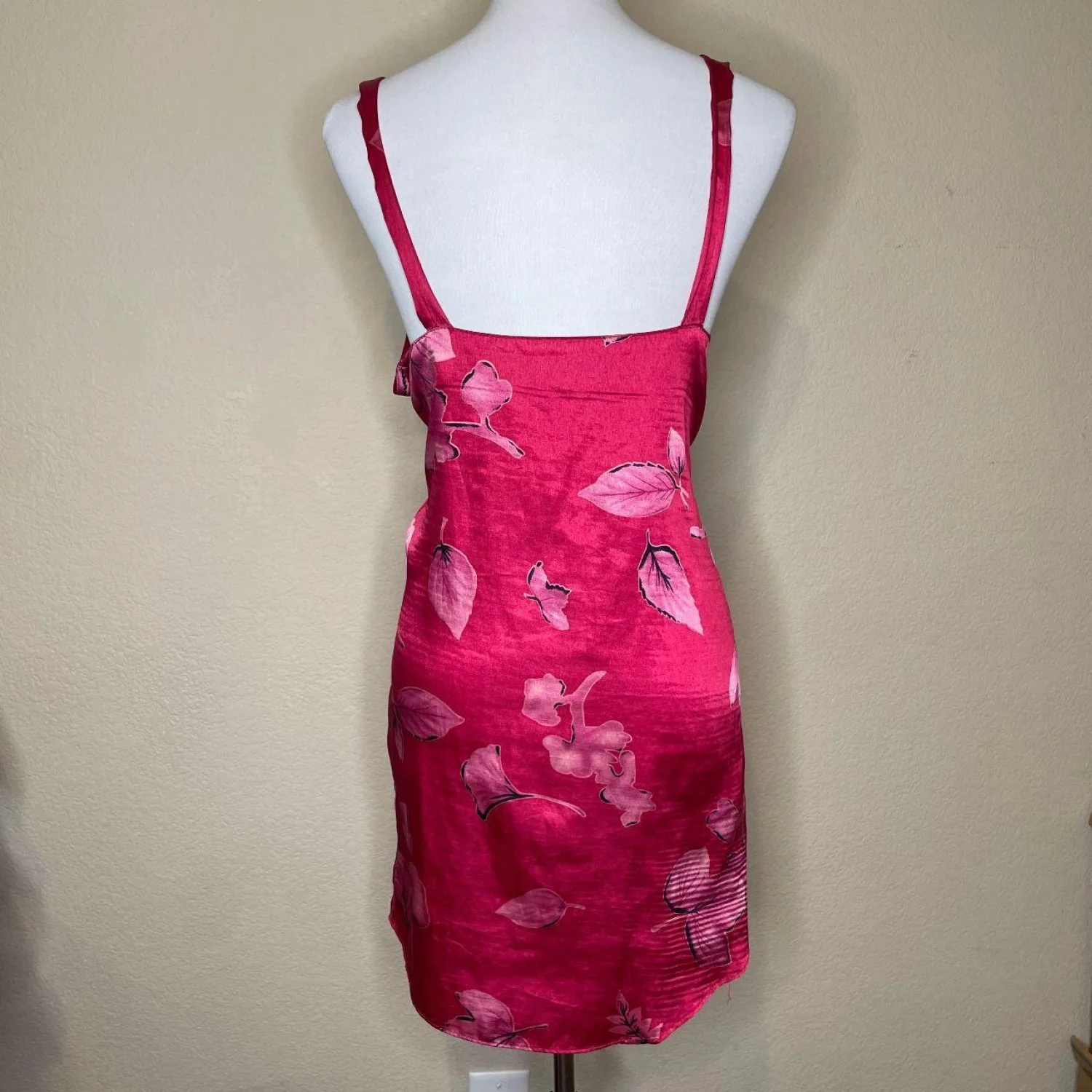 Vanity Fair Vintage 80's Floral Silky Poly Bow Accent Lingerie Slip Robe