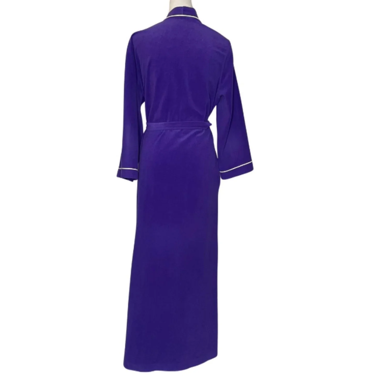 Vanity Fair Vintage Purple White Piping Fleece Robe Luxury Retro Loungewear Sz L