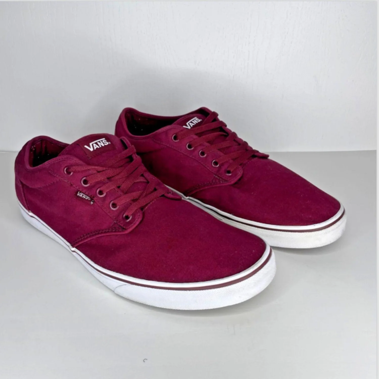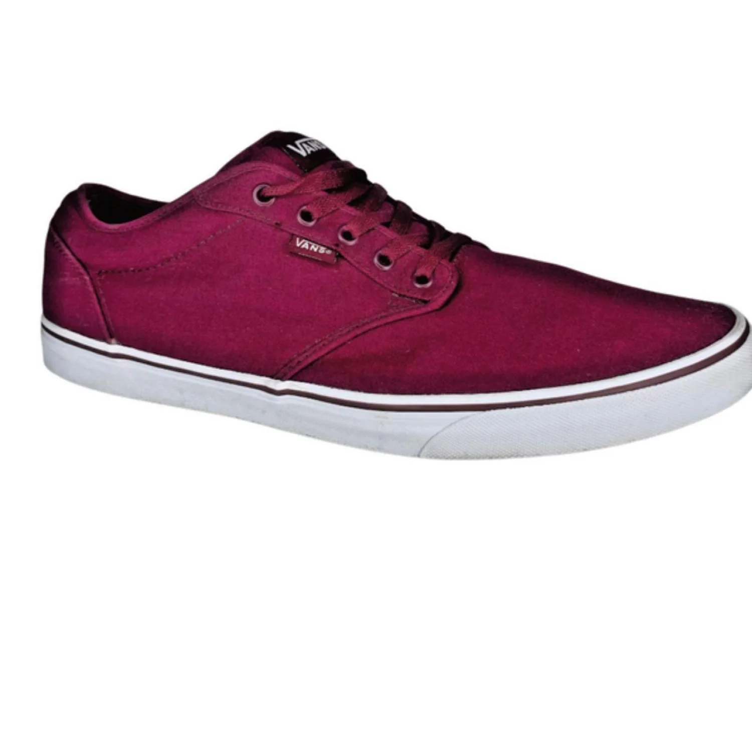 Open to offers🎉 Versatile skater shoes perfect for casual occasions. Made with a canvas lining, these sneakers feature the signature lace-up closure for a secure fit. The burgundy color adds a touch of sophistication to the classic sneaker style, making them suitable for summer, fall, and spring seasons. With the Vans Atwood model, you can trust the quality and style that this brand is known for. Features: • Style Profile: Minimalist simple classic neutral capsule modern skater casual • Flaws: No Holes, stains, or tears Happy to answer your questions! Super Fast Shipper!